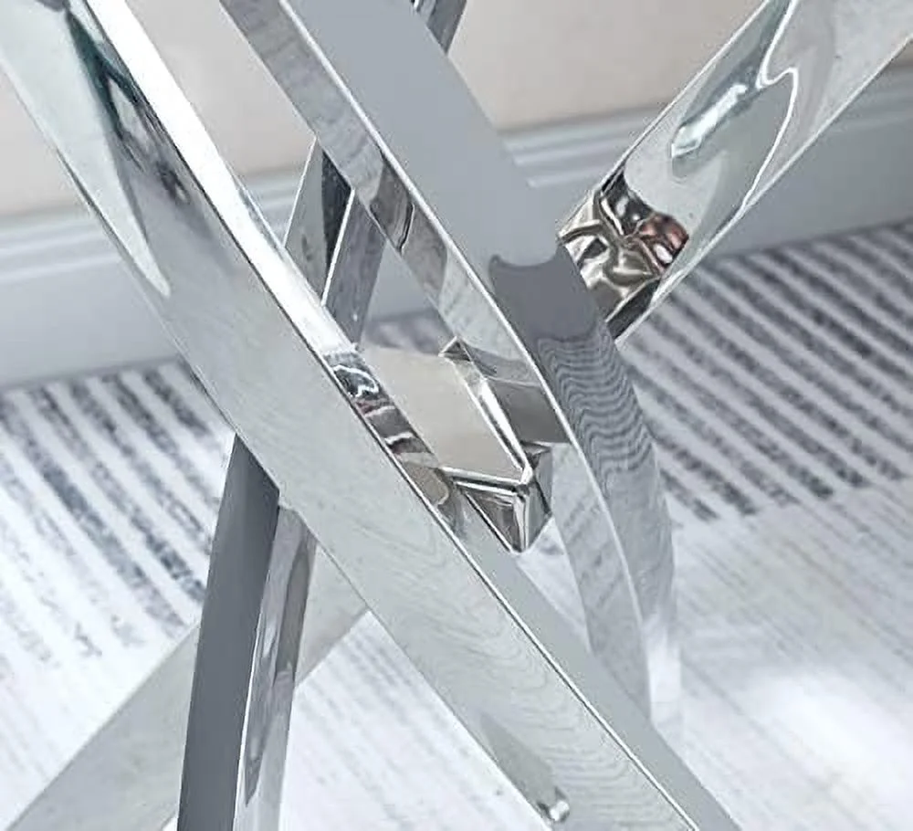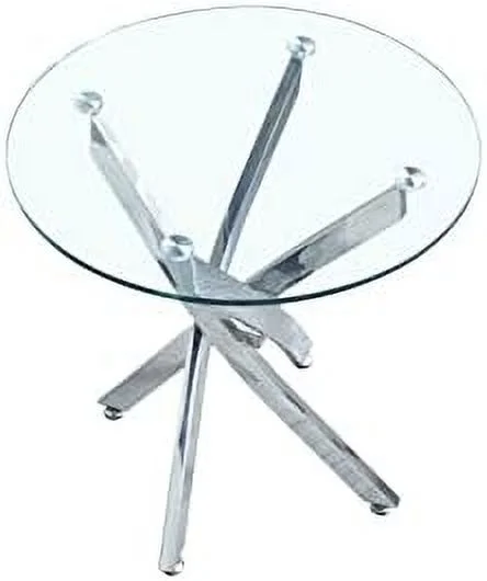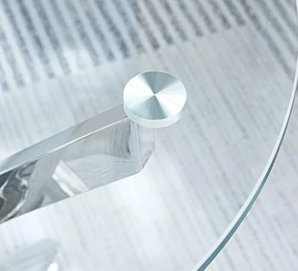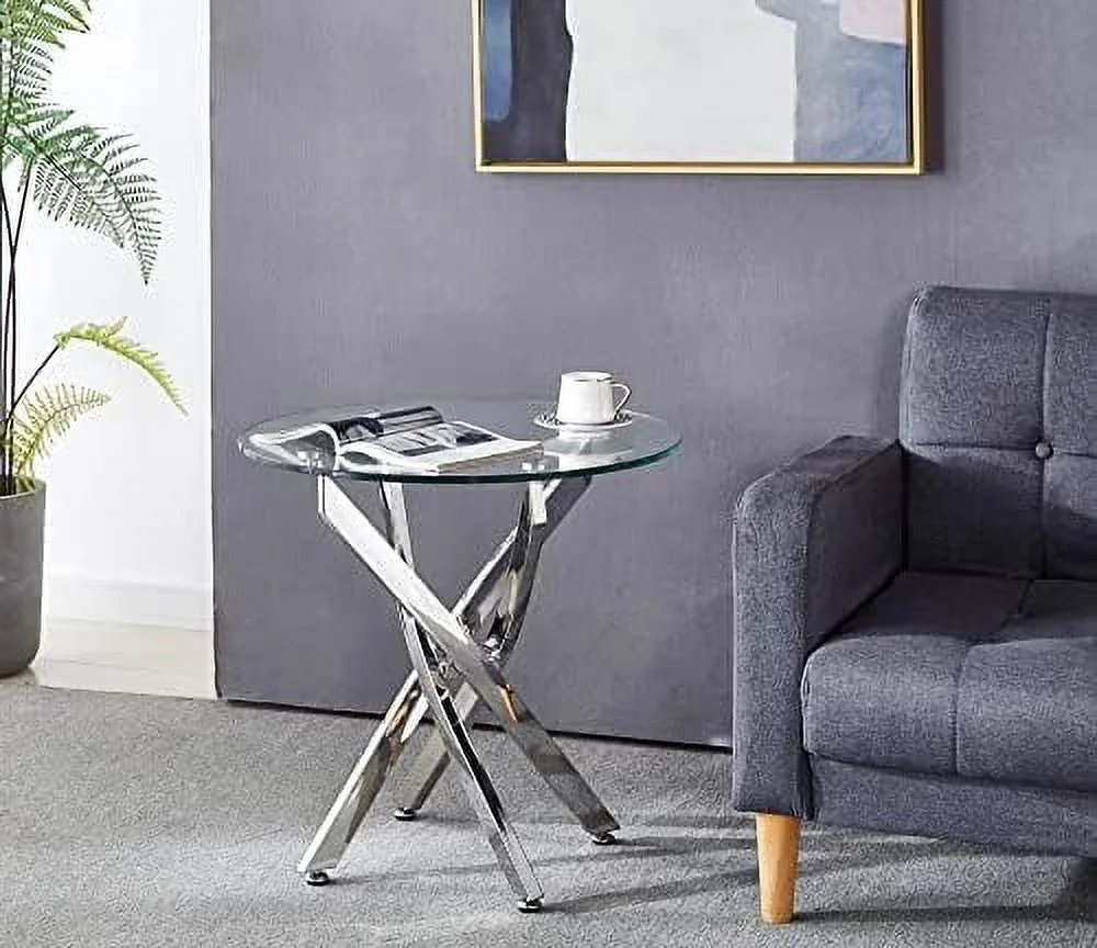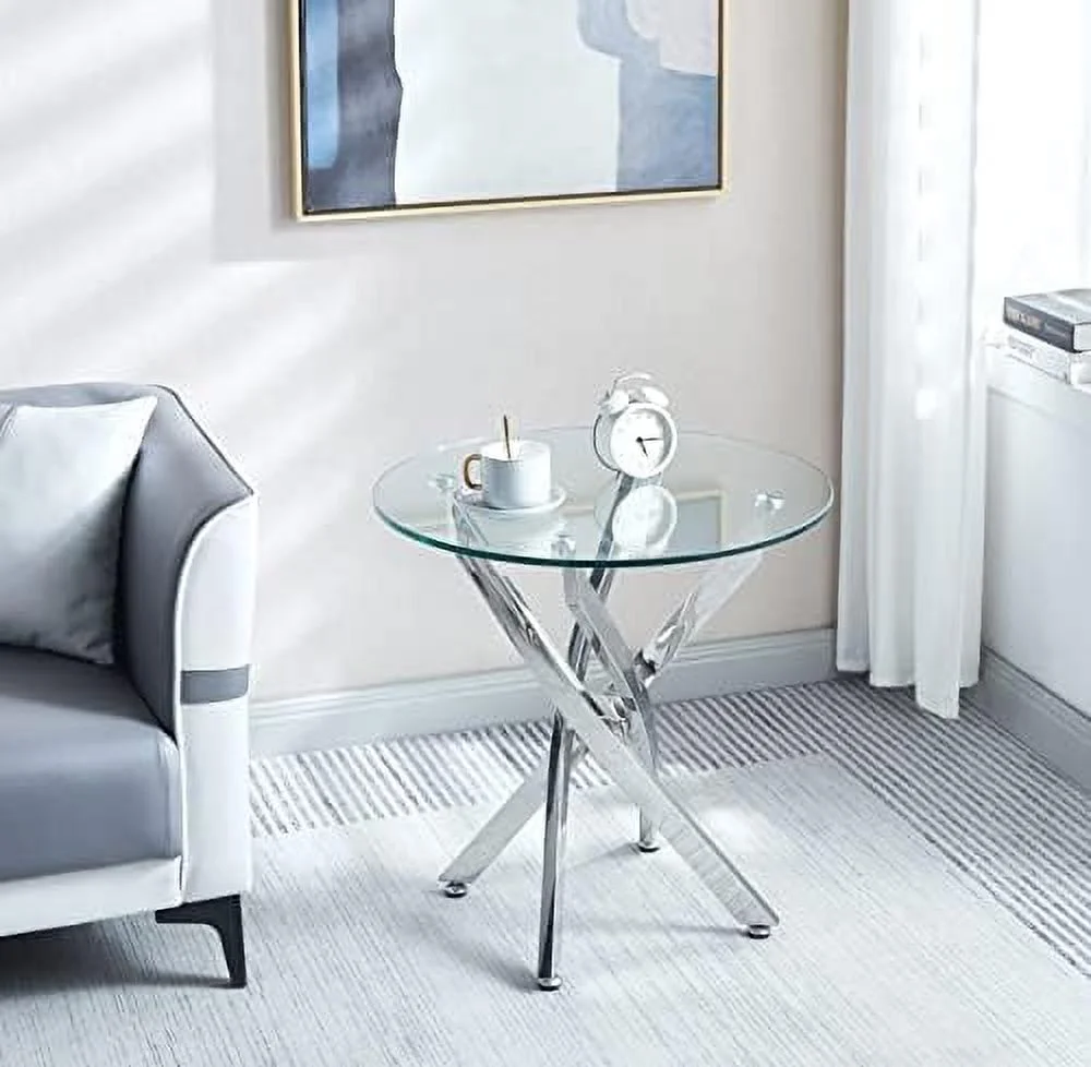 RUNFAYBIU Round Glass End Table with Chrome Legs Modern Tempered Glass 0.39" Thick Clear Glass Top Bedside Table Accent Table for Small Space Living Room Bedroom (Silver)