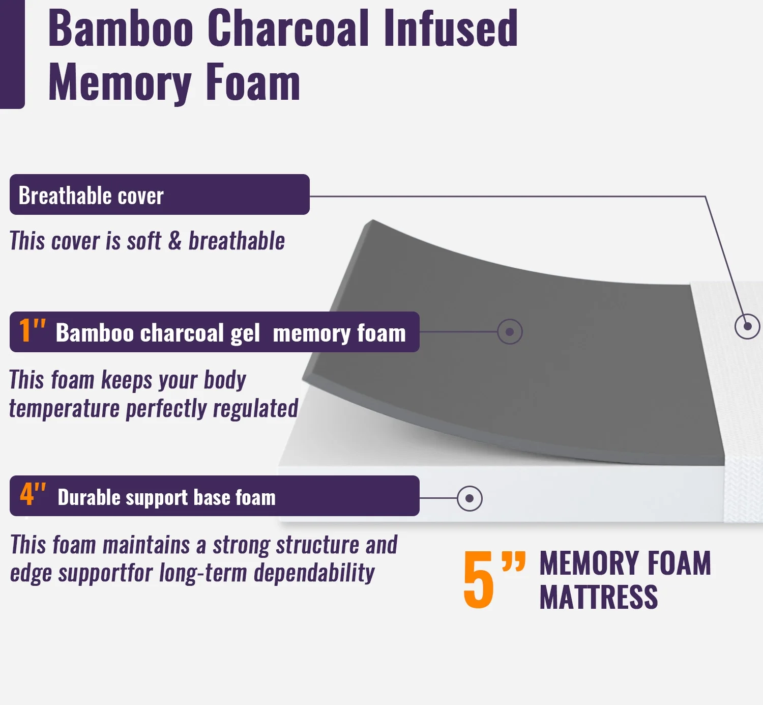 PayLessHere 5 Inch Memory Foam Mattress/Cooling Gel Bamboo Charcoal Infused Mattress/Medium Firm Mattresses/CertiPUR-US Certified/Bed-in-a-Box/Pressure Relieving Twin Size,White