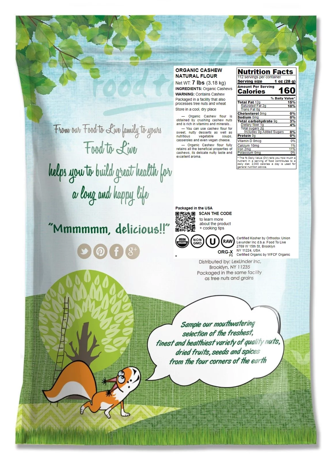 Organic Cashew Flour, 7 Pounds — Non-GMO, Raw, Vegan — by Food to Live