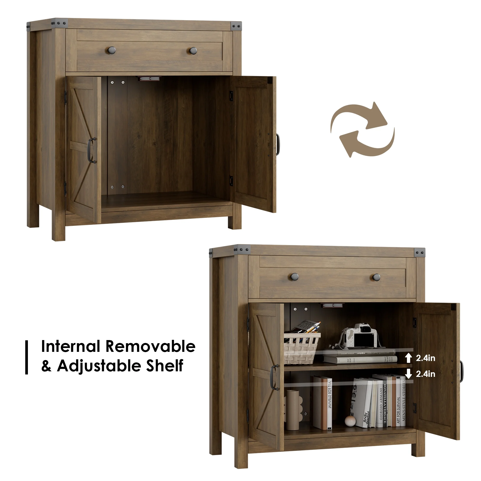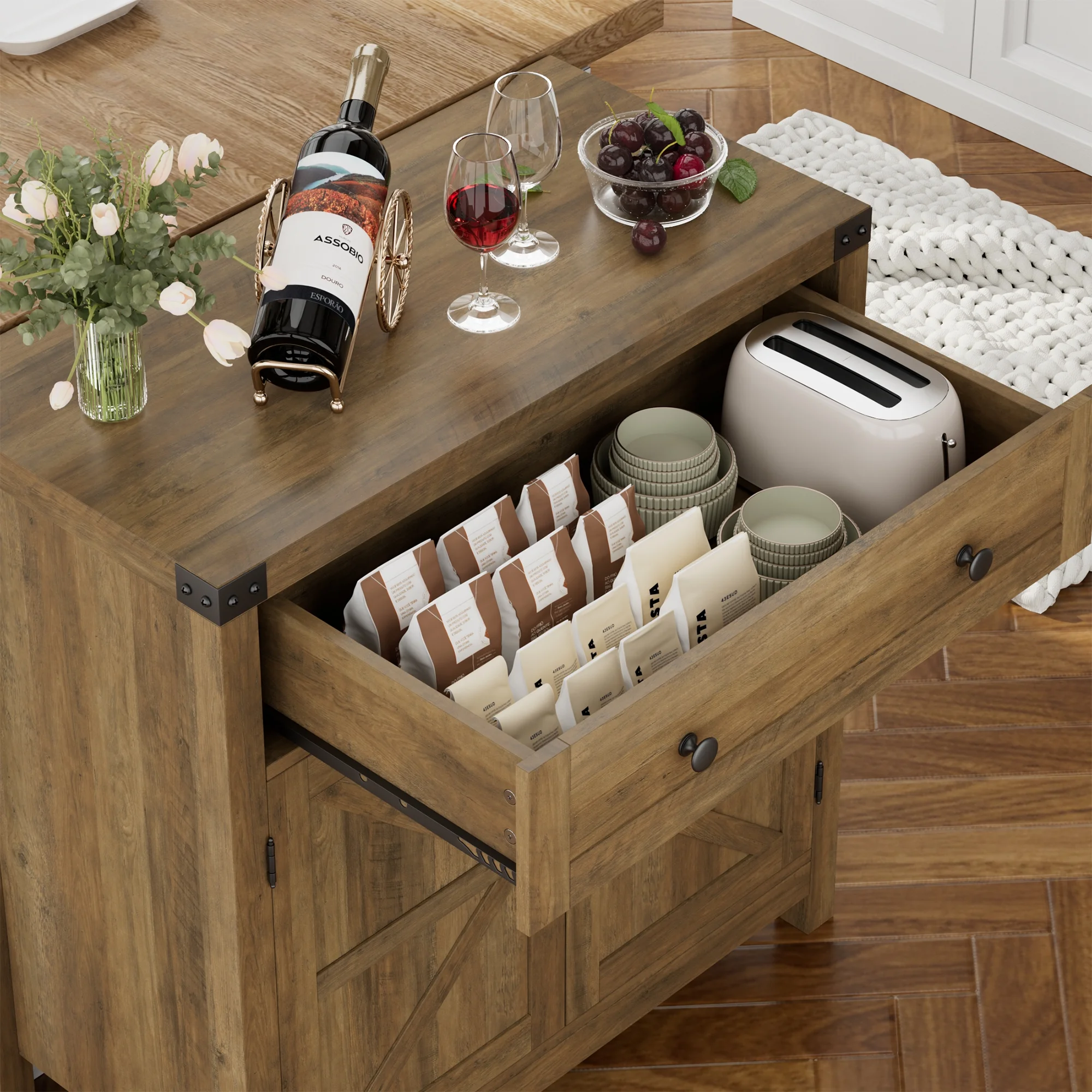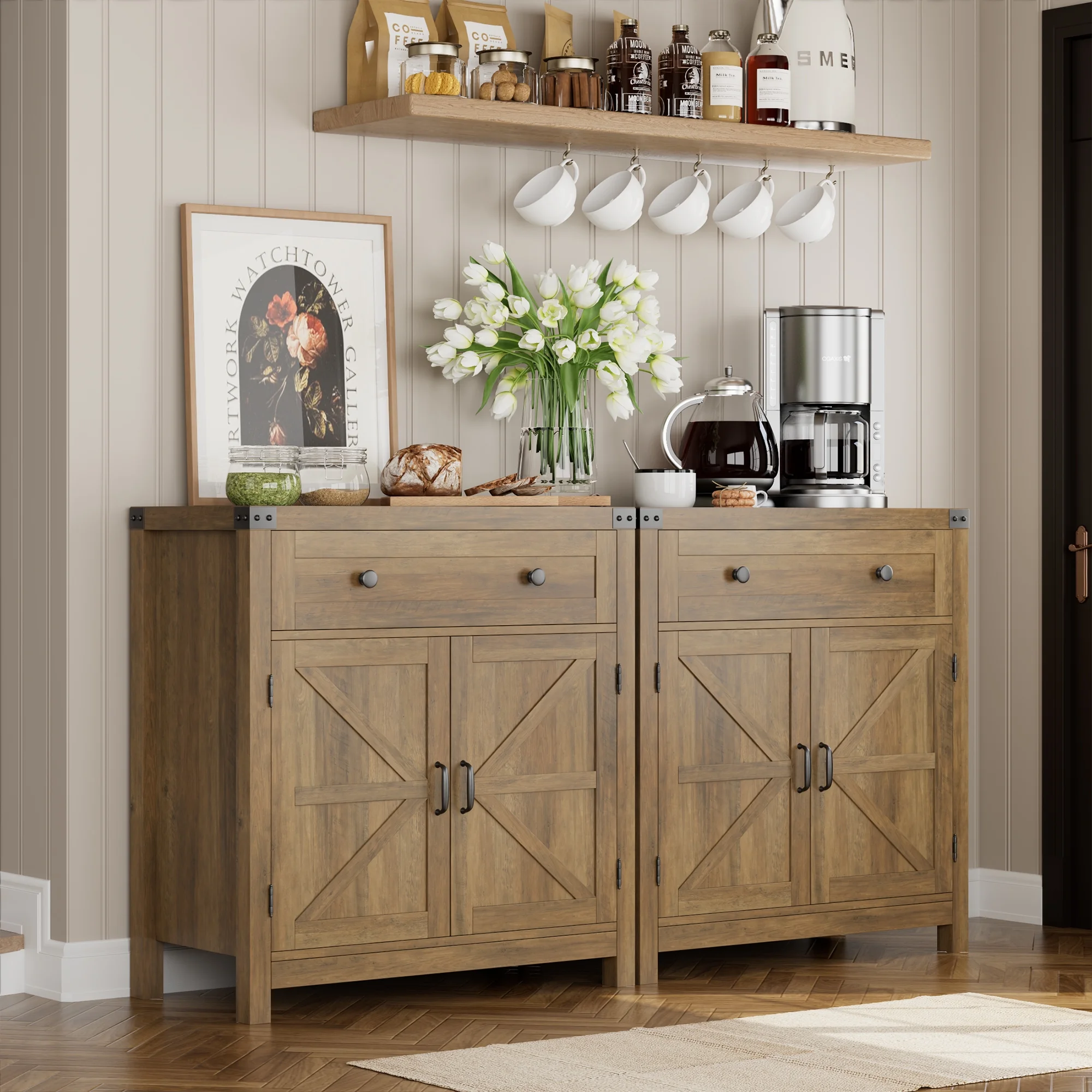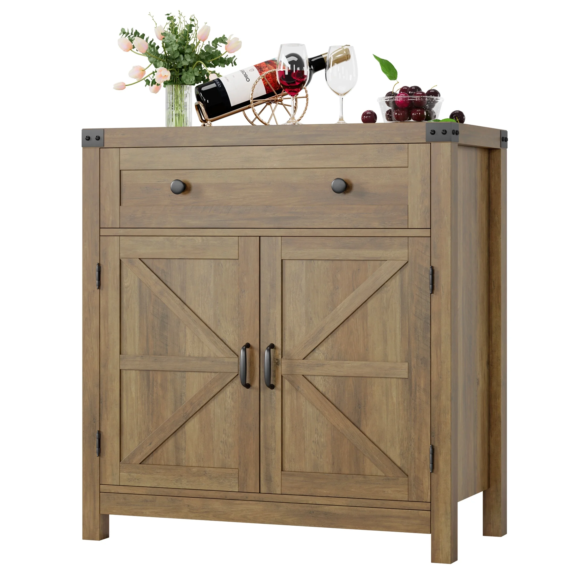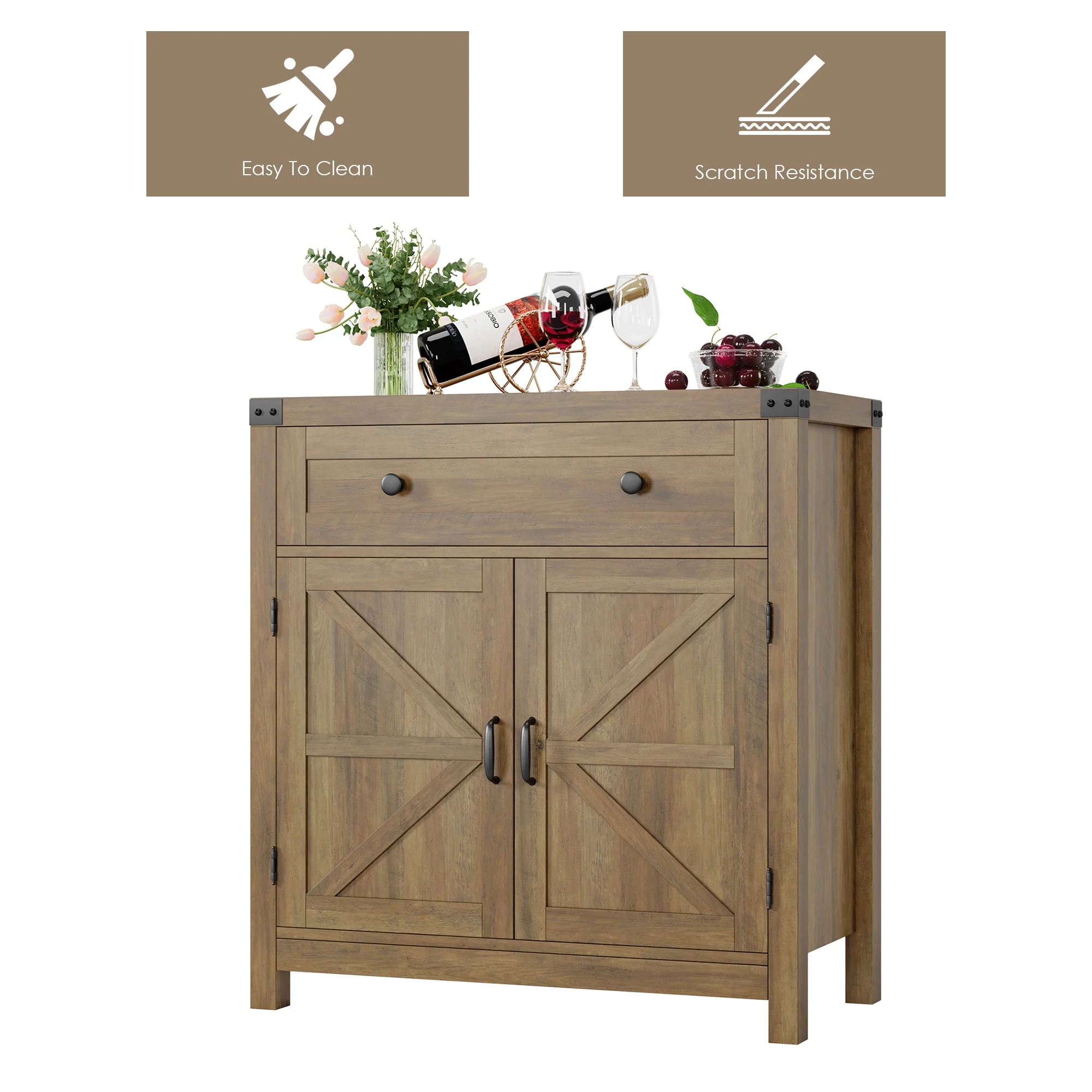 Homfa Kitchen Buffet Sideboard with Drawer, Compact Coffee Bar with Adjustable Shelf for Dining Room, Rustic Brown