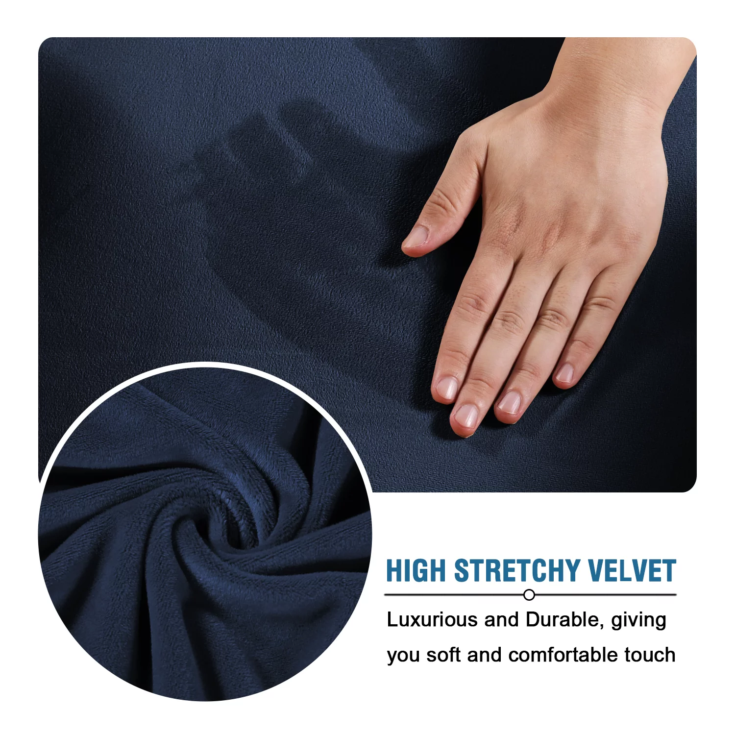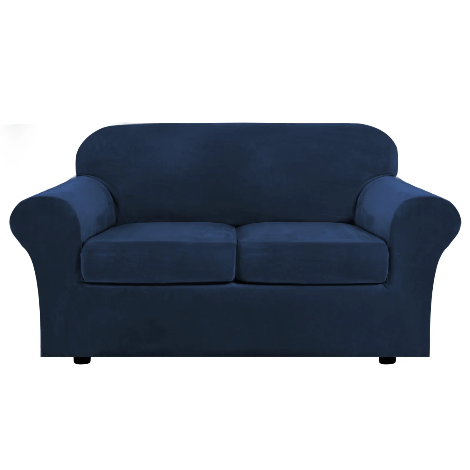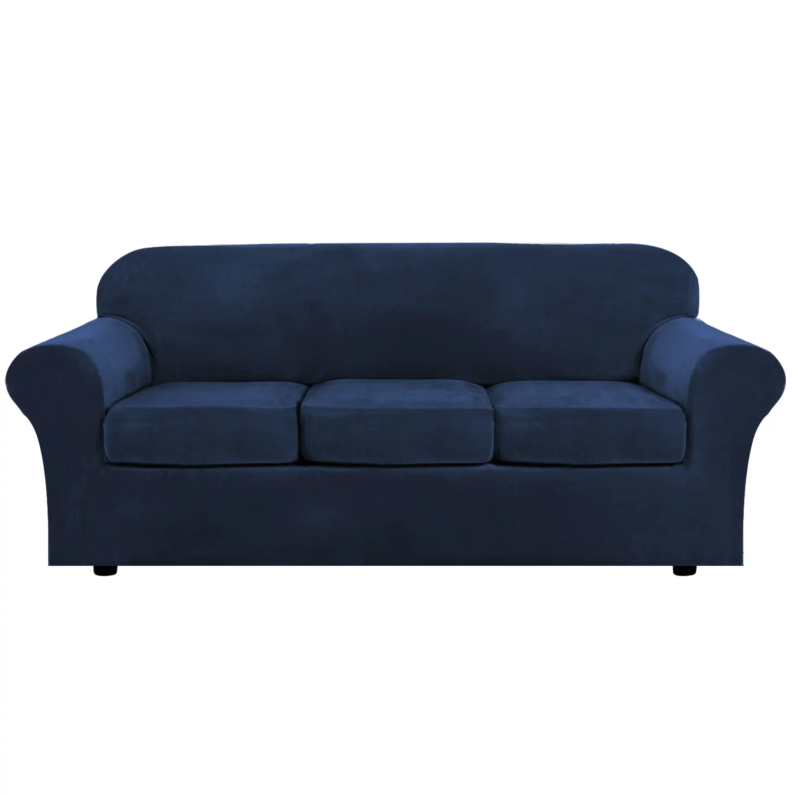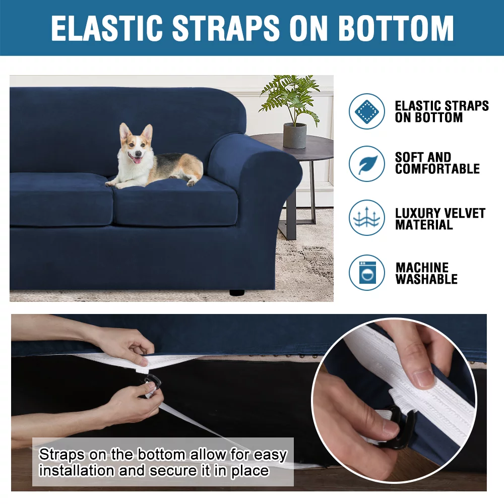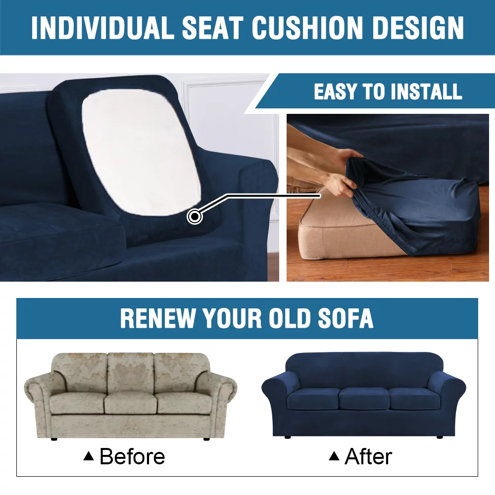 Stretch Velvet Plush Sofa Covers Couch Armchair Slipcover Protector with Cushion Covers, Navy Blue, For 3-Seater Sofa