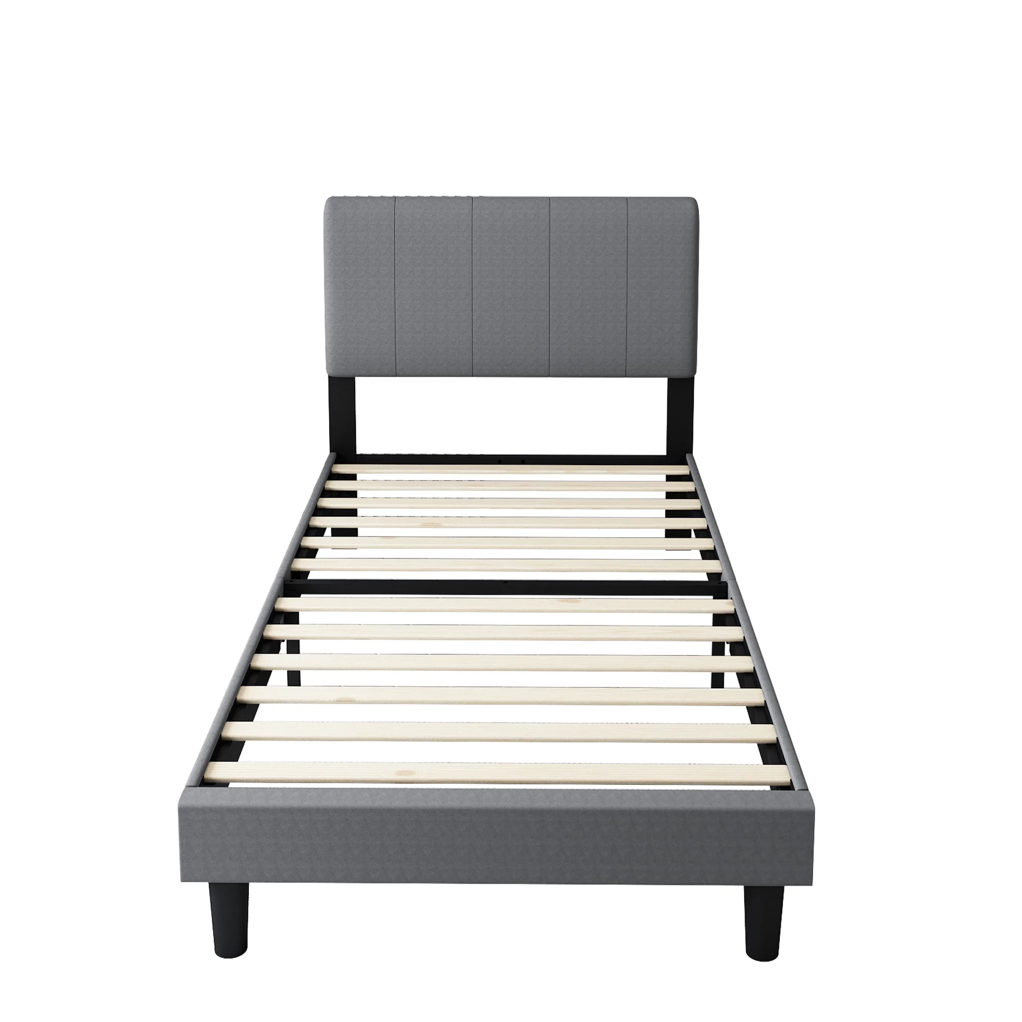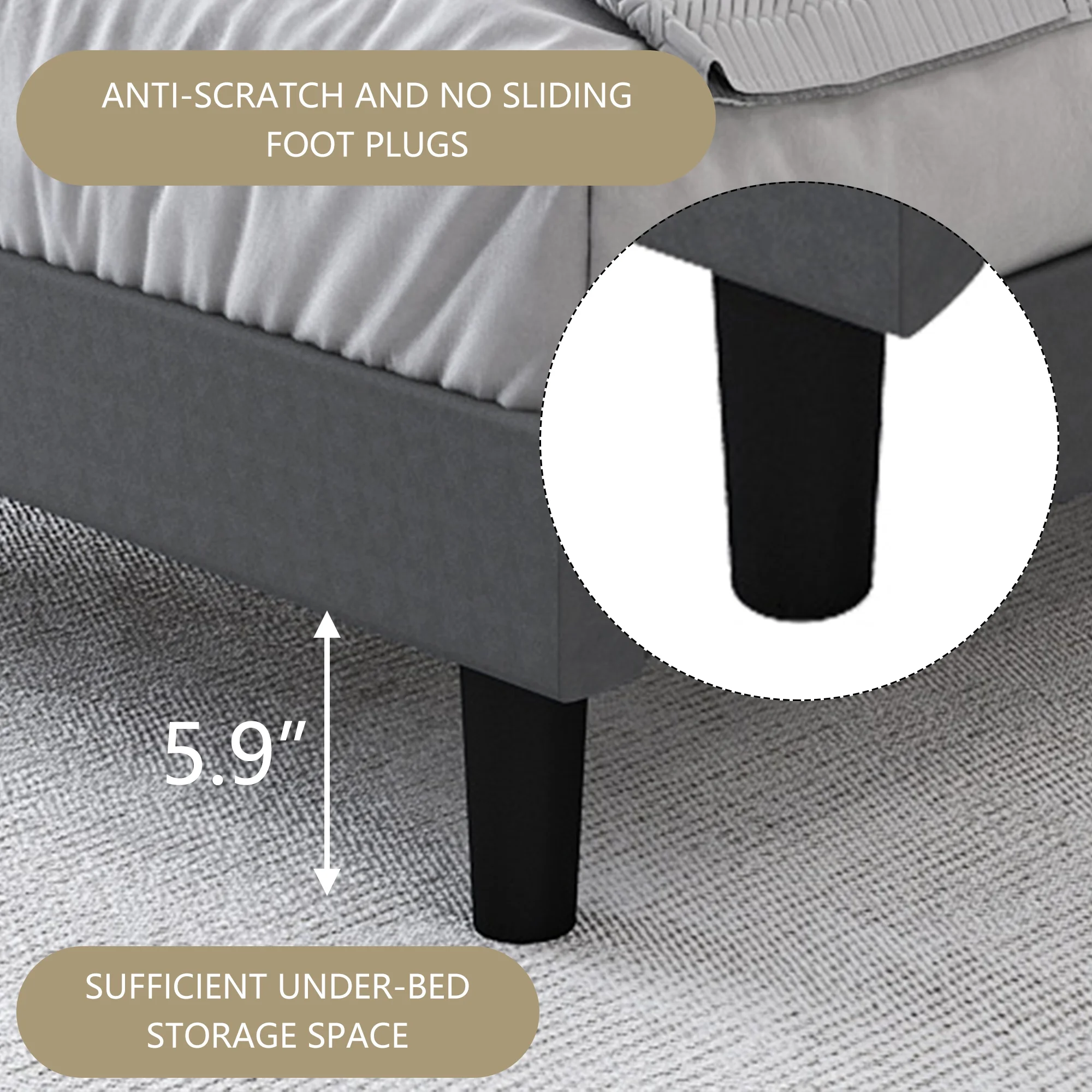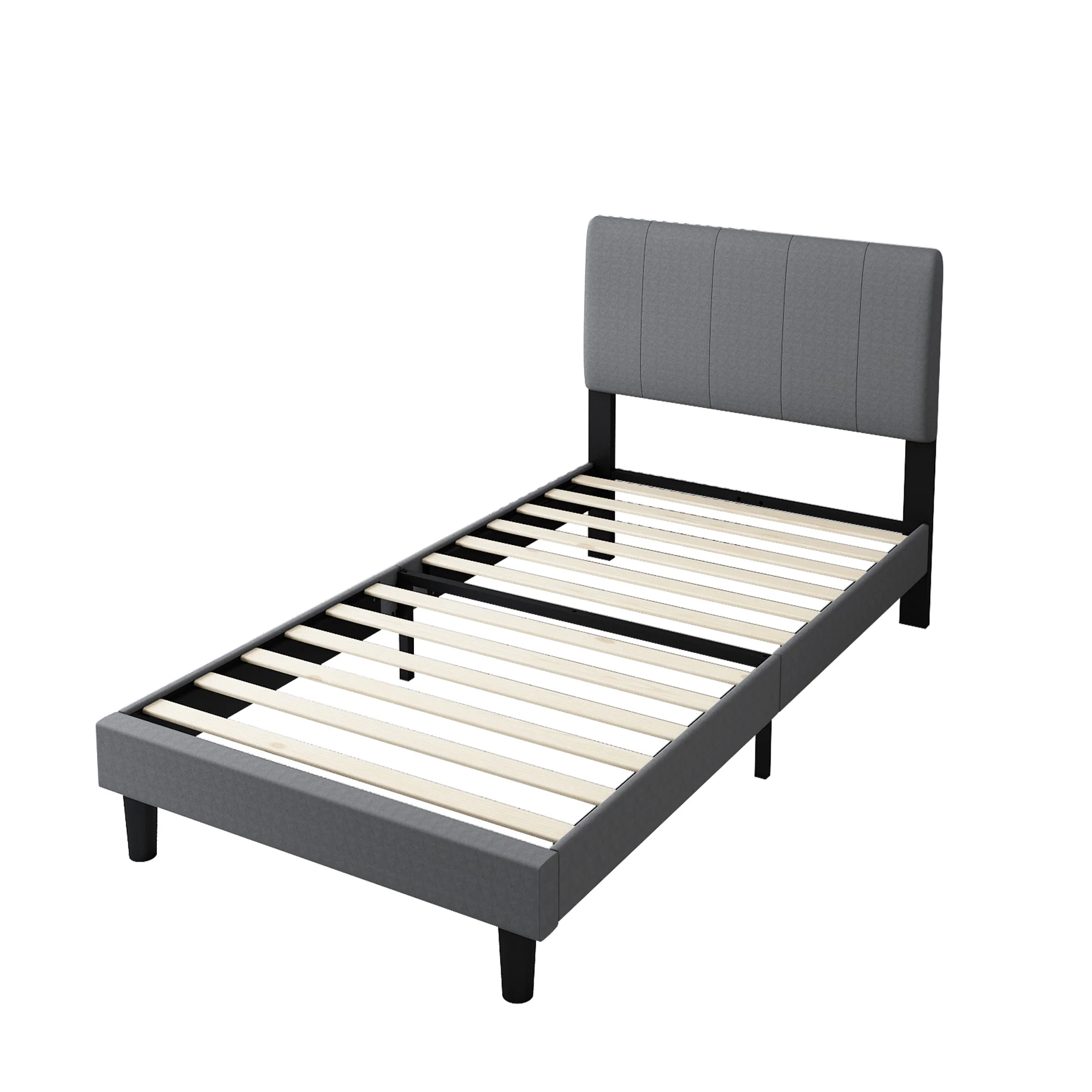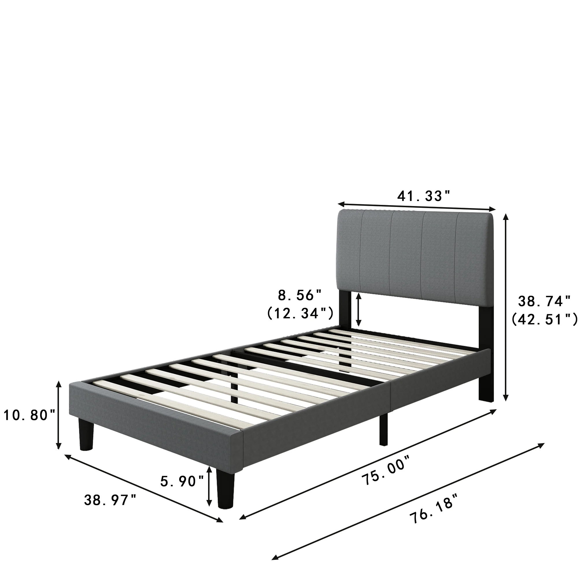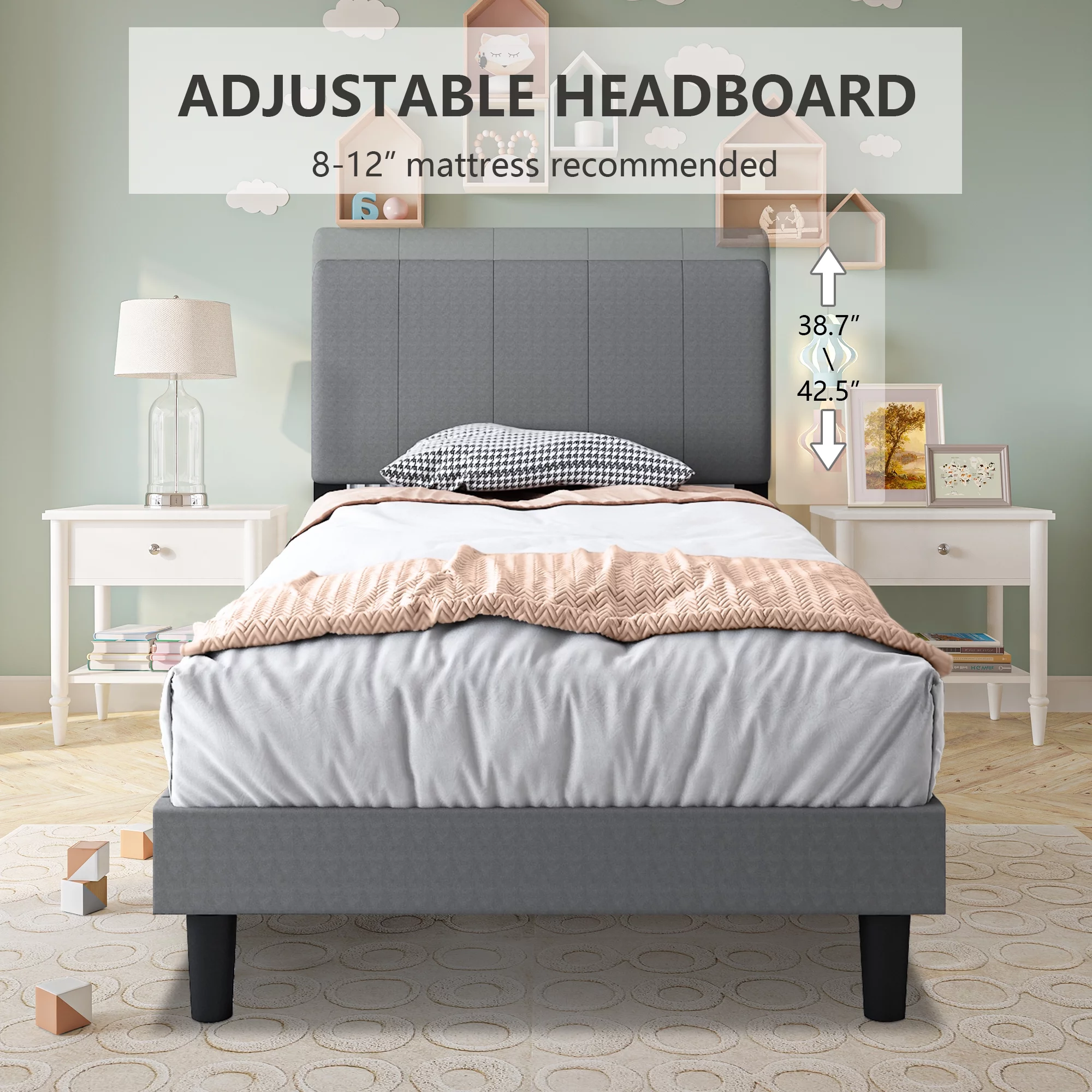 SYNGAR Twin Bed Frame, New Upgrade Twin Size Fabric Upholstered Platform Bed Frame with Height Adjustable Headboard, Bedroom Furniture Metal Frame Platform Bed Frame, No Box Spring Needed, Grey