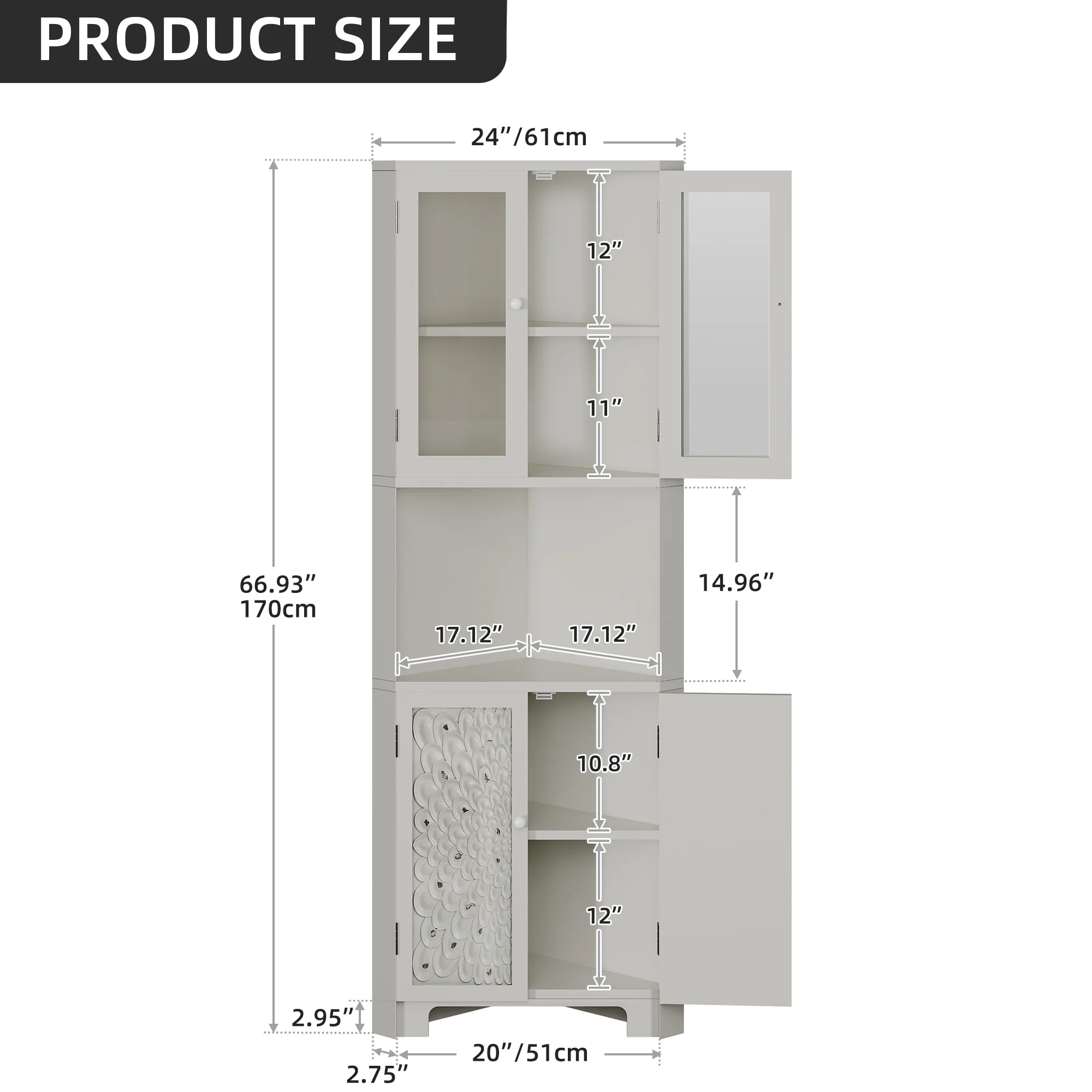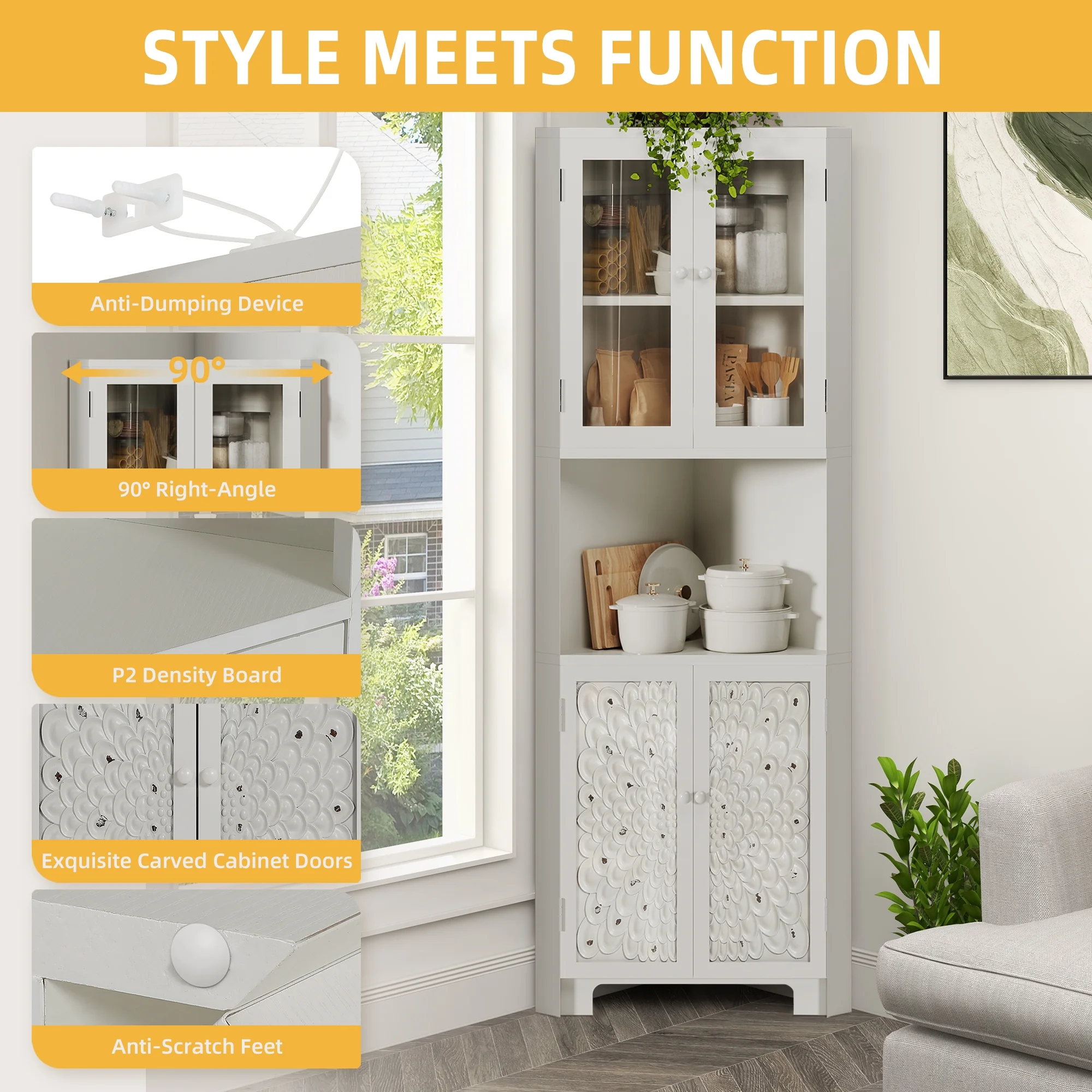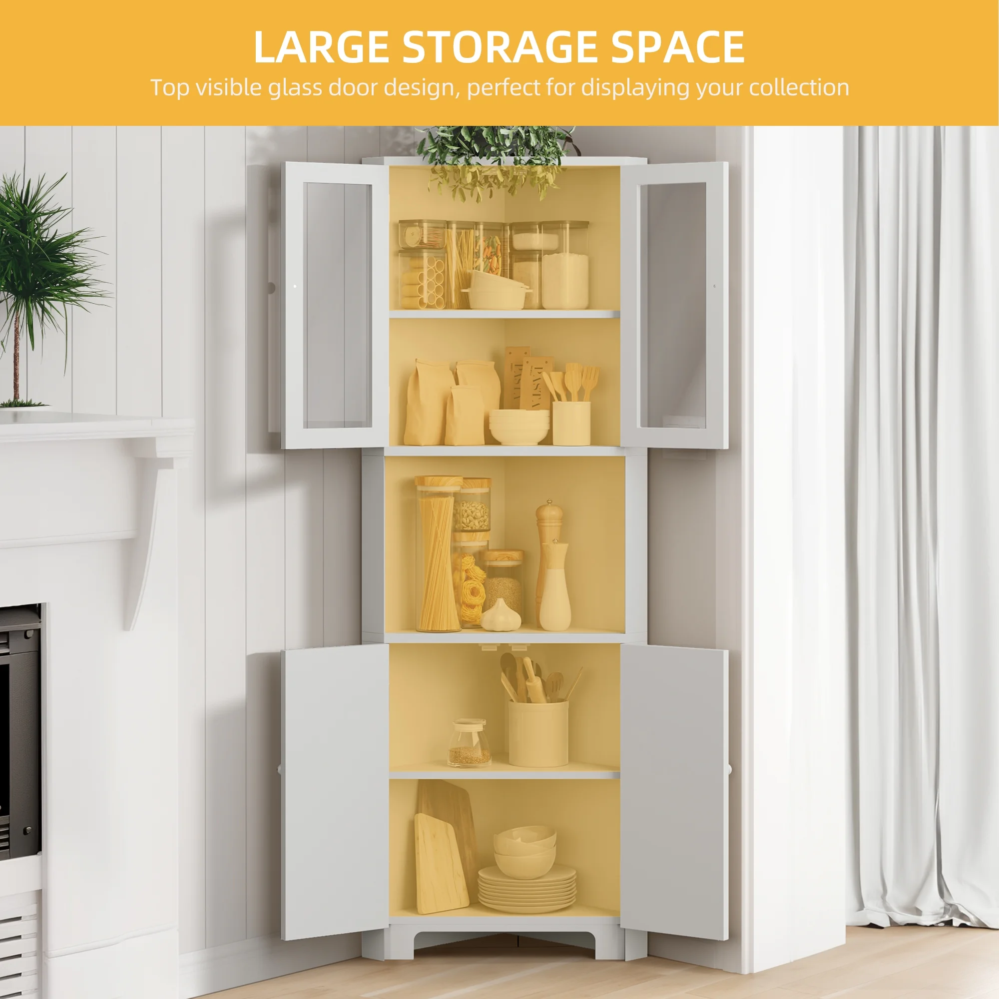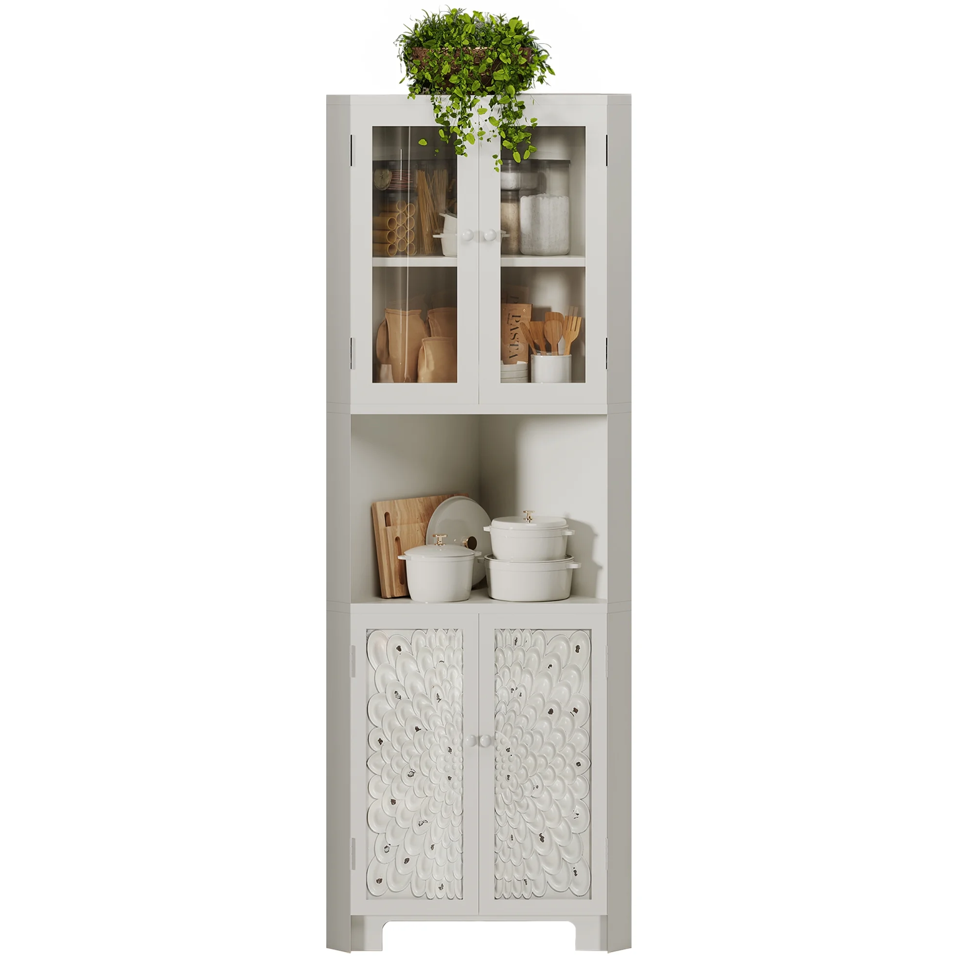 DWVO 67" Tall Corner Stoarge Cabinet With 4 Doors ,Corner Kitchen Cabinet,Buffet Cabinet for Living Room, Bathroom, Kitchen, White