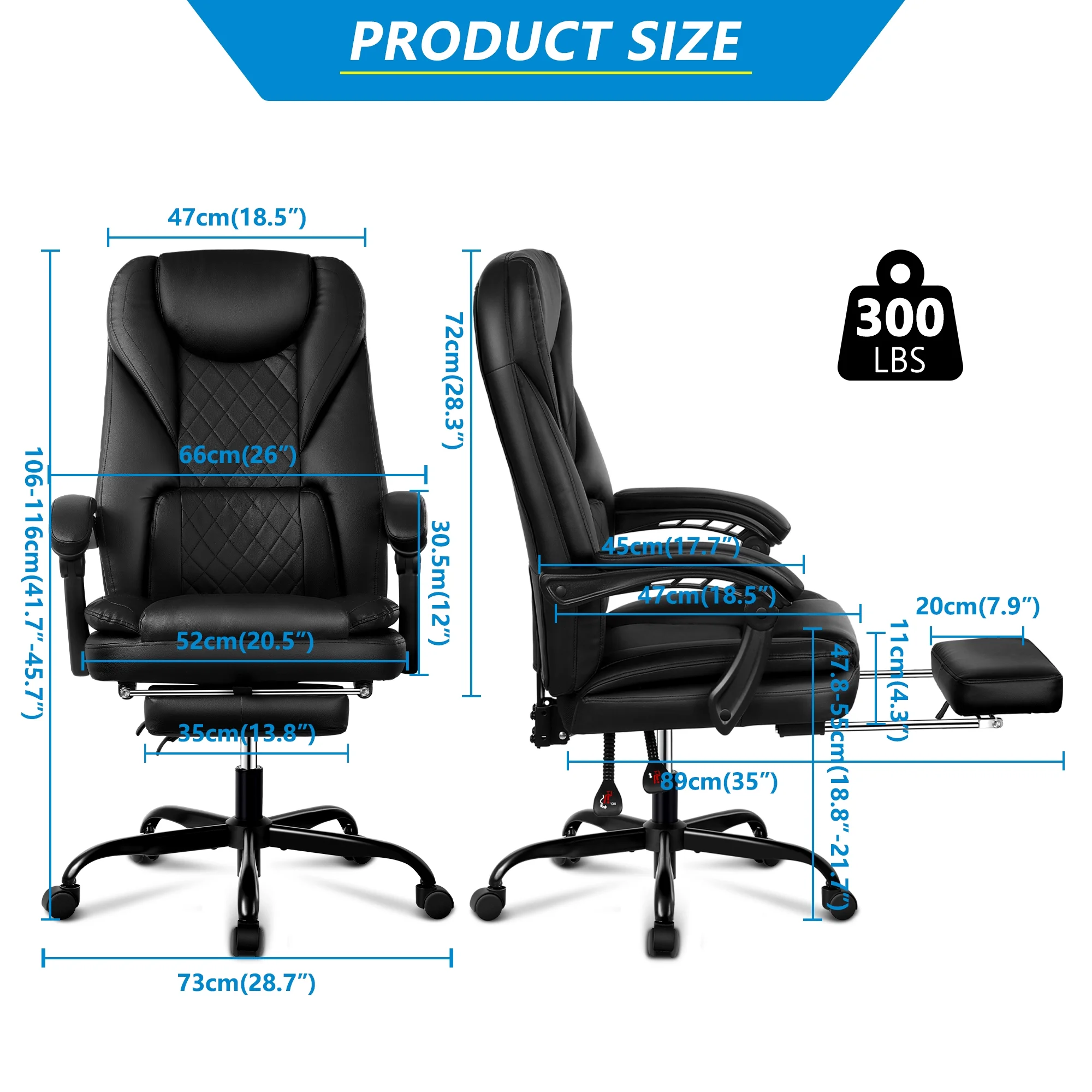 Coolhut Executive Office Chair, Big and Tall Office Chair with Foot Rest Reclining Leather Chair High Back Home Office Desk Chairs with Lumbar Support Ergonomic Office Chair with Padded Armrests,Black