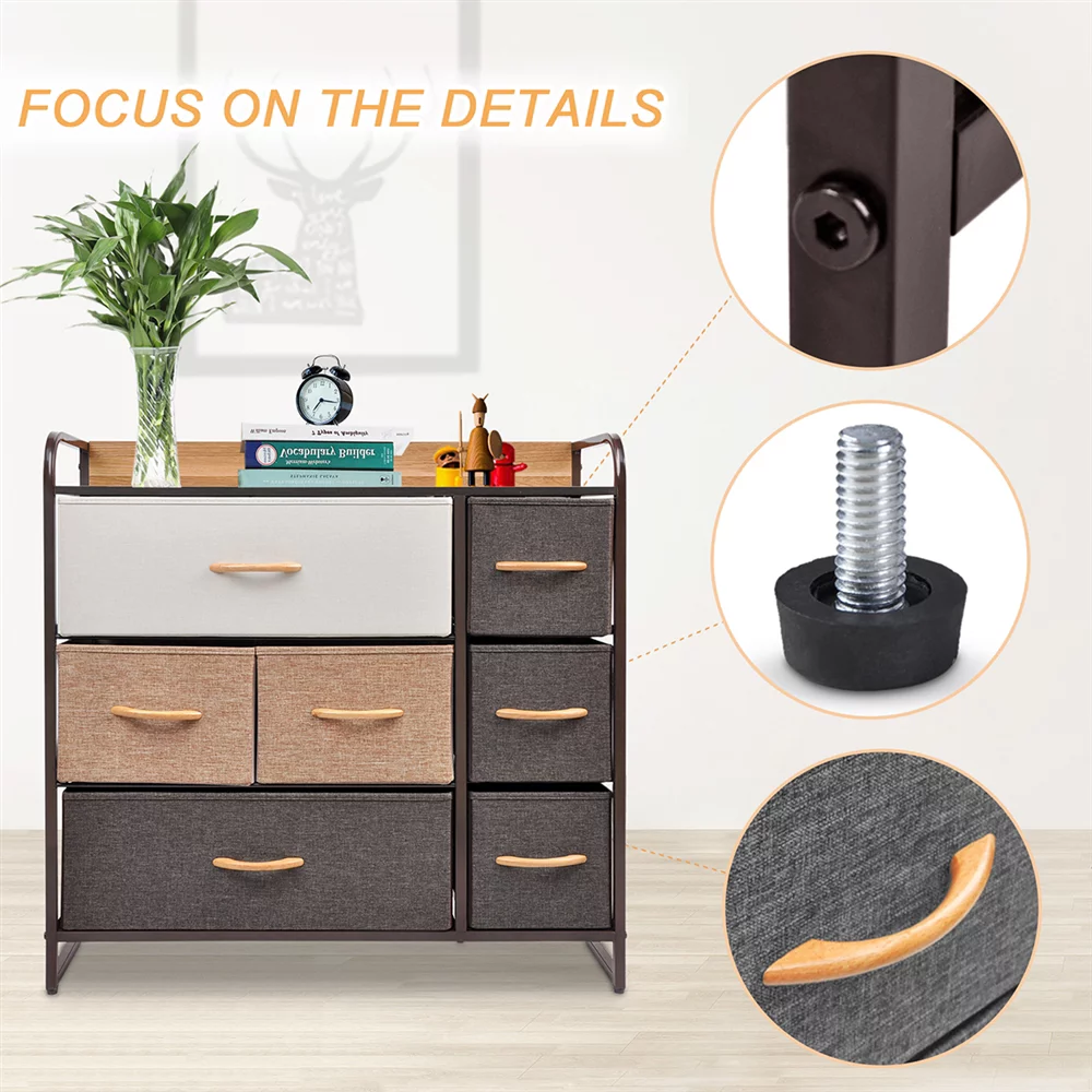 Bigroof Fabric Dresser with 7 Drawers - Storage Tower with Large Capacity for Bedroom, Living Room & Closets - Steel Frame Wooden Top with Fabric Bins for Clothing Blankets Plush Toy