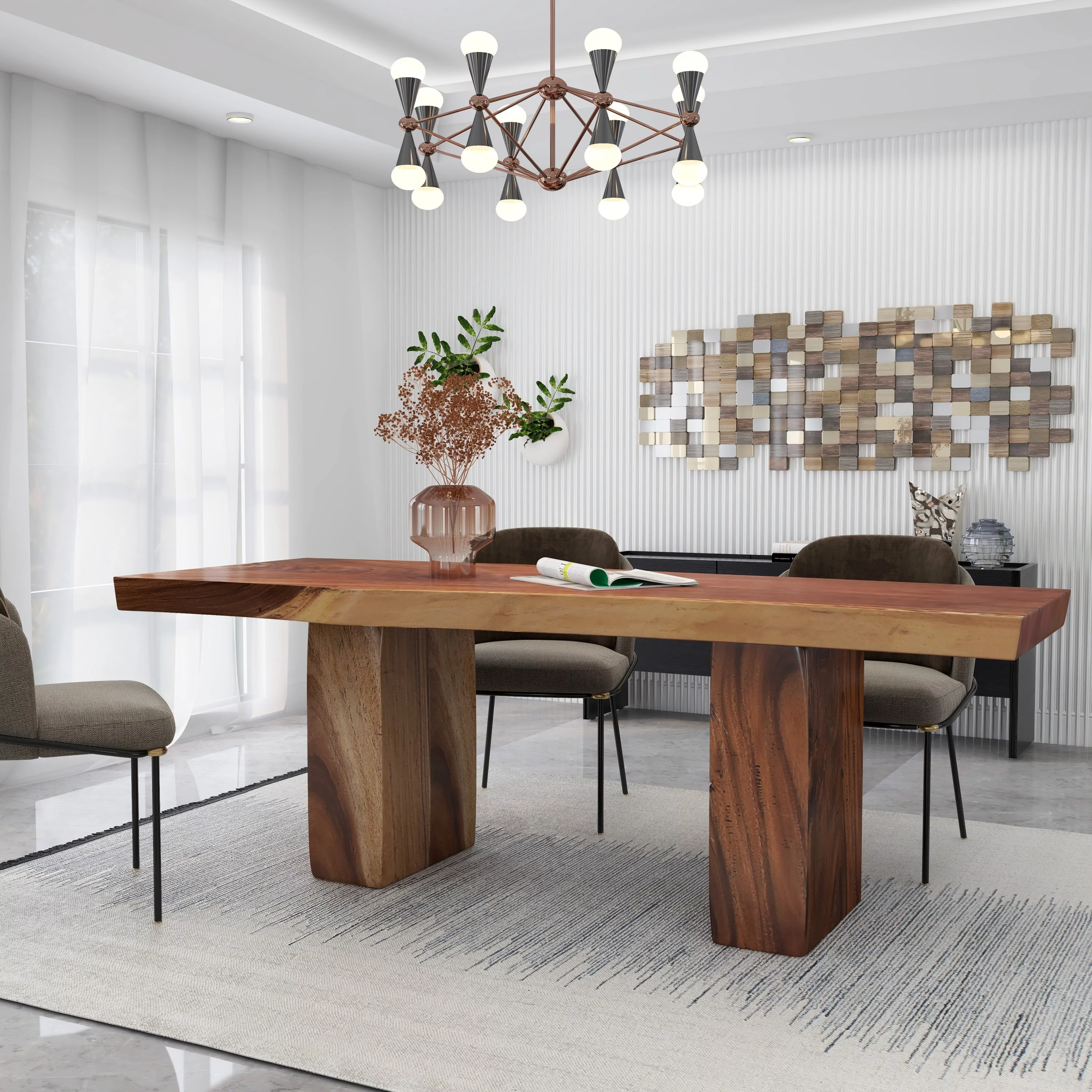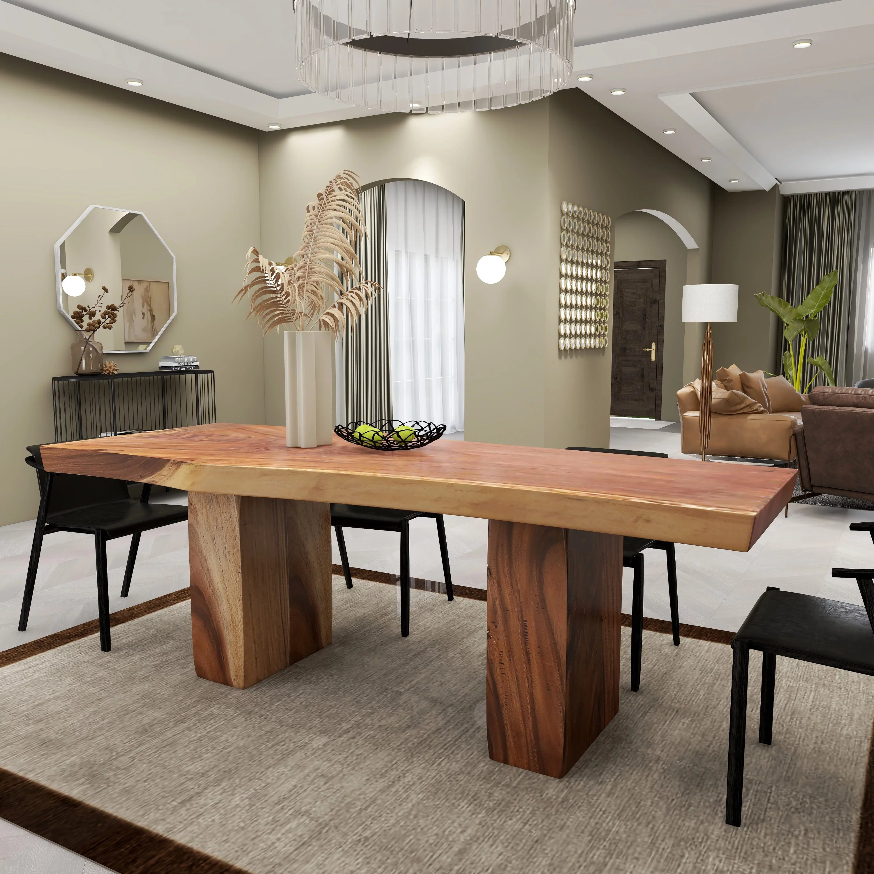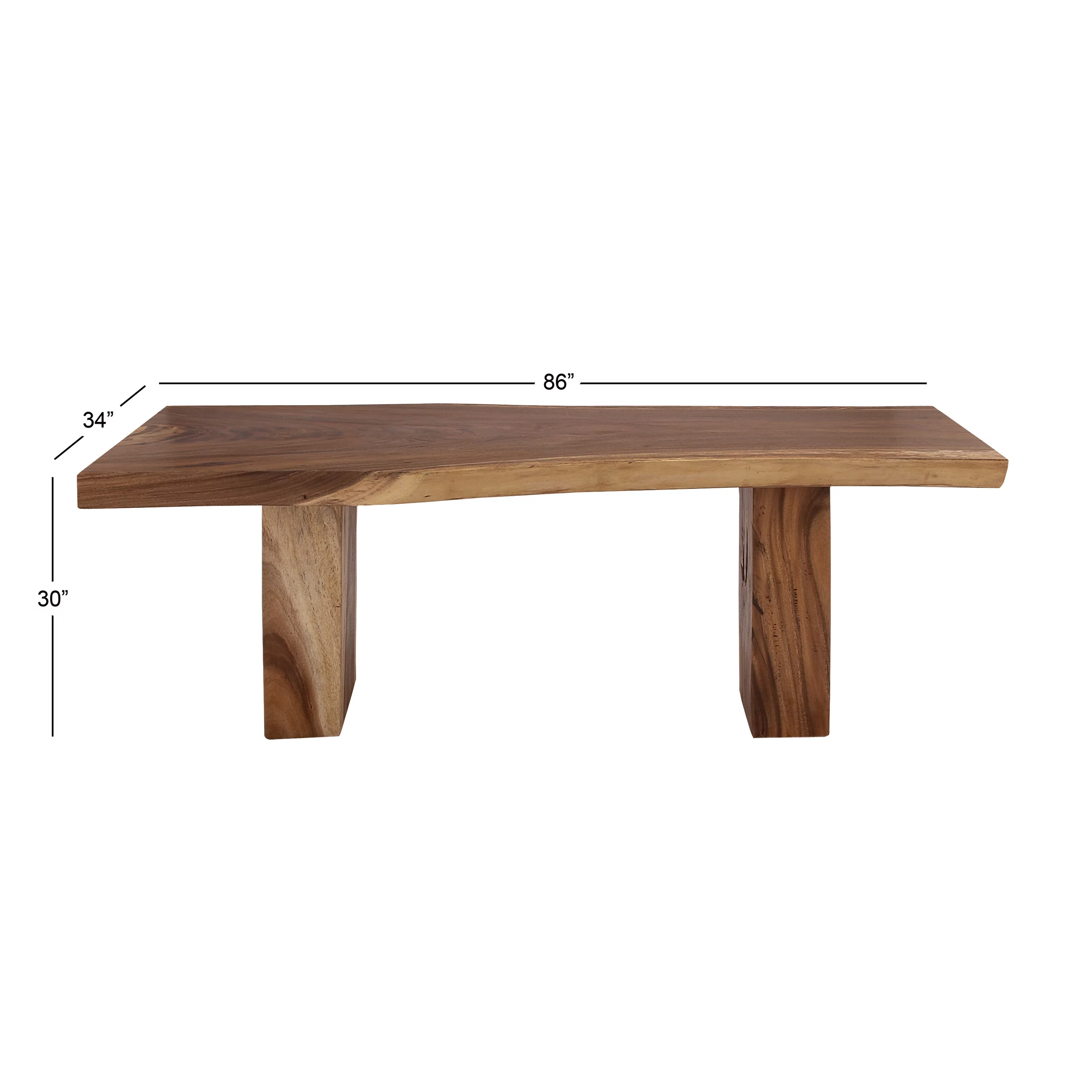 DecMode 86" x 30" Light Brown Wood Handmade Dining Table with Block Style Base, 1-Piece