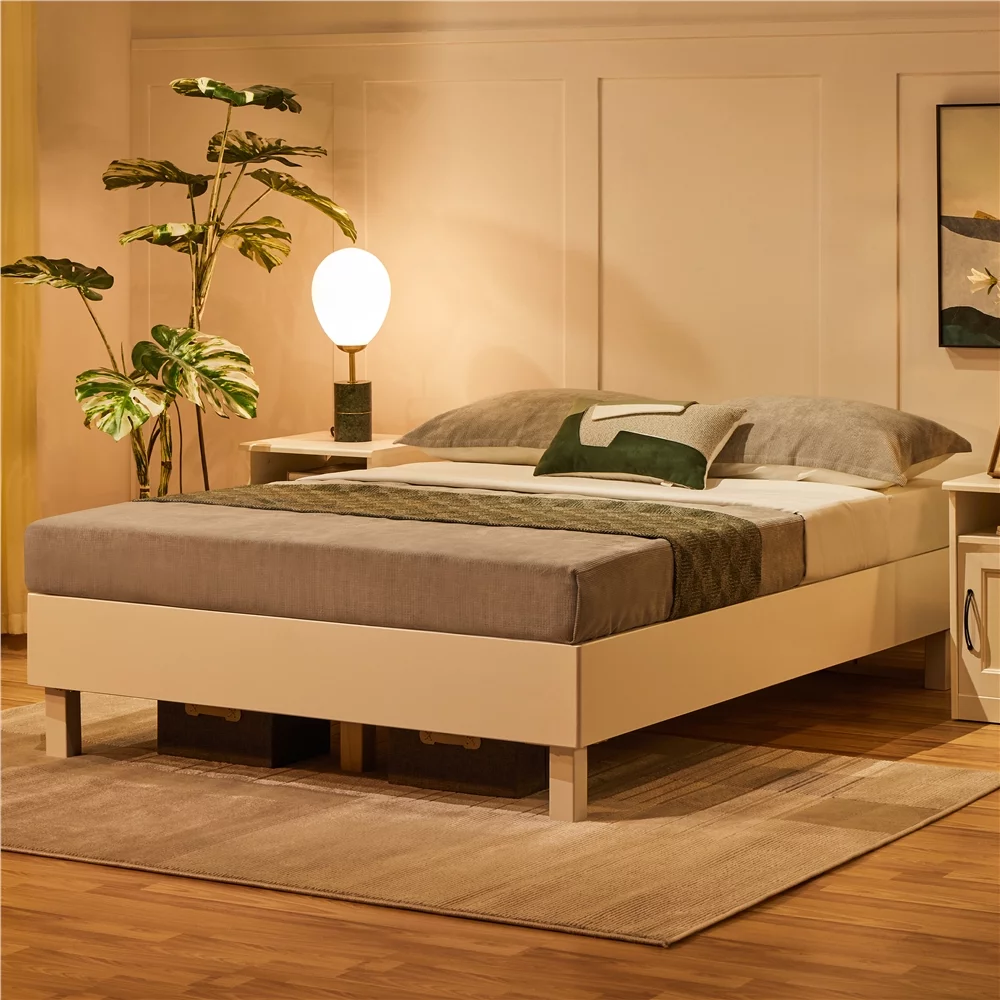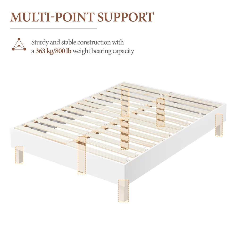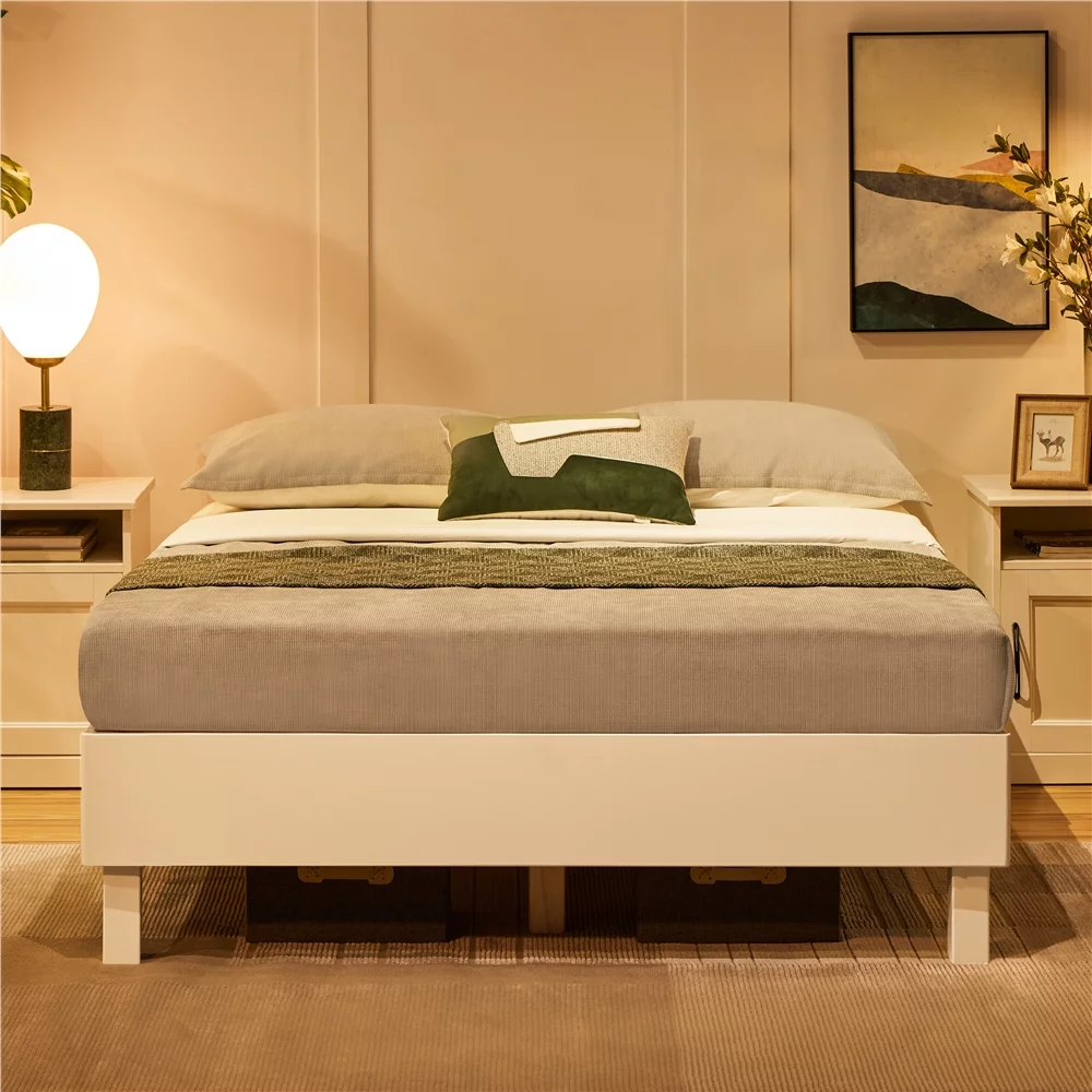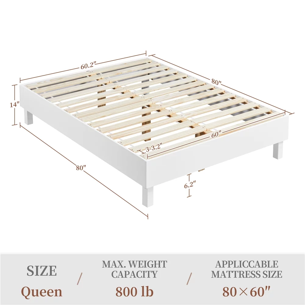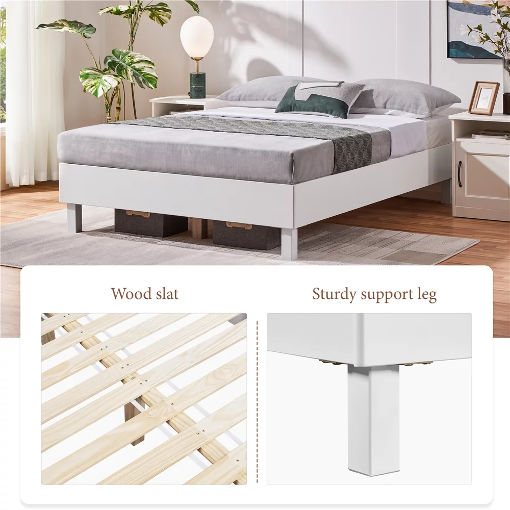 Easyfashion 14''H Platform Bed Frame with Wooden Slats, Queen, White