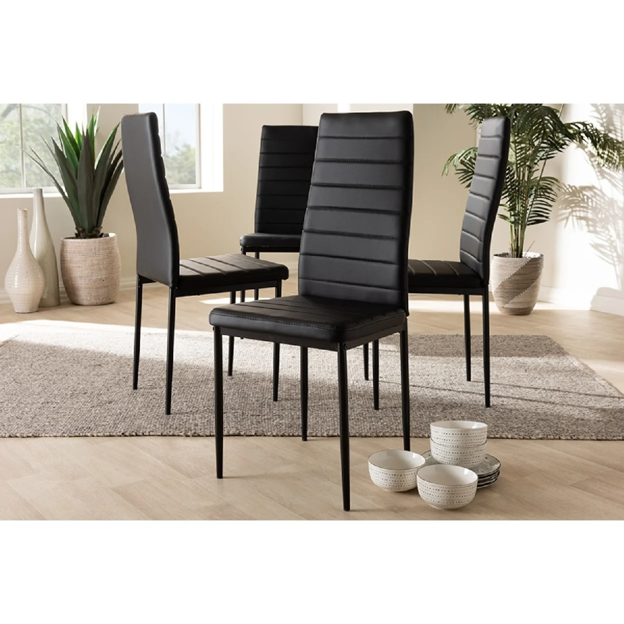 Baxton Studio Armand Modern and Contemporary Black Faux Leather Upholstered Dining Chair (Set of 4)