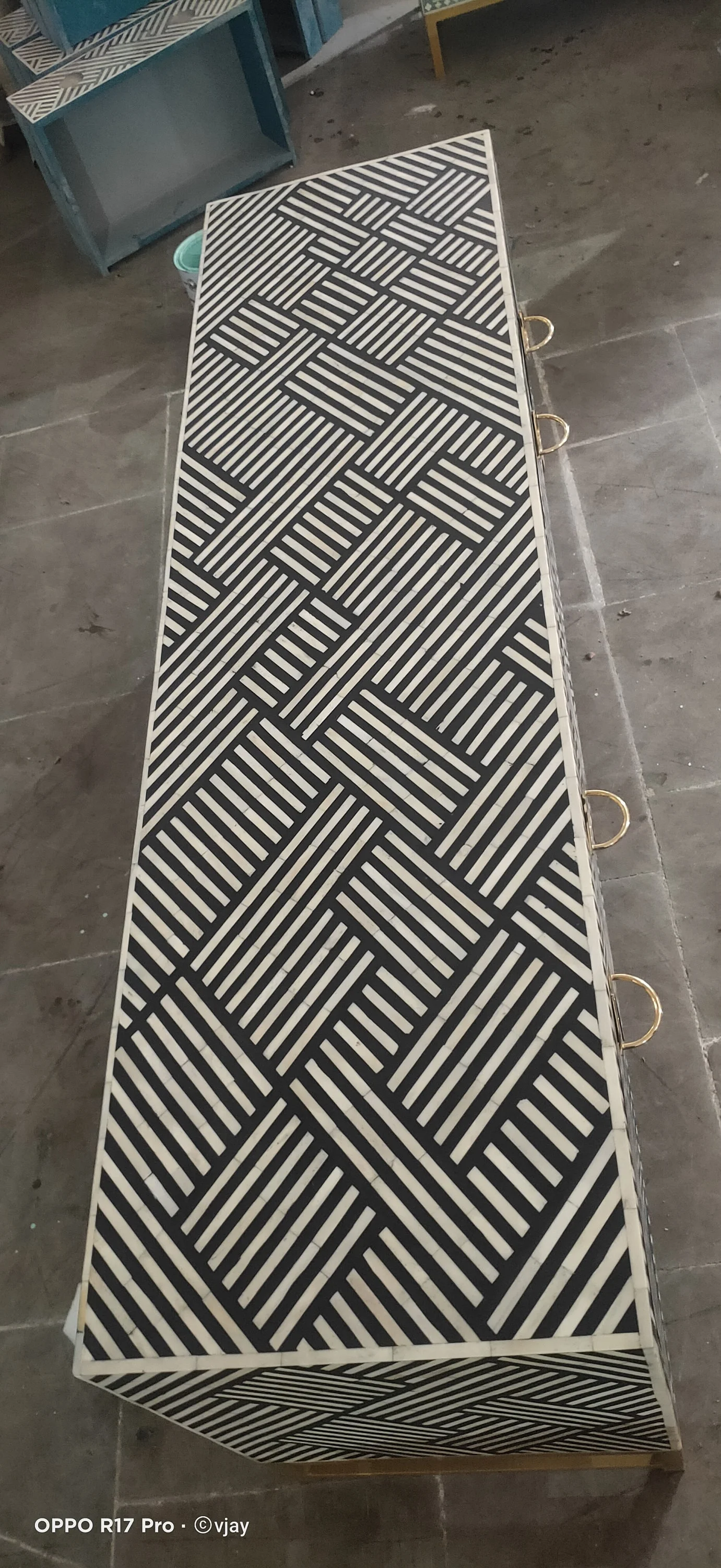 LAKECITY ARTS Bone Inlay Optical Design Media Cabinet in Black, Bone Inlay Optical Design Media Console, Bone Inlay Storage Unit