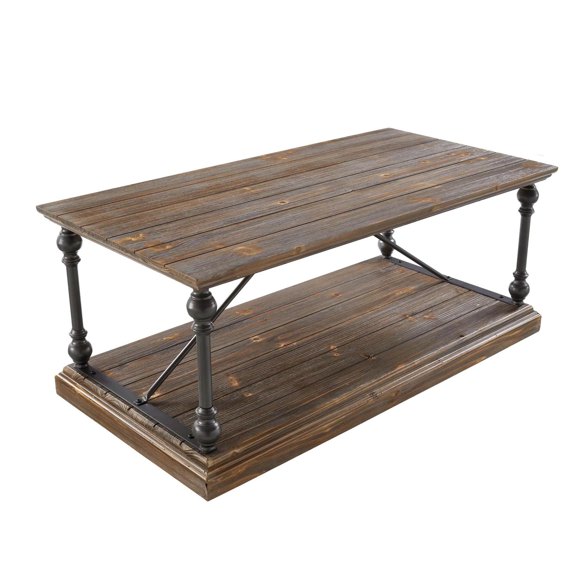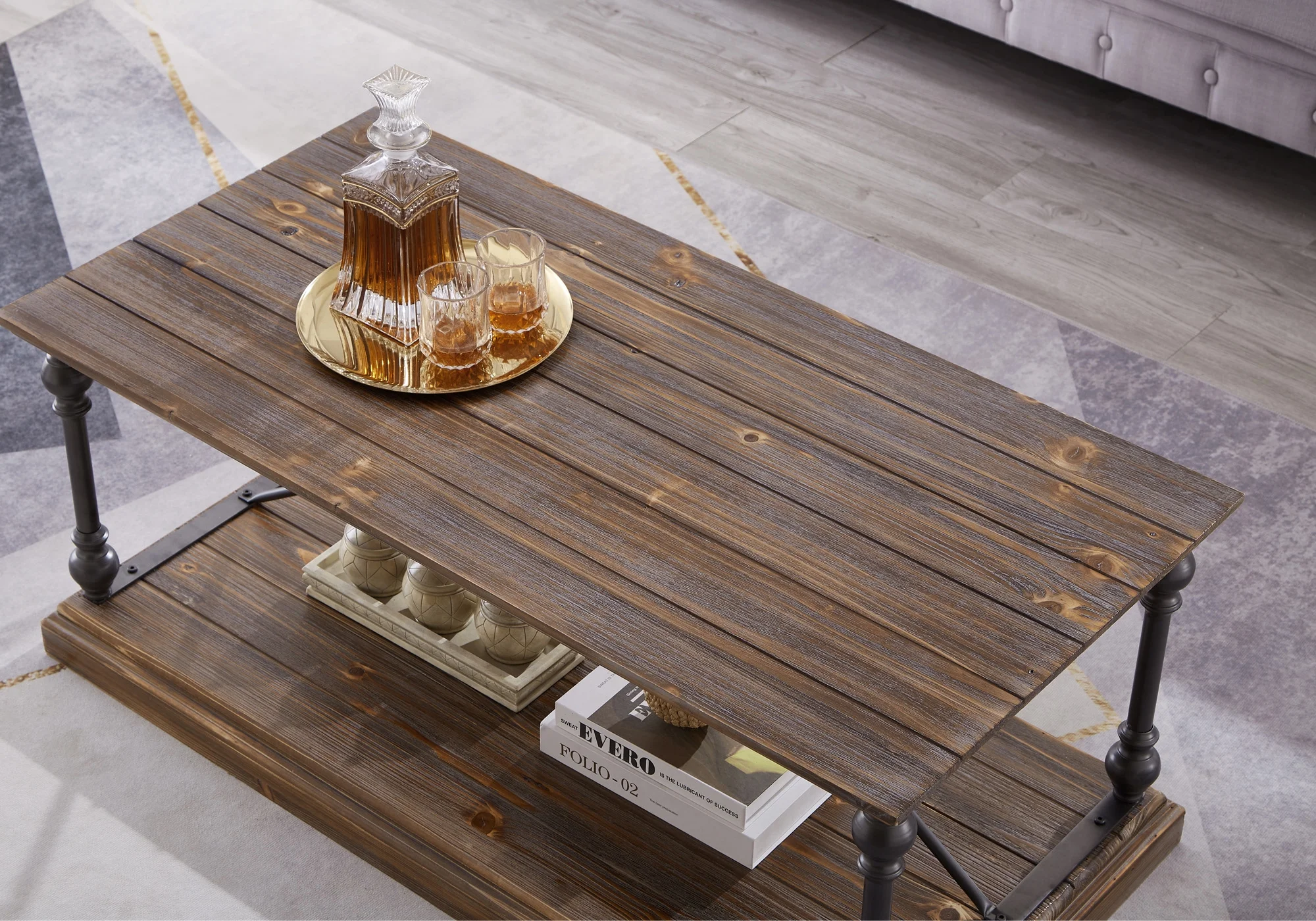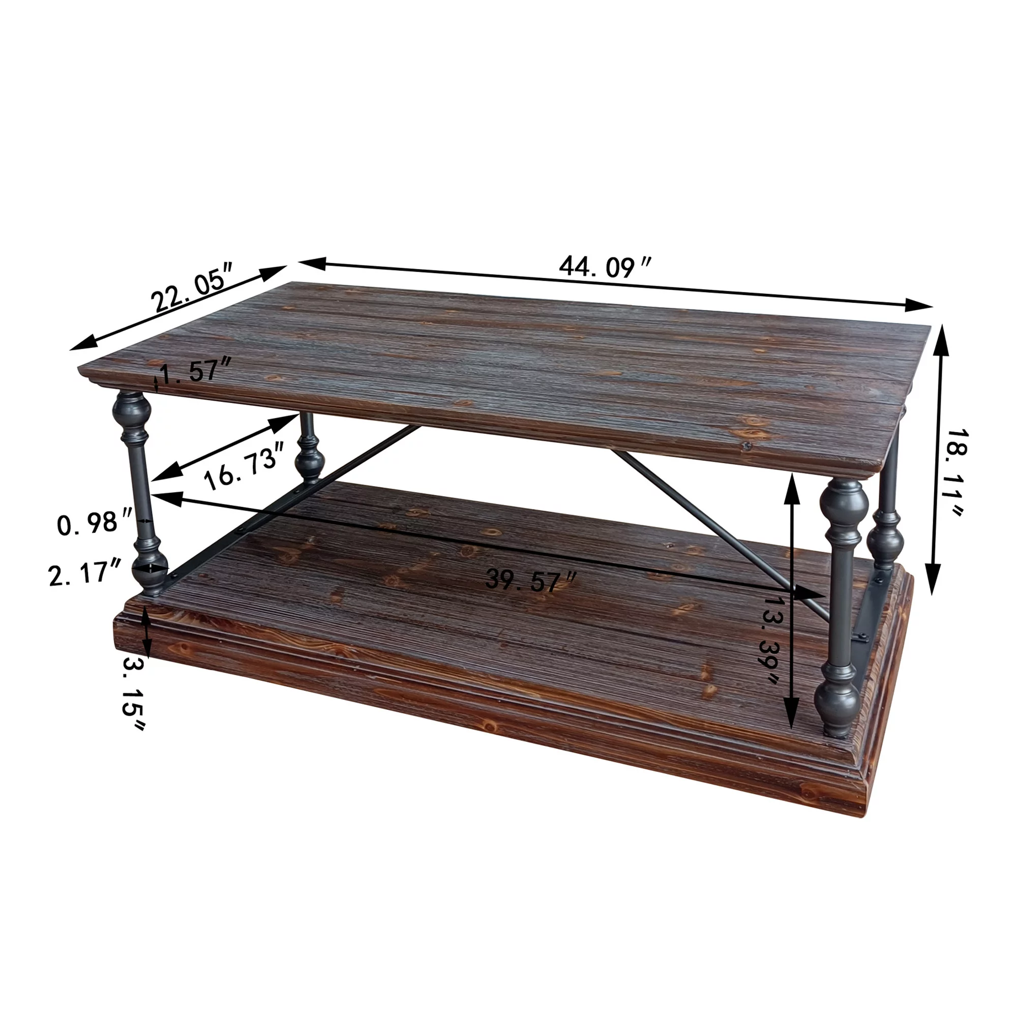 GEXPUSM Farmhouse Rustic Coffee Table, 43" Rectangle Coffee Table with Storage Shelf, Center Table for Living Room, Dark Brown