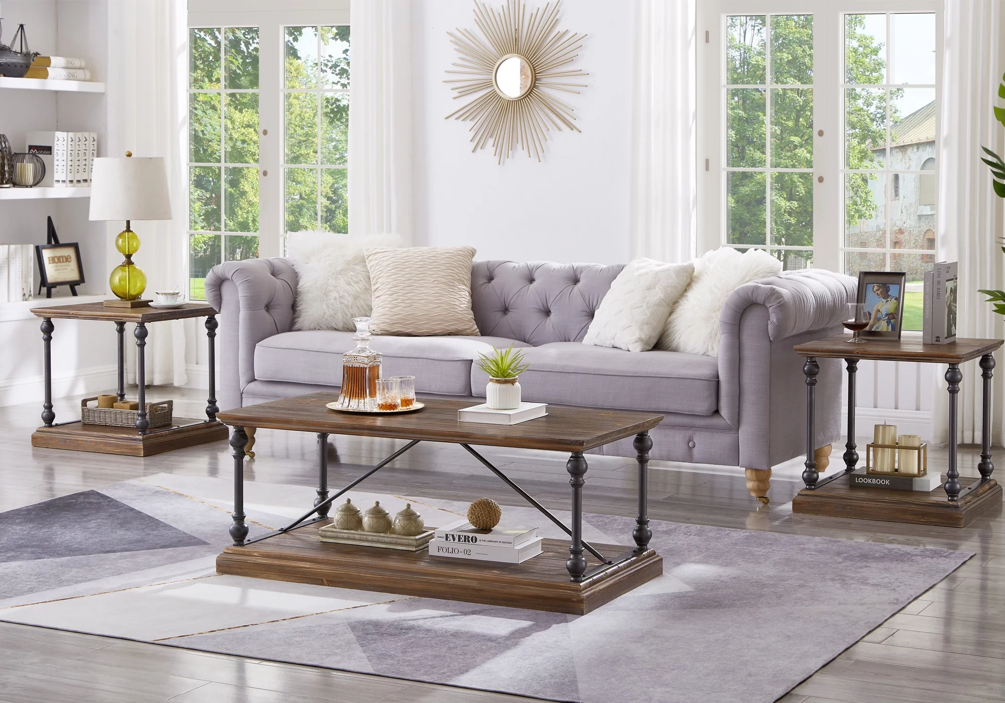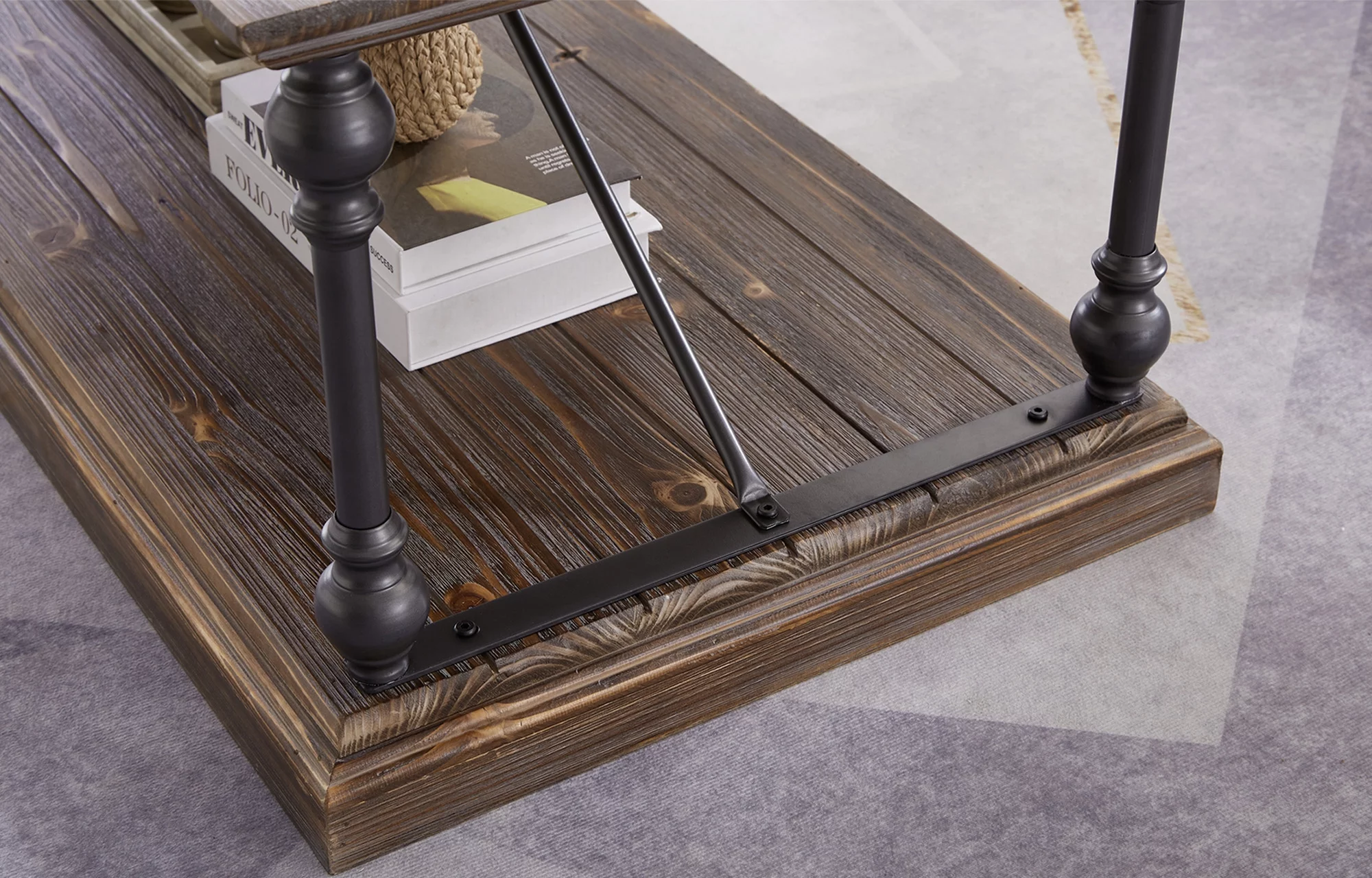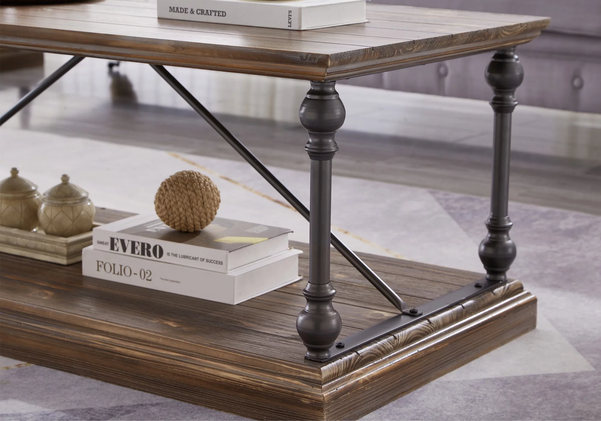 GEXPUSM Farmhouse Rustic Coffee Table, 43" Rectangle Coffee Table with Storage Shelf, Center Table for Living Room, Dark Brown