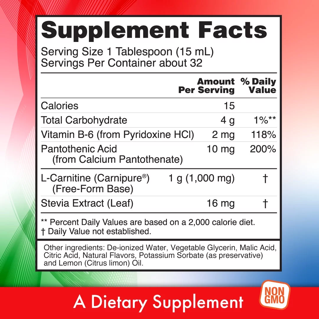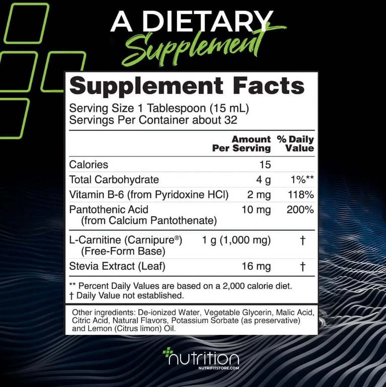 NUTRI Plus Fit, L-Carnitine Highly Body Absorption, Plus Vitamin B6 , 1000MG Citrus Flavor, 16 Oz