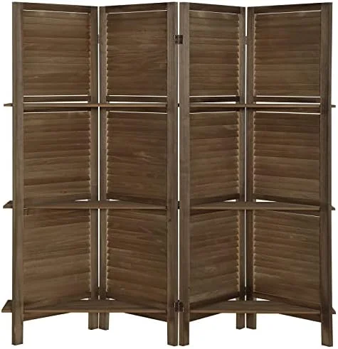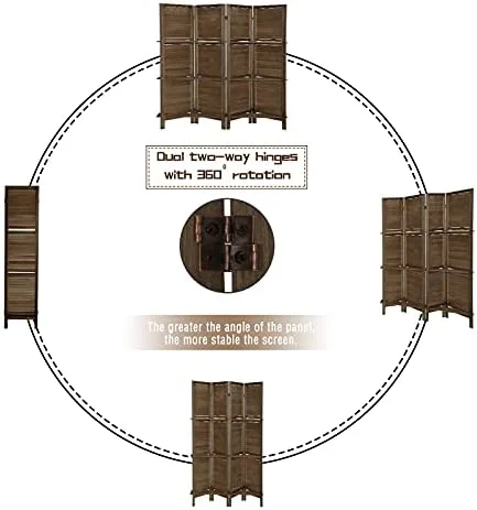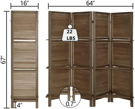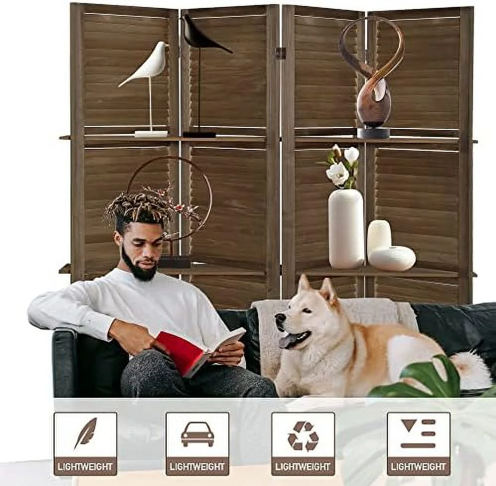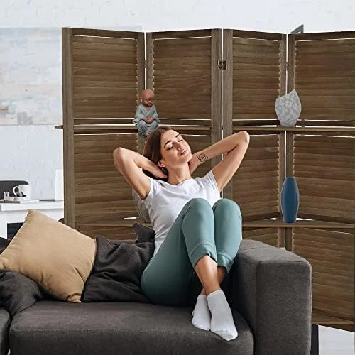 RUNFAYBIU 6 Panel Room Divider with Shelves Fully Assembled 5.6Ft Folding Privacy Screens Wooden Room Dividers and Room Separator for Home Bedroom Dark Brown