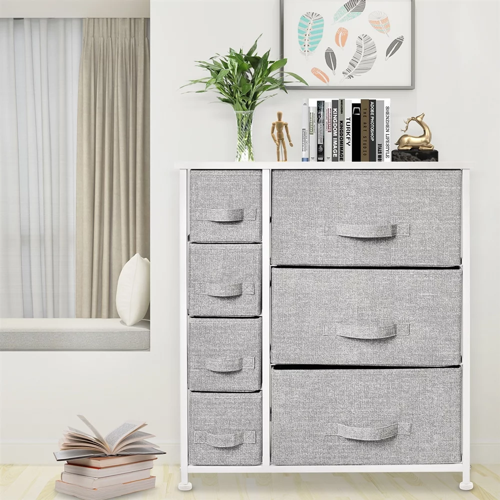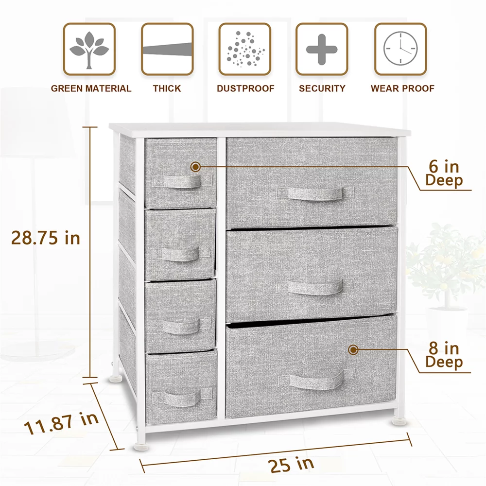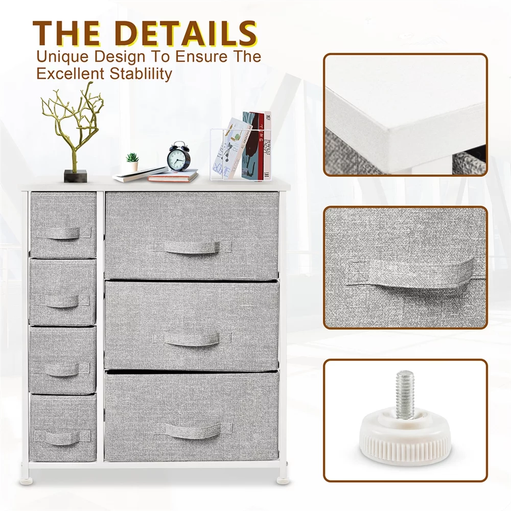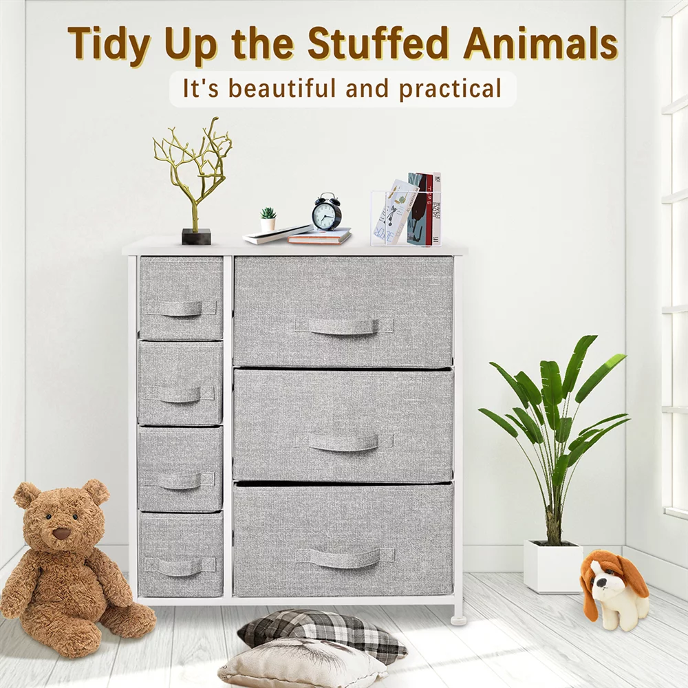 Bigroof Dresser for Bedroom Chest of Drawers Storage Organizer with Fabric Bins Steel Frame Wood top for Kids Bedroom Nursery Closet (Light Gray-7 Drawers)