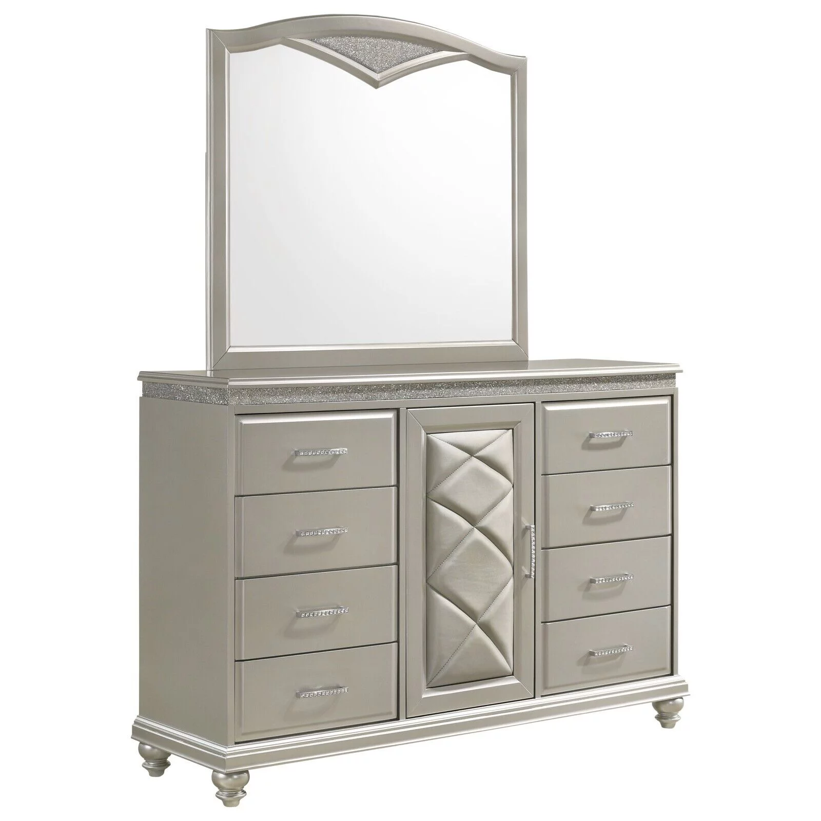 6pc Traditional Style King Panel Bed Dresser Mirror Nightstand Chest Wooden Bedroom Furniture Set Metallic Silver Finish