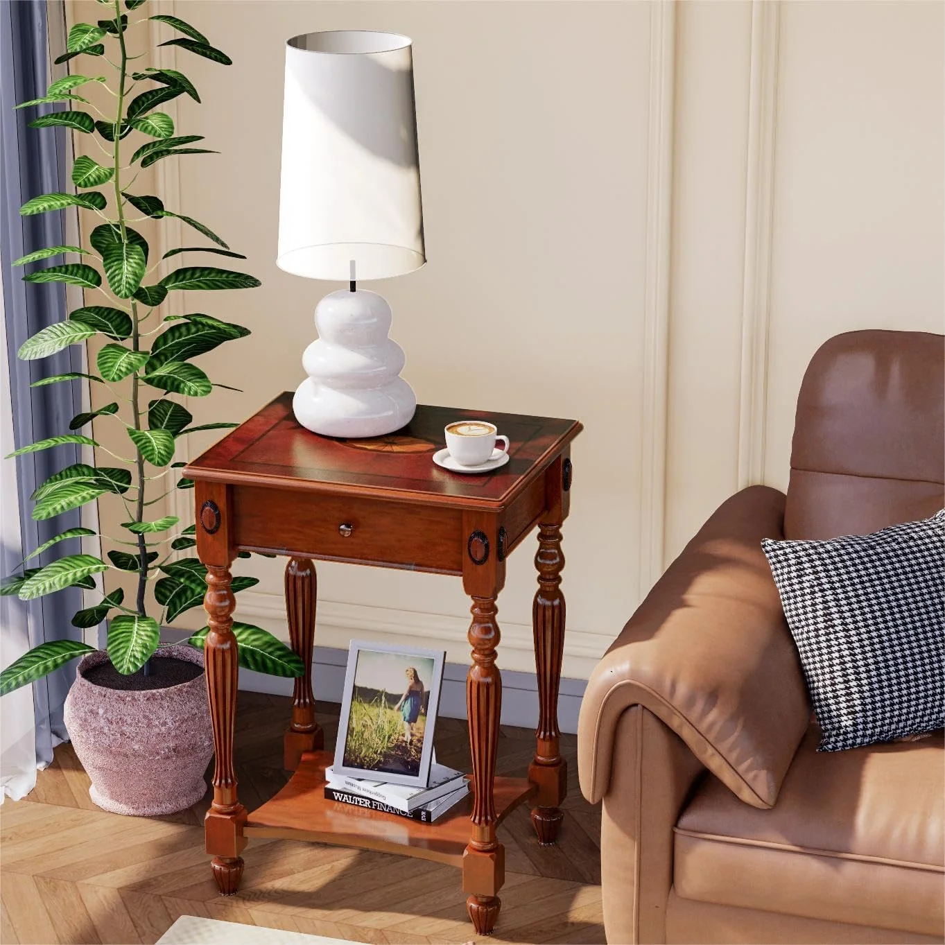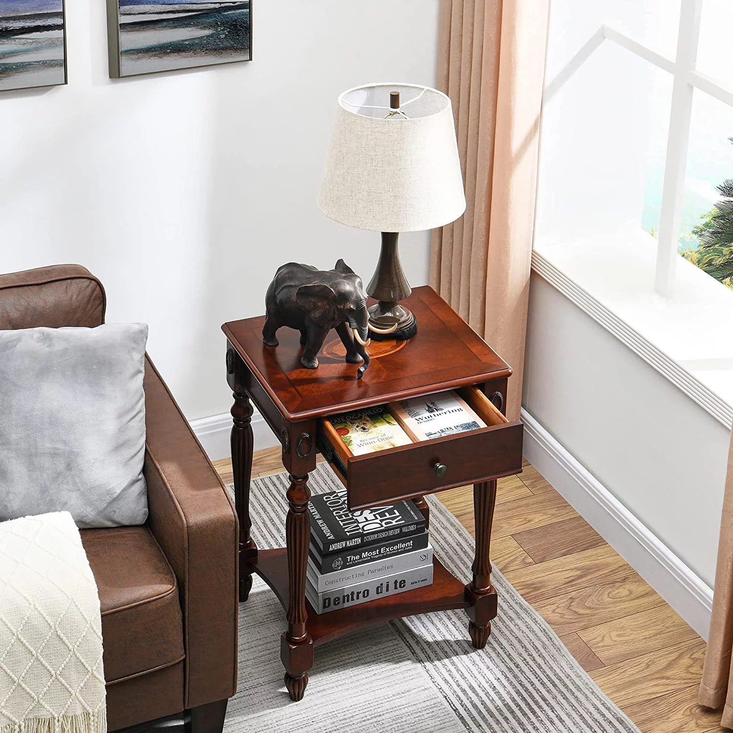 RUNFAYBIU Solid Wood End Tables Living Room Accent with Drawer and Tall Nightstands Bedside Tables for Bedroom 19.7"x 15.7"x 27.6" Cherry Walnut GBJ-1533-WD