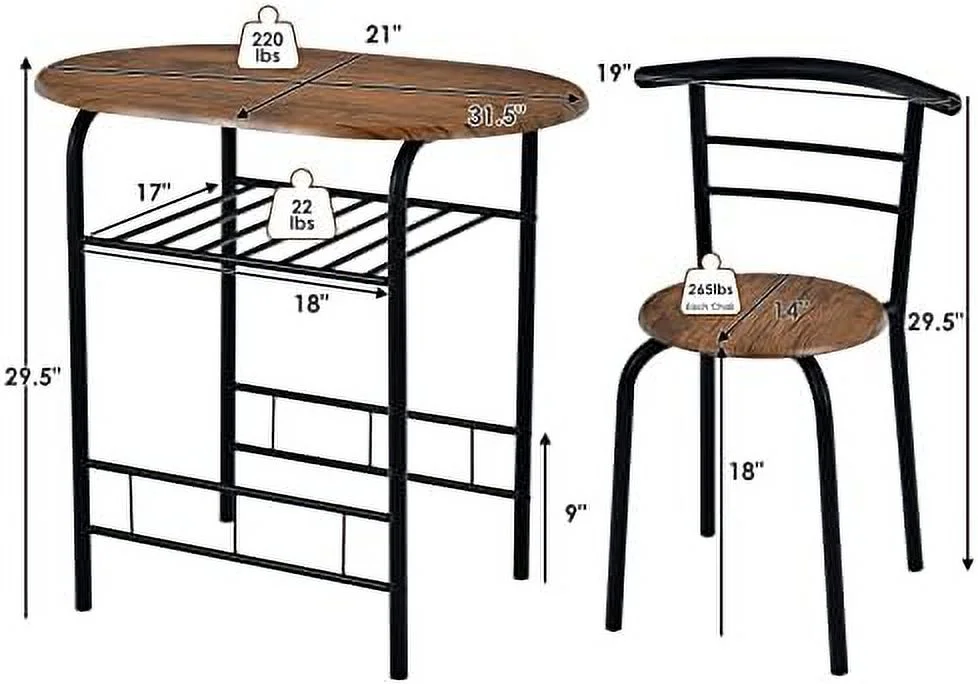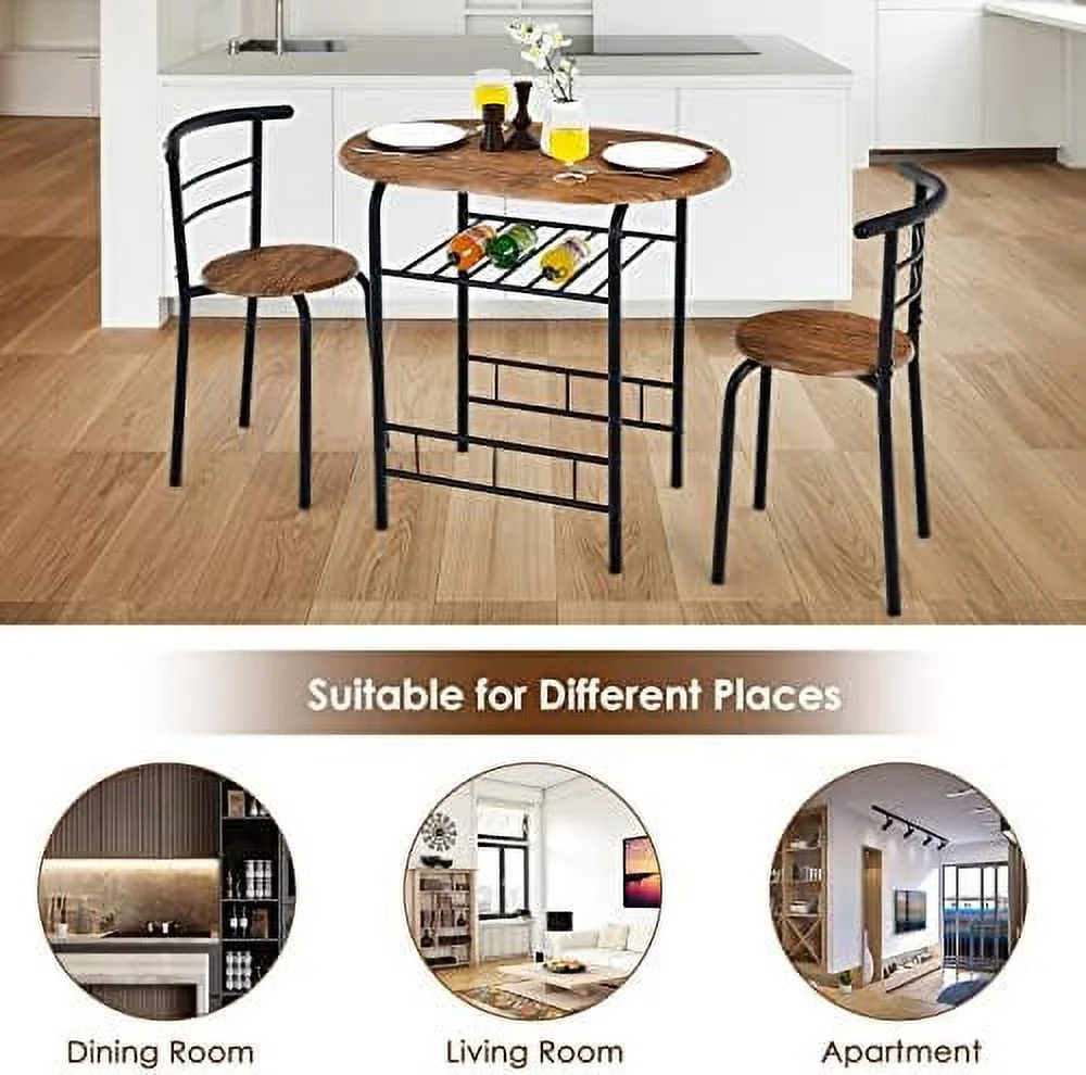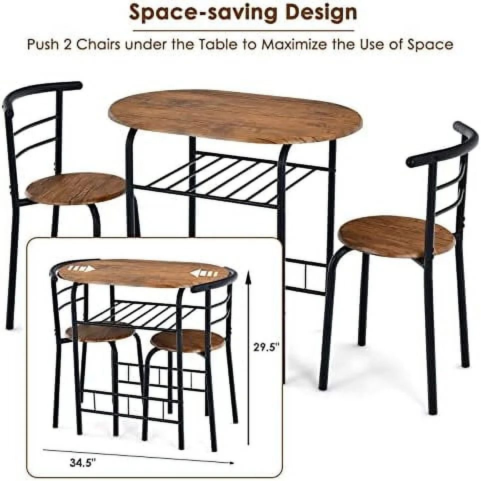NLIBOOMLife 3 Piece Dining Set Compact 2 Chairs and Table Set with Metal Frame and Bistro Pub Breakfast Space Saving for Apartment and Kitchen (Natural & Black)