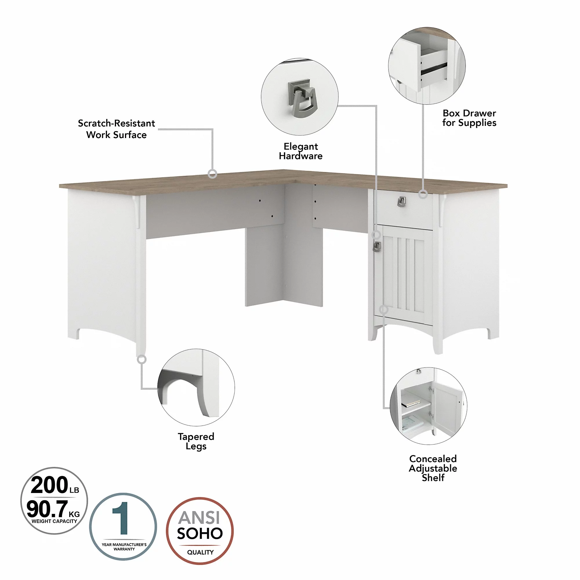 Bush Furniture Salinas 60" L Shaped Desk with Storage, Shiplap Gray & Pure White