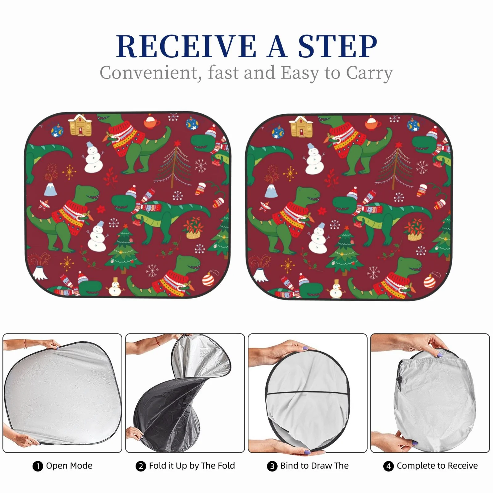 Daiia Dinosaur Christmas Happy New Year Windshield Sun Shade 2 Pack Foldable Car Front Window Sunshade For Most Sedans Suv Truck Auto Sun Blocker Visor Protector Blocks Max Uv Rays