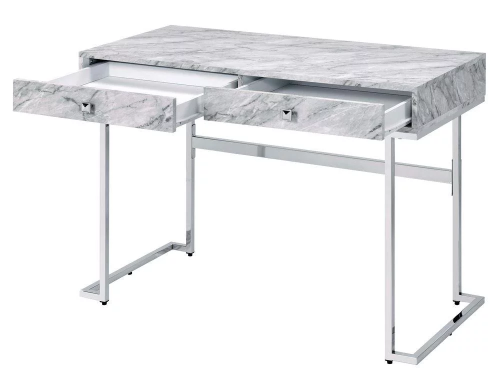 Modern White Printed Faux Marble Home Office Set by Acme 92615-4pcs Tigress