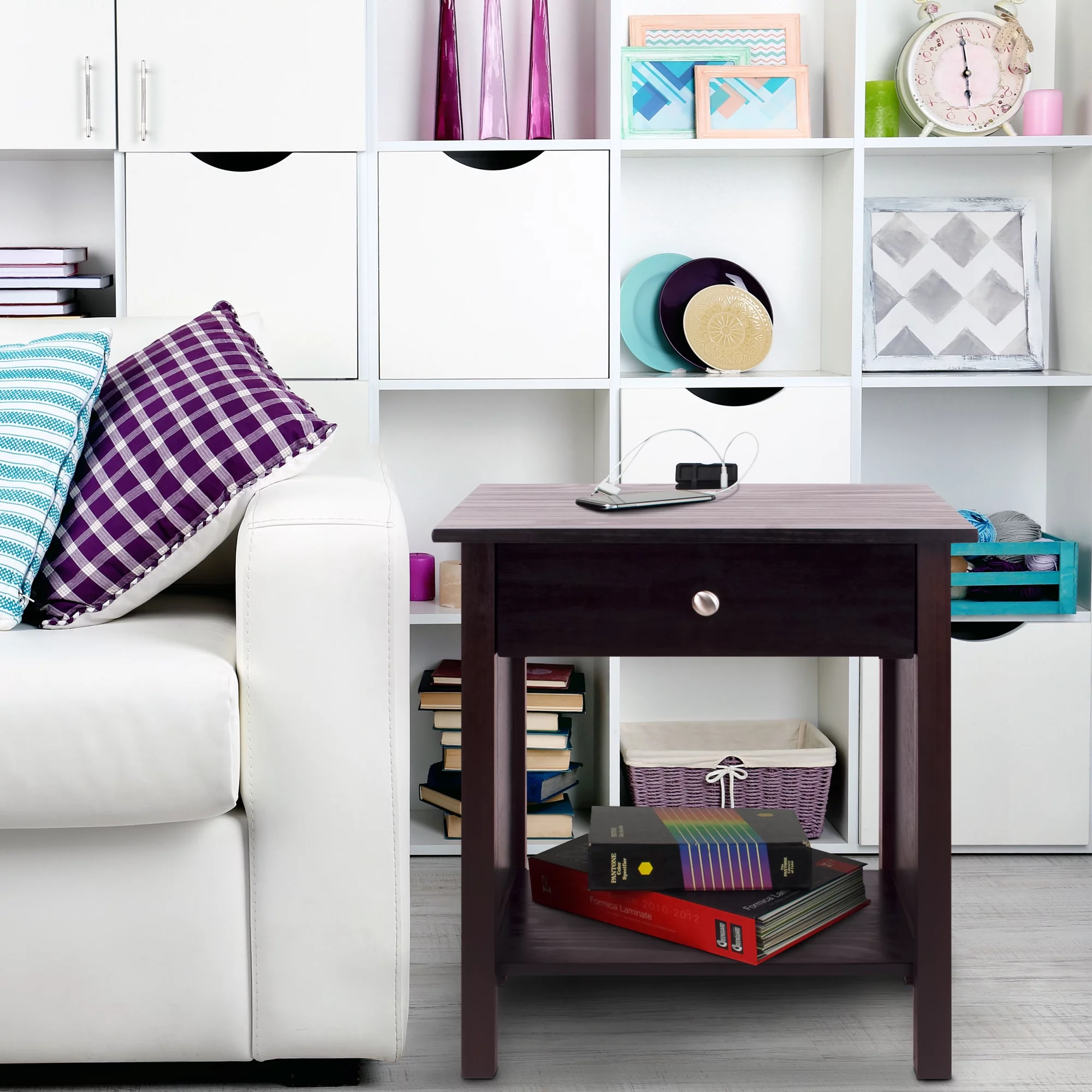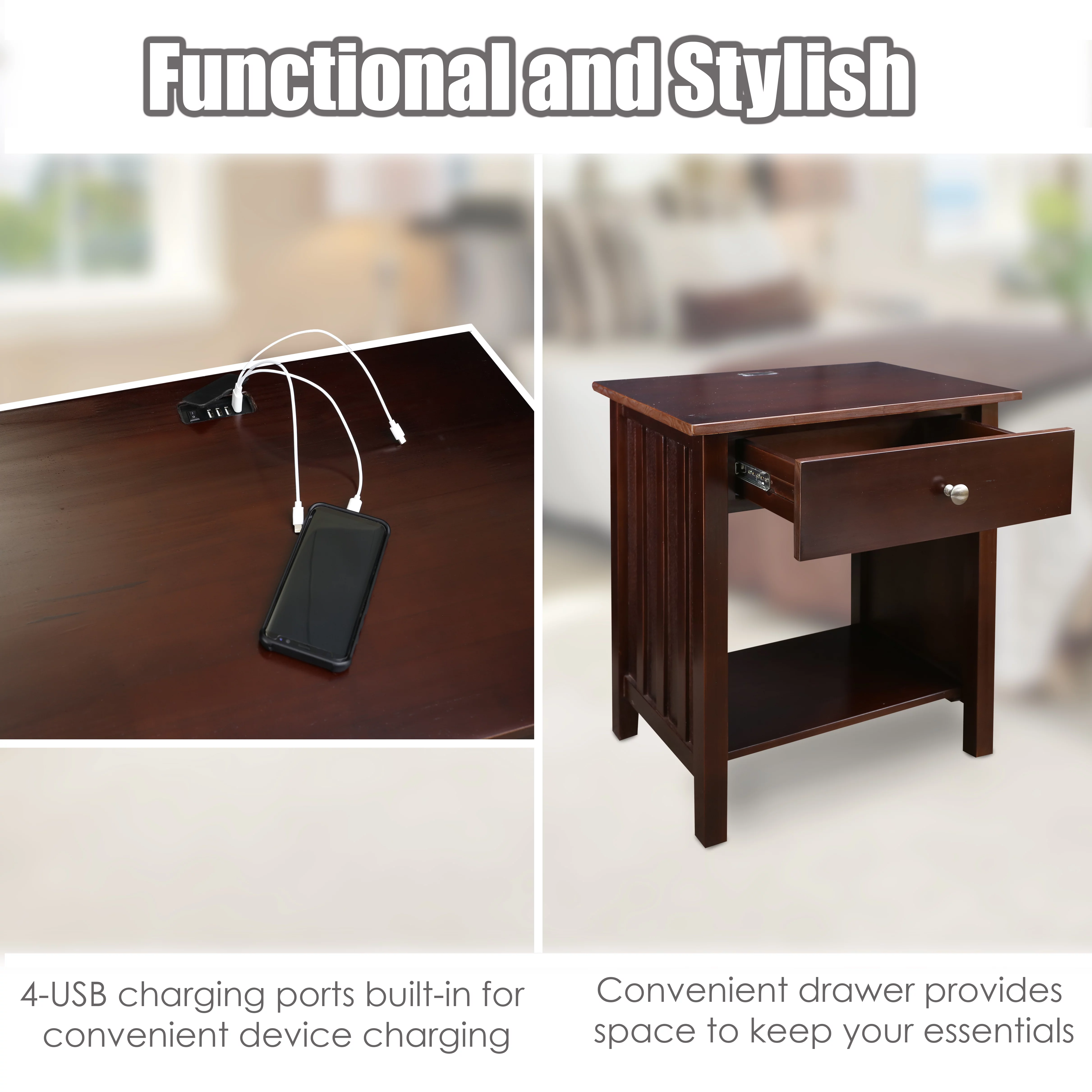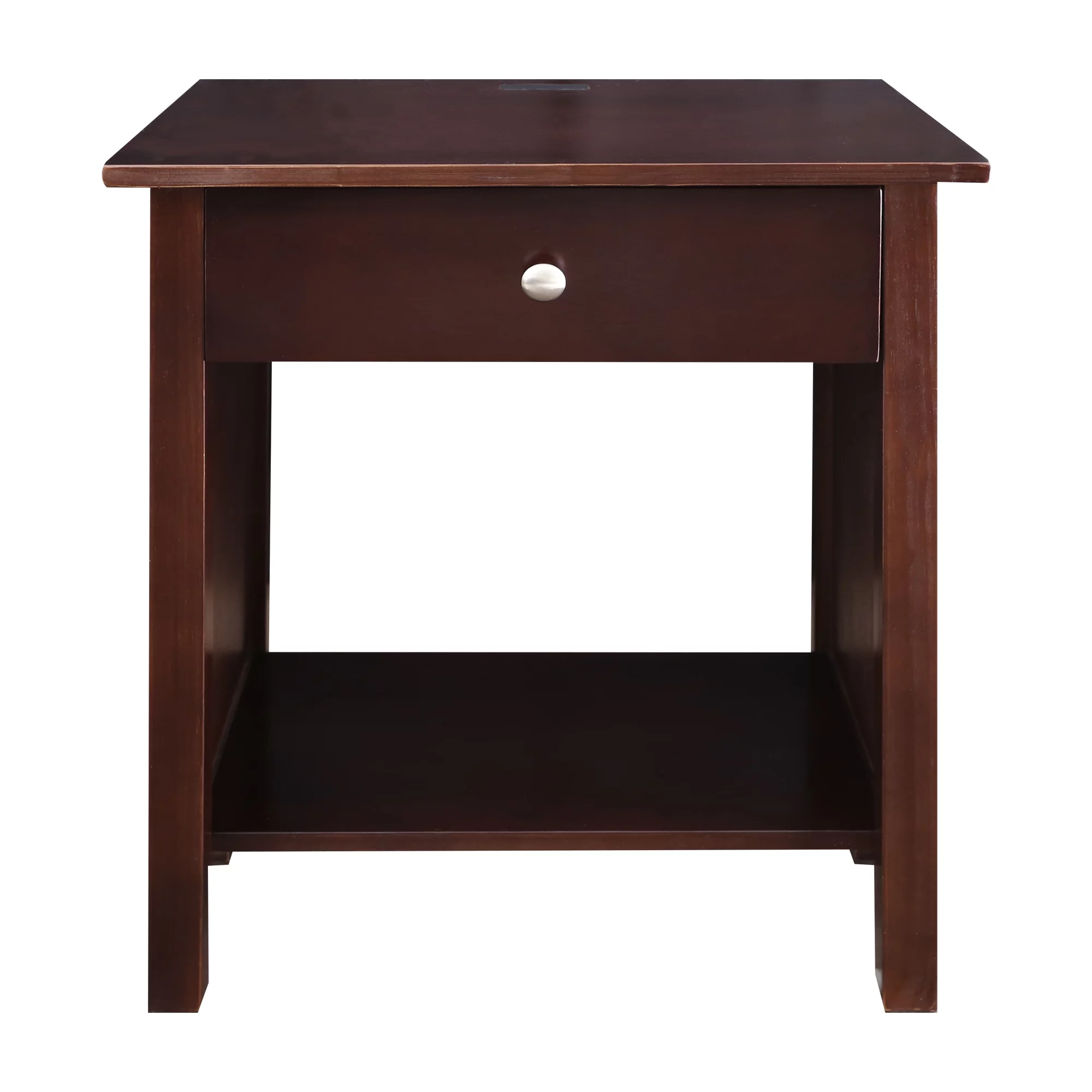 Casual Home 27"H Wooden Nightstand with USB ports and One Drawer, Espresso