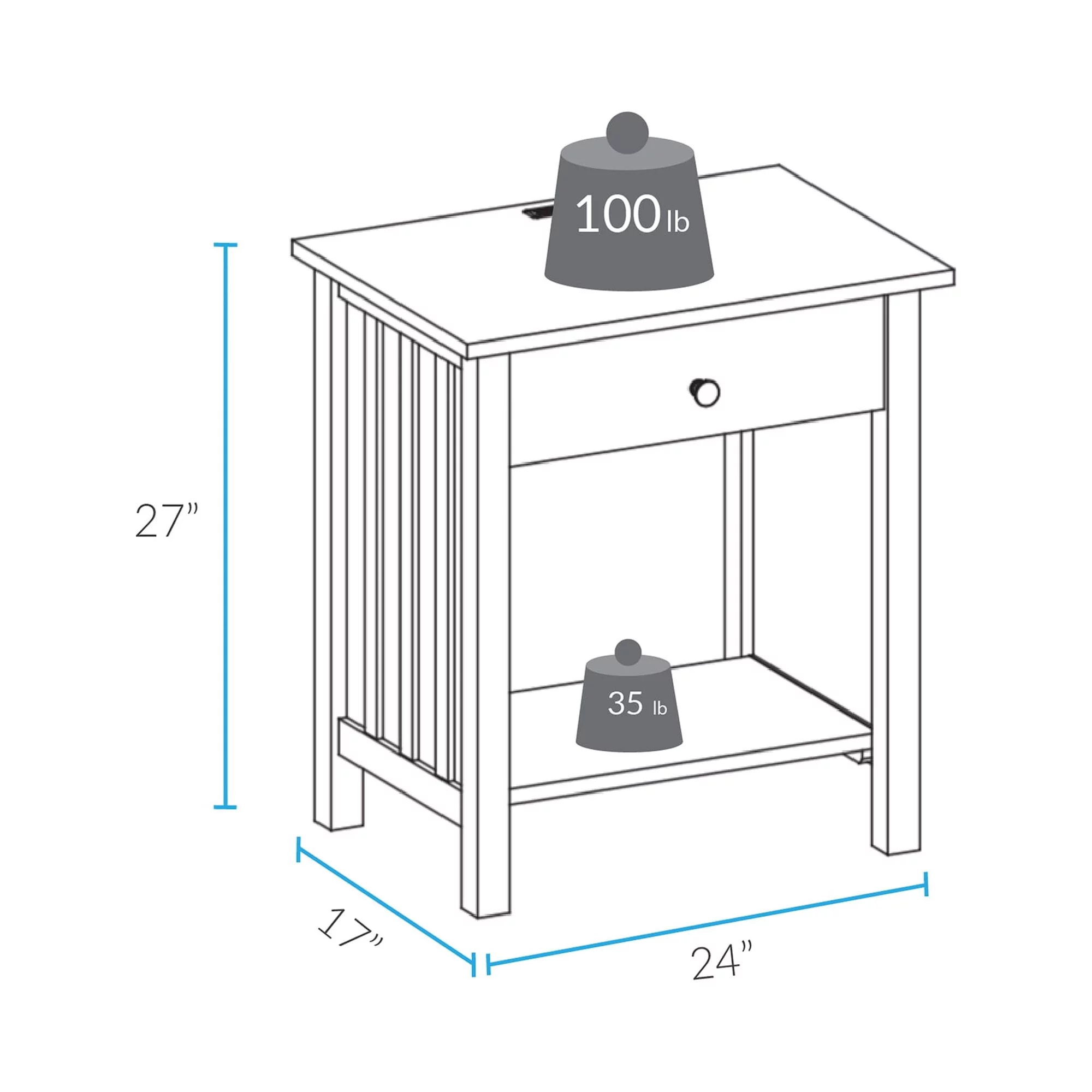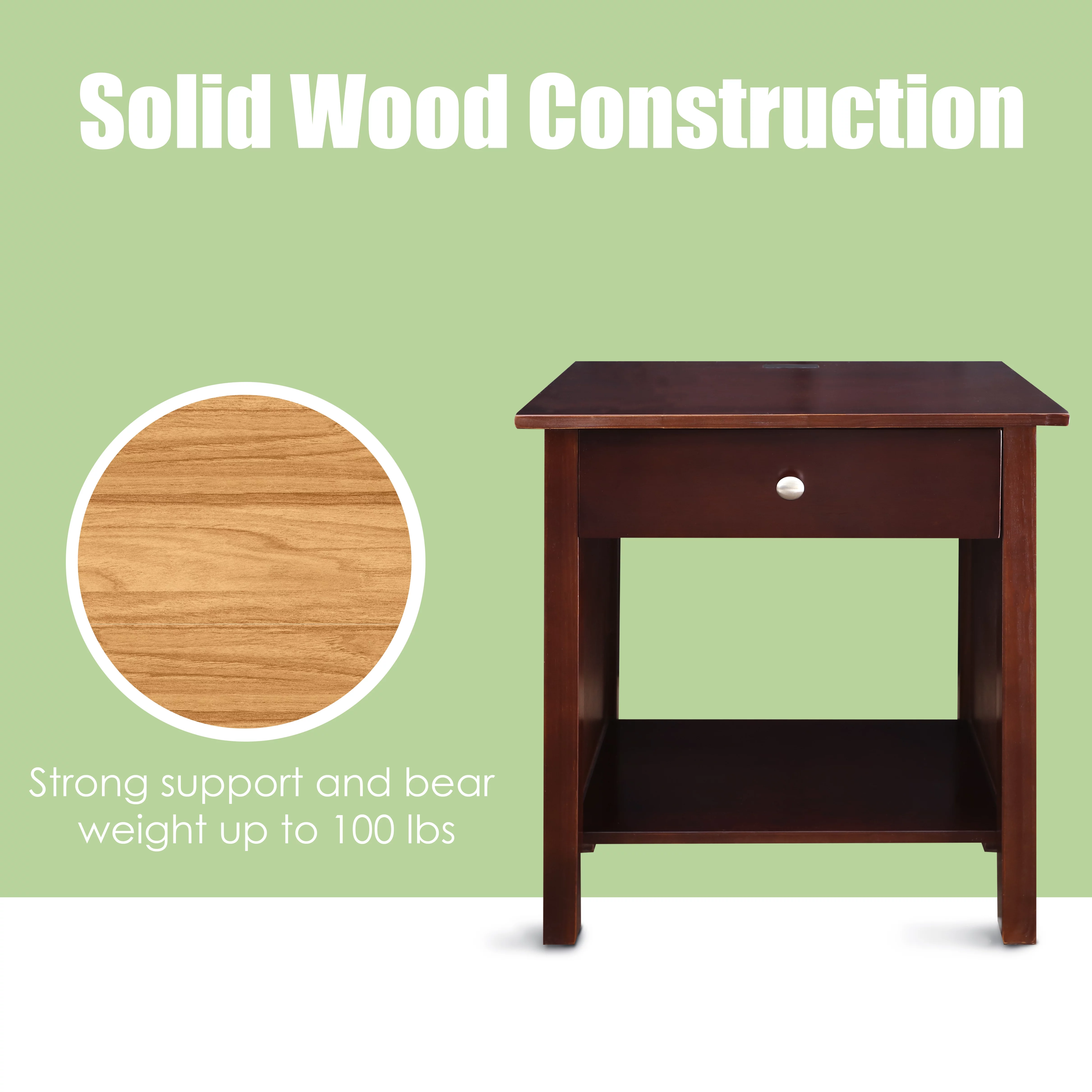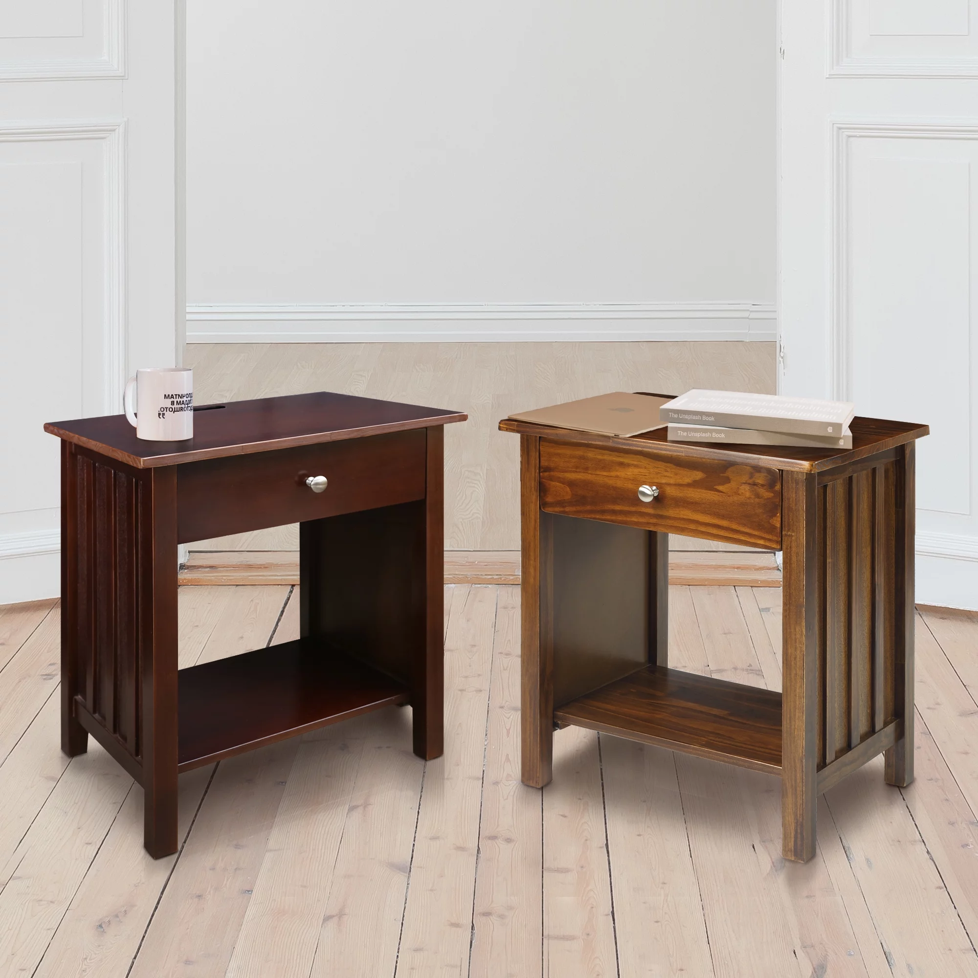 Casual Home 27"H Wooden Nightstand with USB ports and One Drawer, Espresso