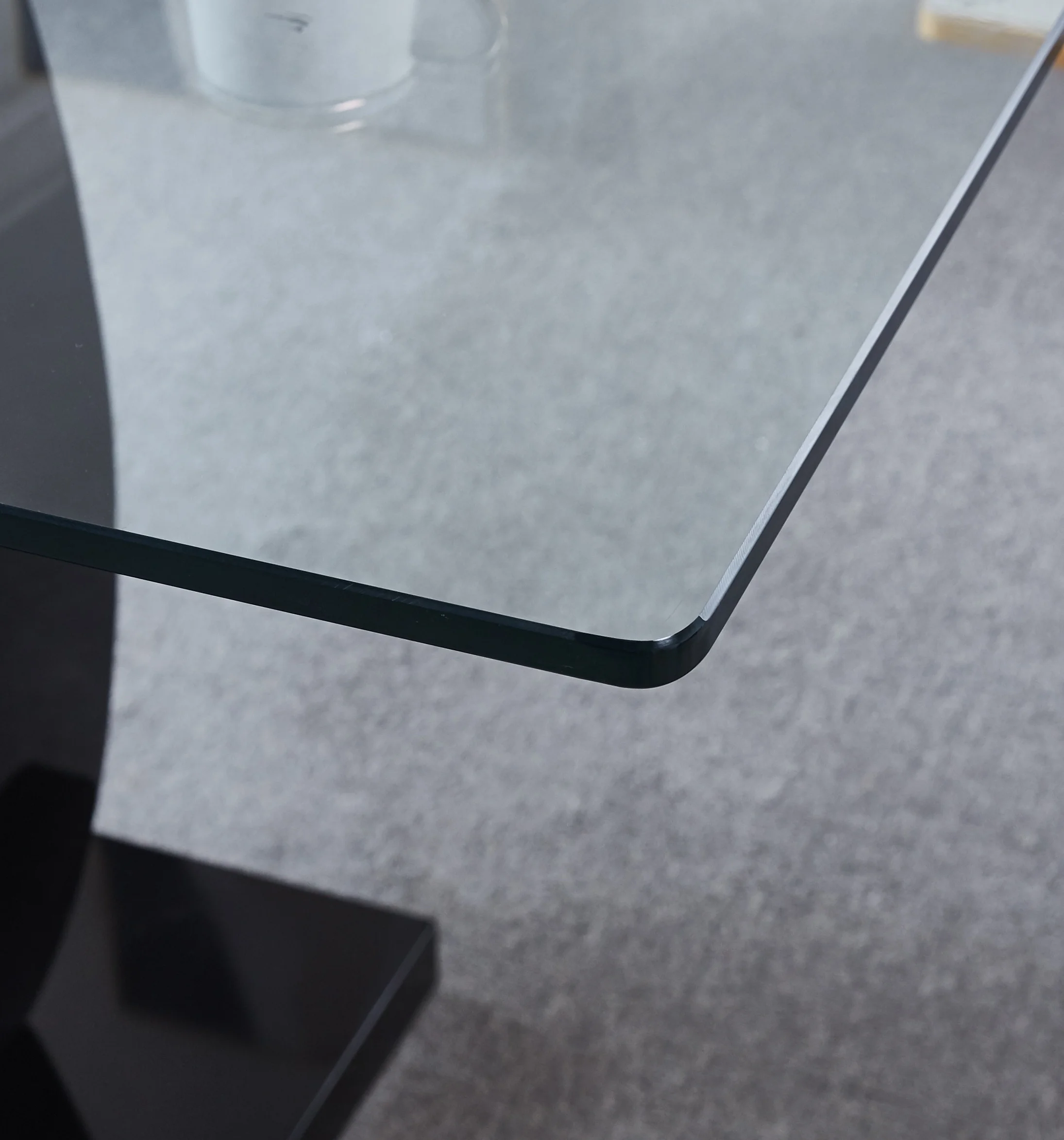 MAICOSY Contemporary Tempered Glass Top Double Pedestal Dining Table - Black