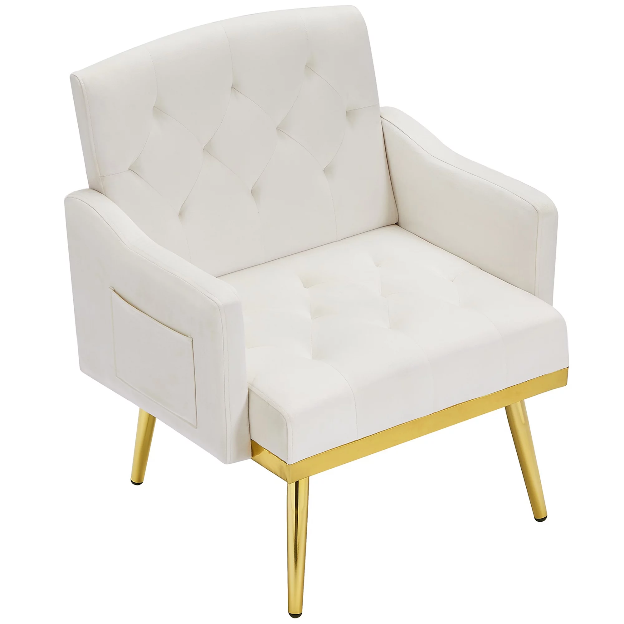 SYNGAR Accent Chair for Living Room, Bedroom Comfy Reading Armchair, Mid Century Modern Arm Chair Soft Upholstered Cozy Side Single Sofa Chair Relaxing Seating, Golden Metal Legs, White