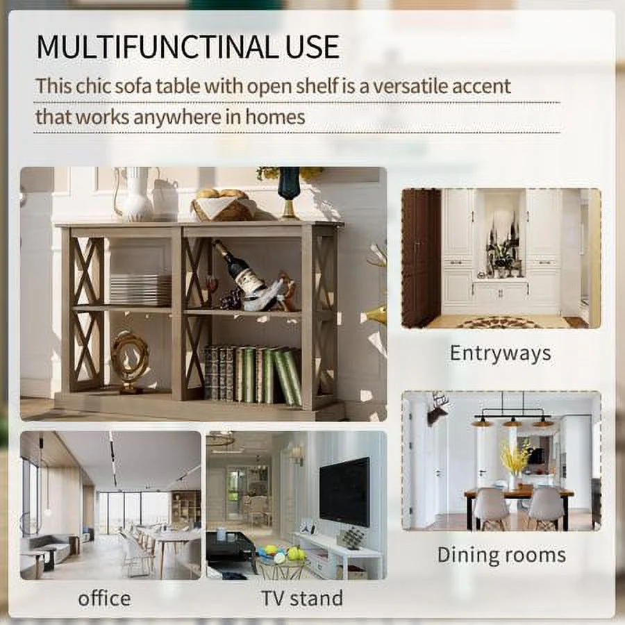 CHURANTY Console Table Sofa Table with 3-Tier Open Storage Spaces and X Legs, Wood Narrow Entry Table for Living Room, Entryway and Hallway,White washed