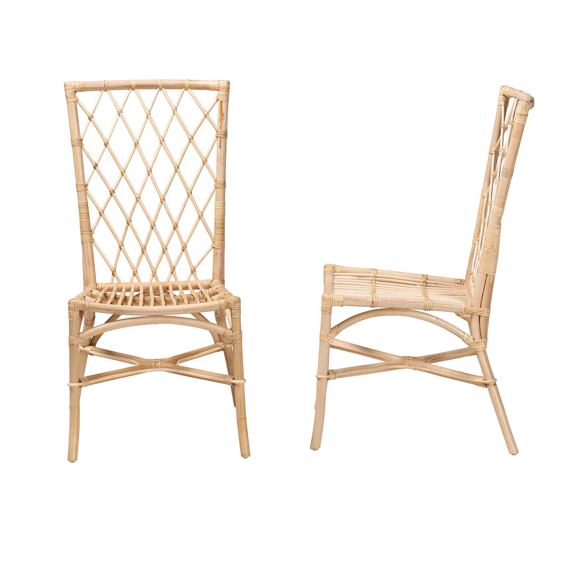 bali & pari Doria Modern Bohemian Natural Brown Rattan 2-Piece Dining Chair Set