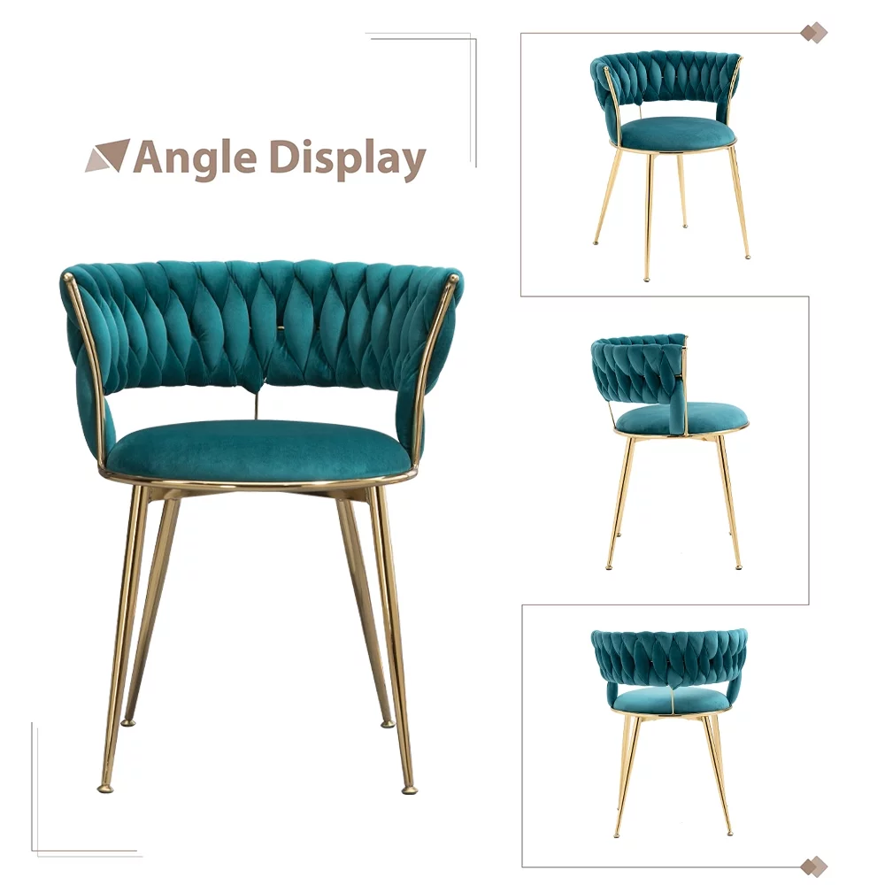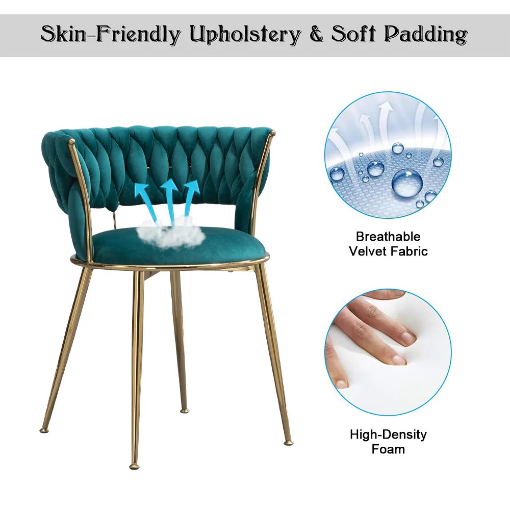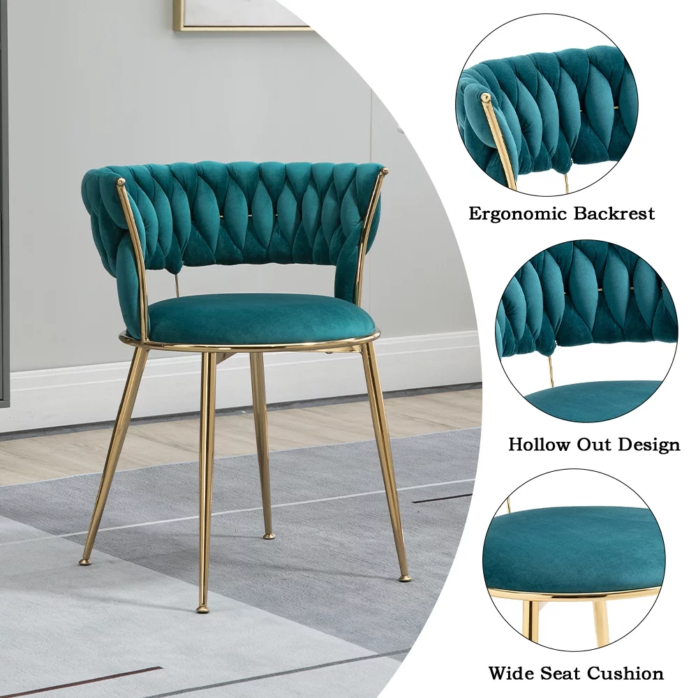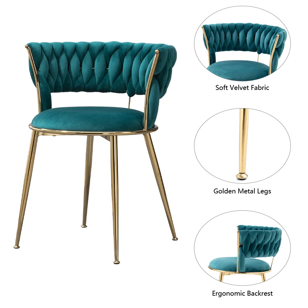 WEPSEN Chairs Set of 4, Velvet Dining Chairs, Small Chairs with Golden Metal Legs, Modern Simple Kitchen Dining Chairs, 4 Piece Velvet Chairs for Home Office Living Room Kitchen Dining Room, Teal