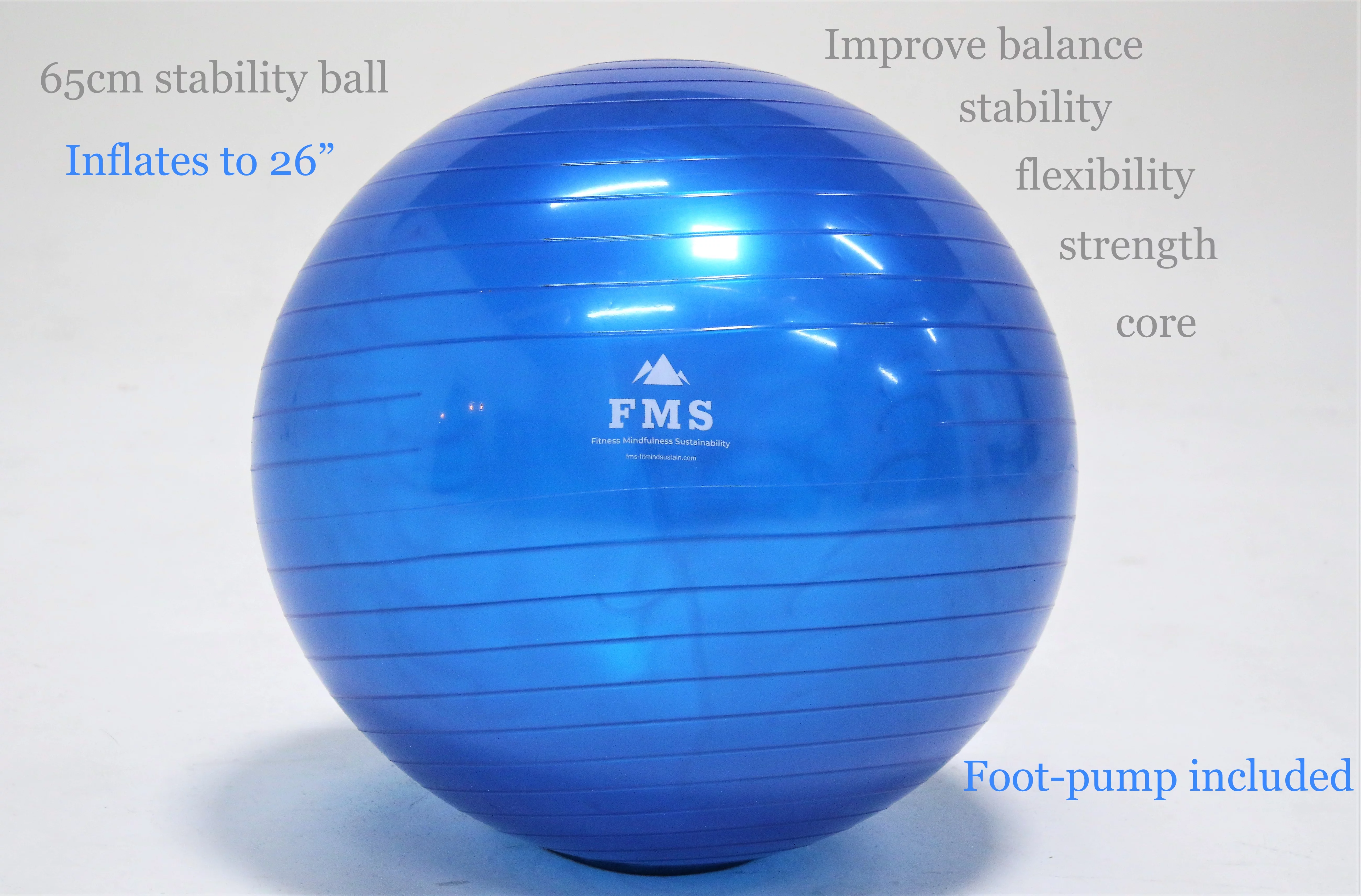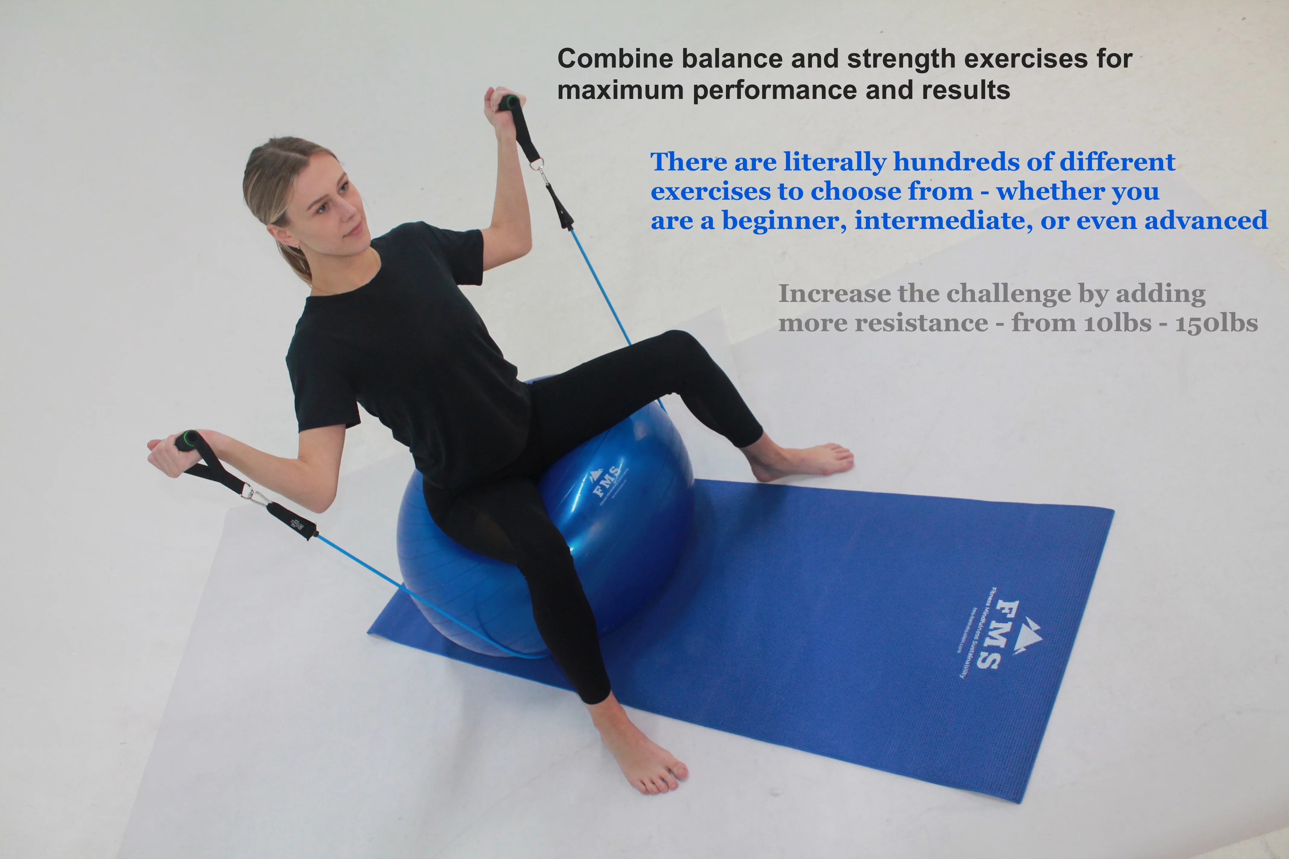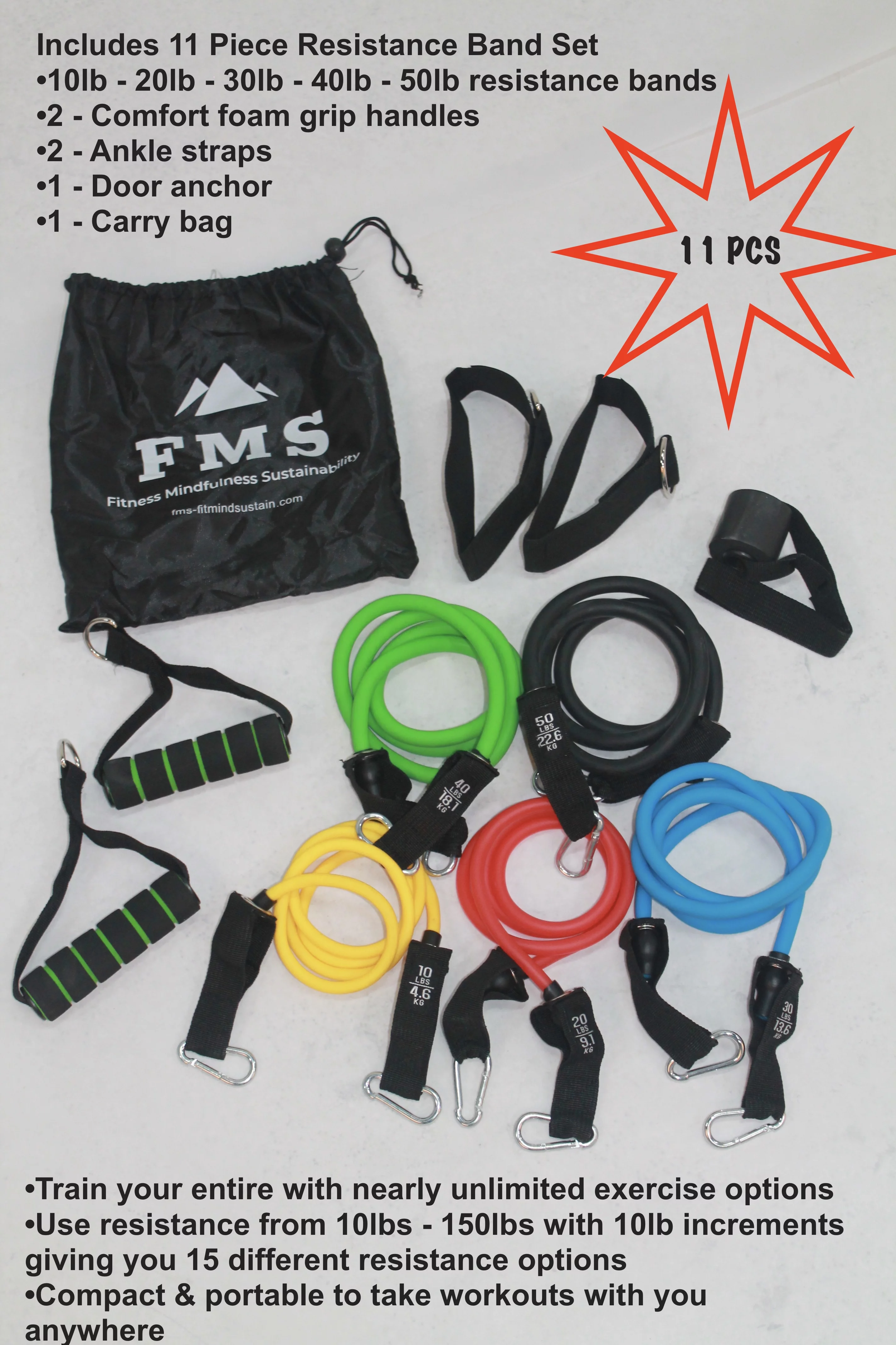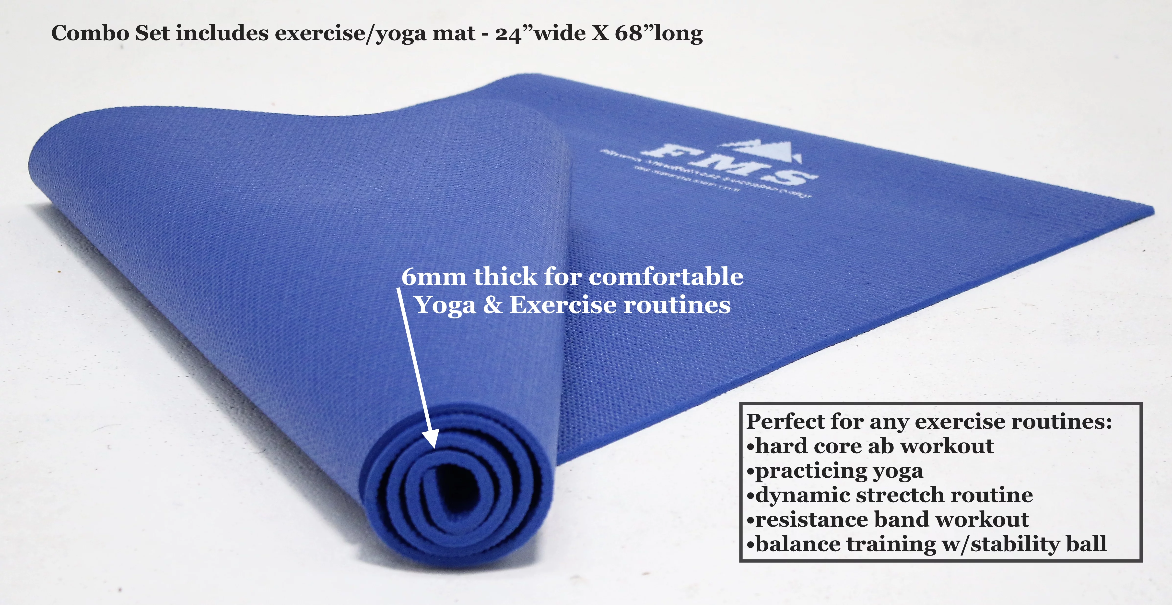 FIMISU Portable Home Gym Set - Includes - 11pc Resistance Band Set, 65cm Stability Ball, & 24" X 68" Exercise Mat