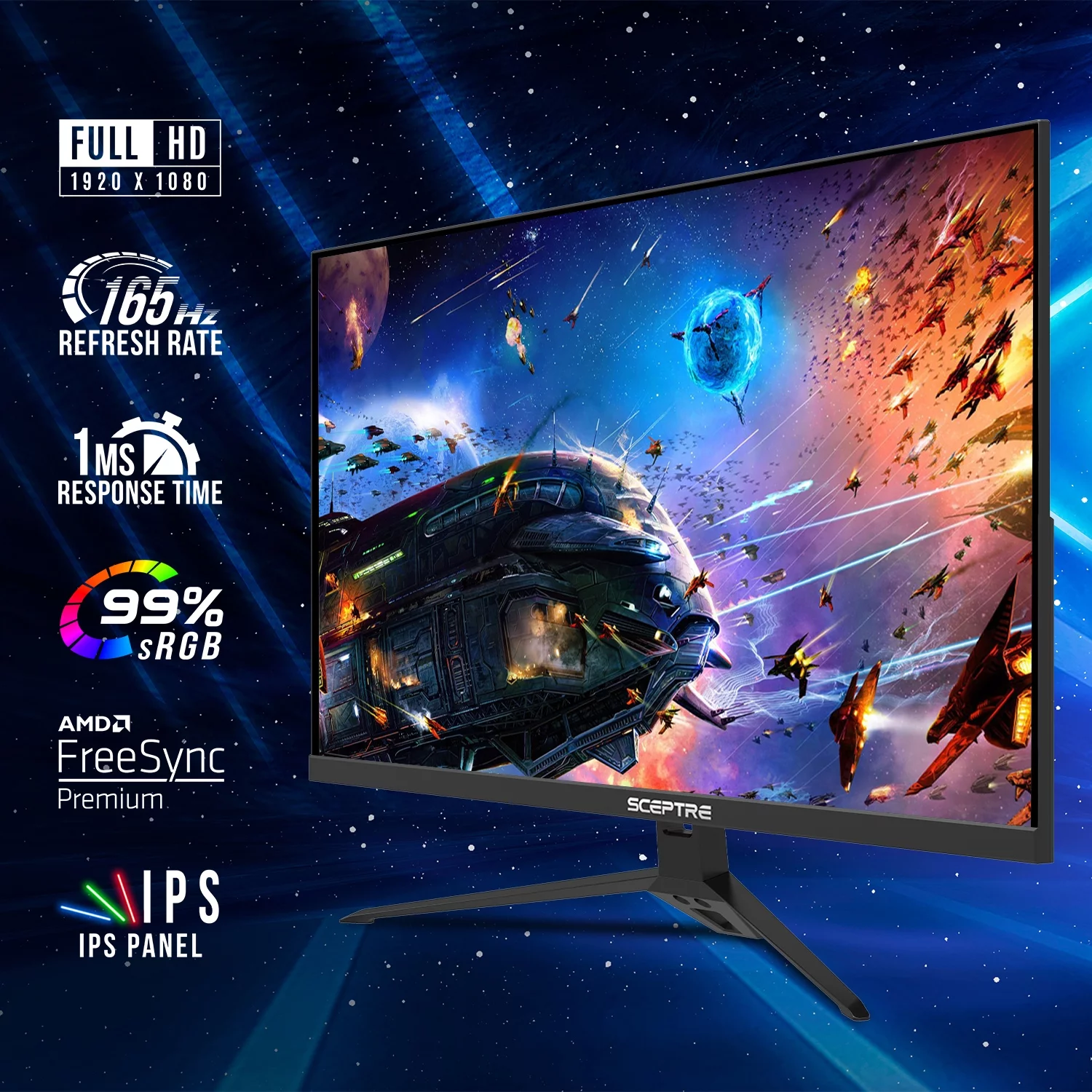 Sceptre 27-inch IPS Gaming Monitor up to 165Hz DisplayPort HDMI 300 Lux 99% sRGB Build-in Speakers, Machine Black (E278B-FPT168)