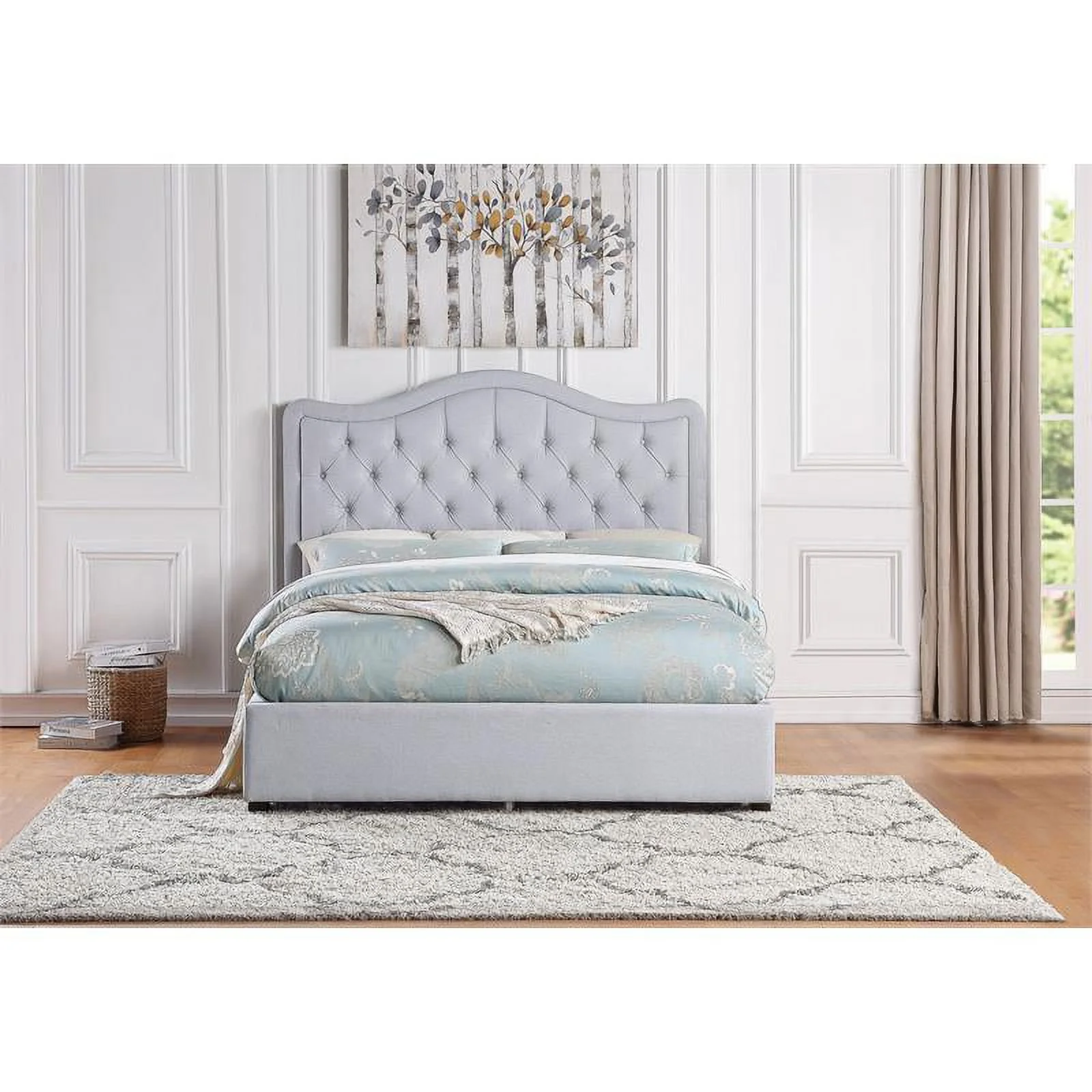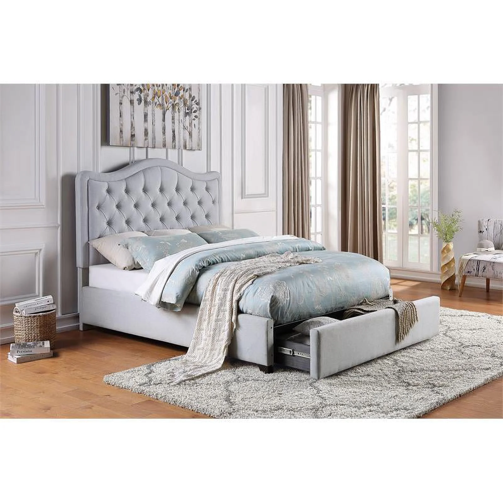 Pemberly Row Fabric Eastern King Platform Bed with Storage Drawer in Gray