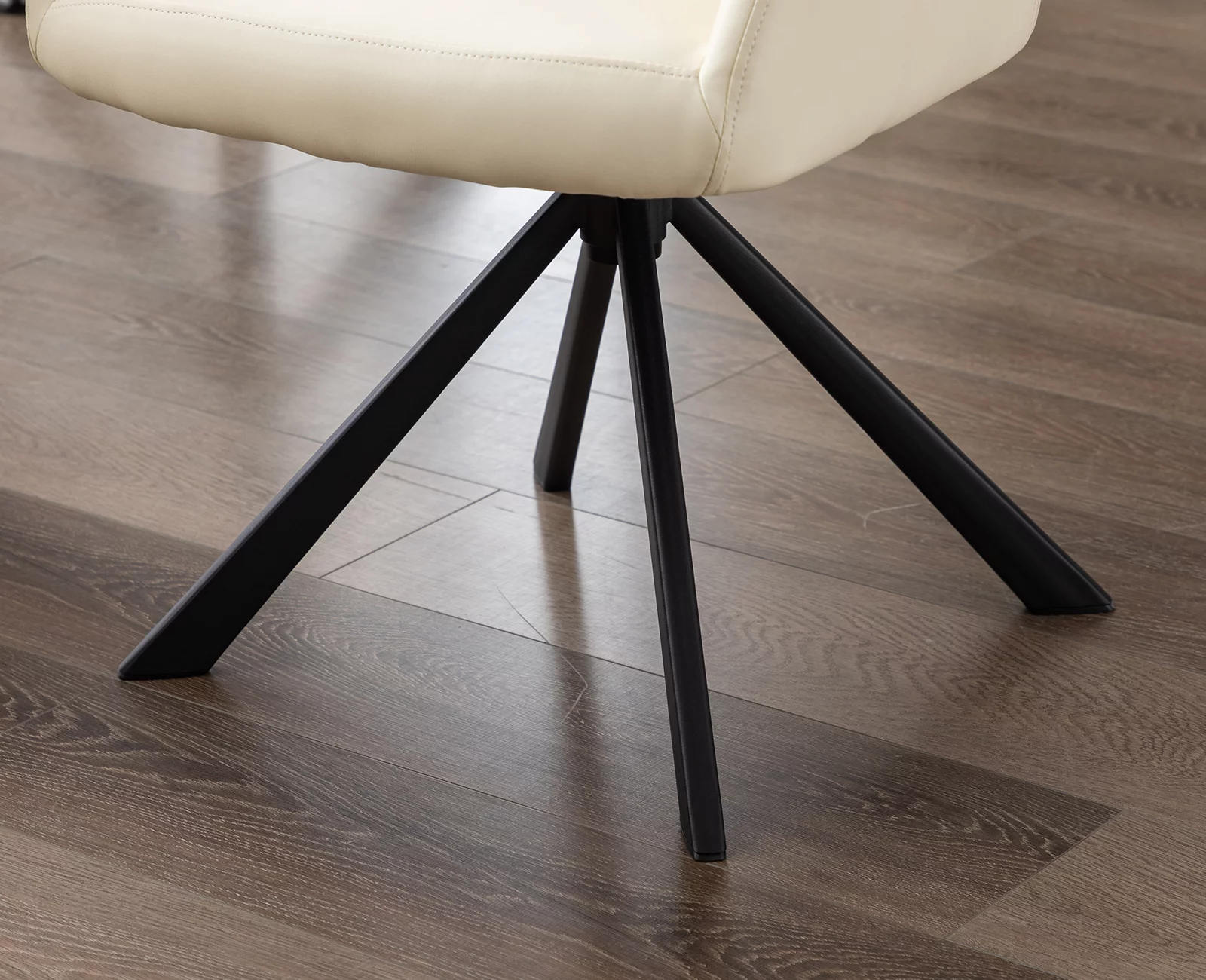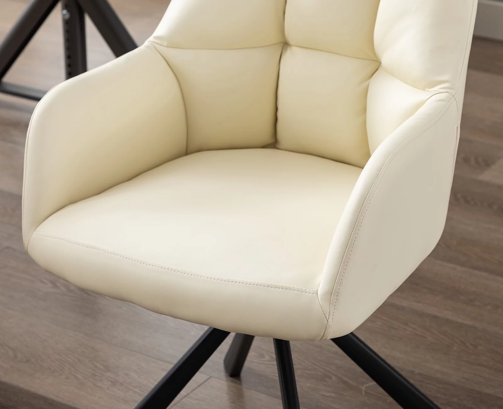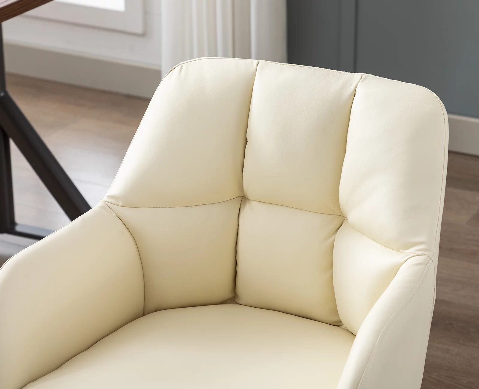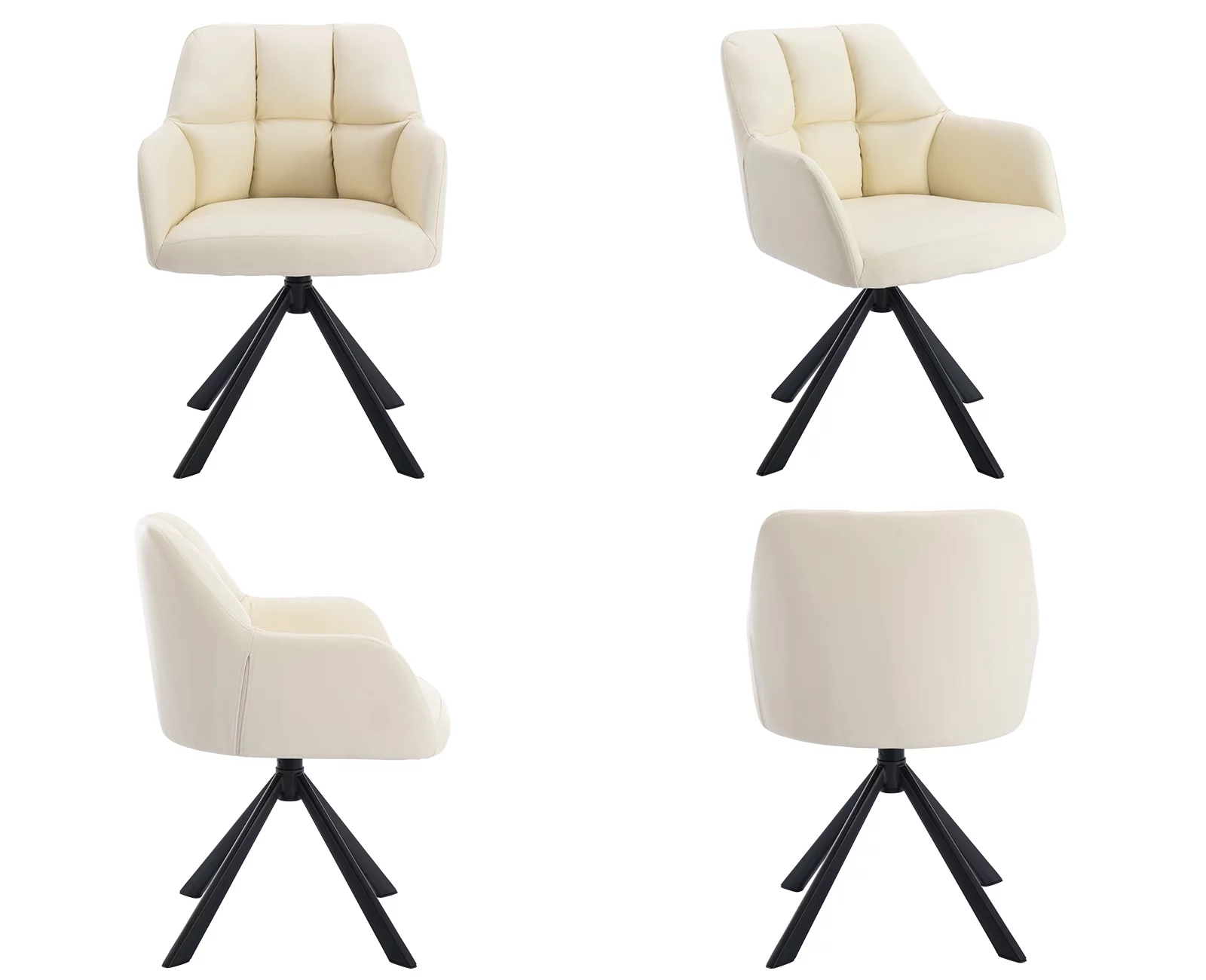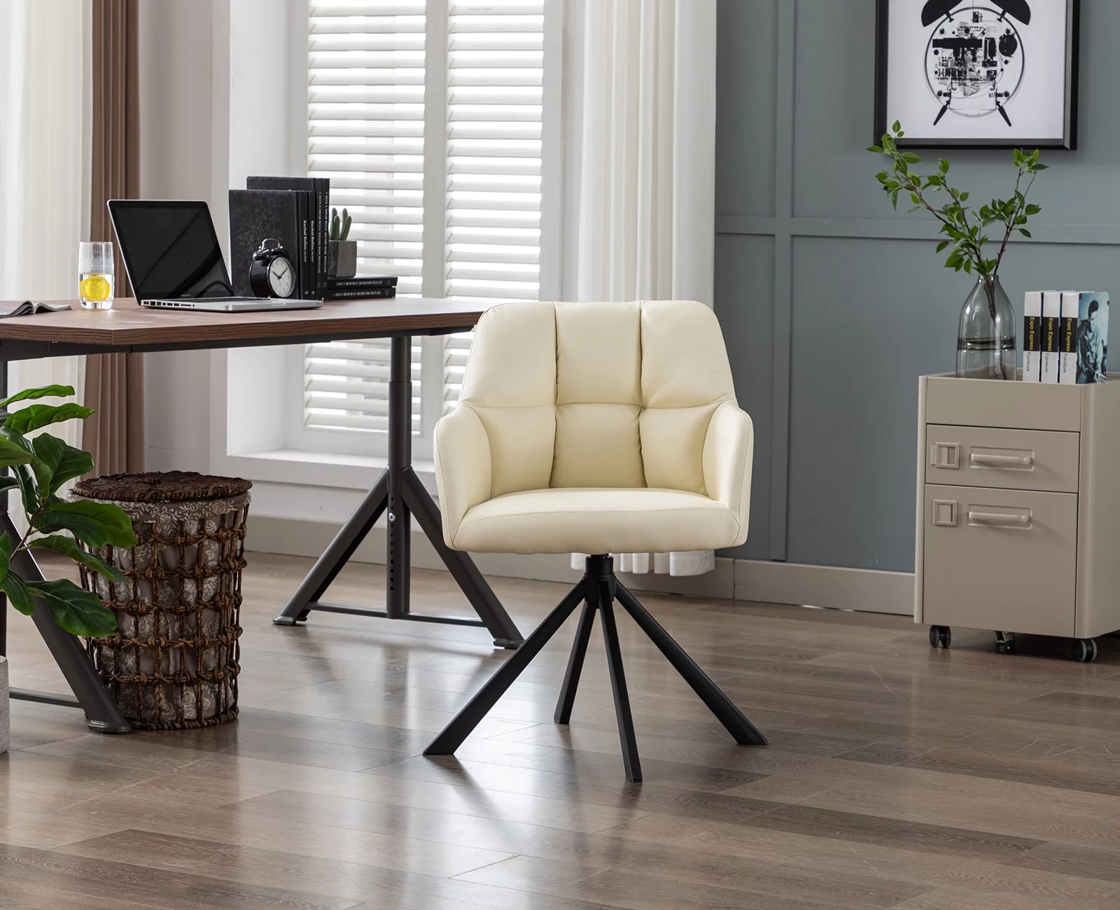 Guyou Modern Swivel Office Chair No Wheels, PU Leather Upholstered Desk Chair Armchair with Black Metal Legs for Living Room Bedroom Home Office, Beige