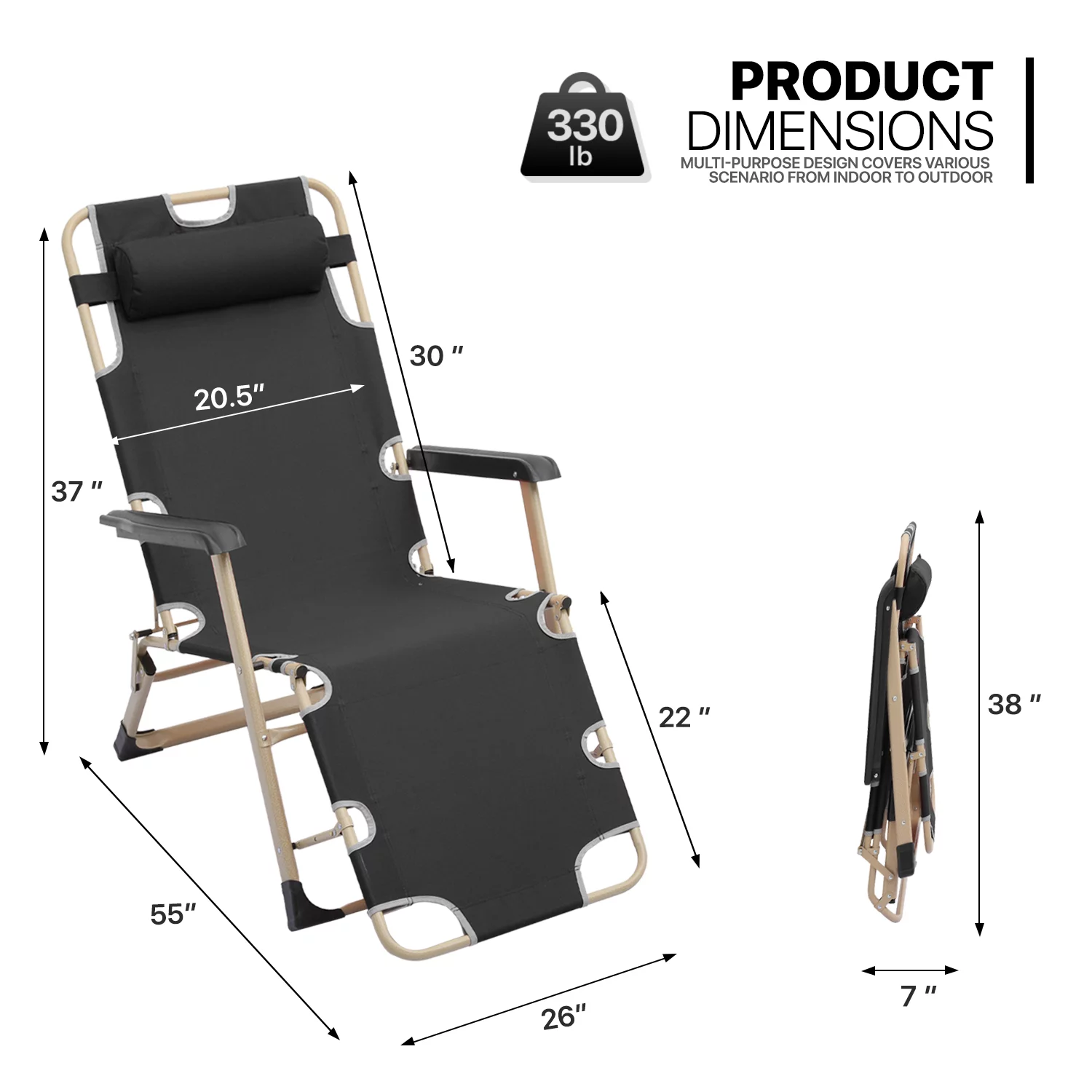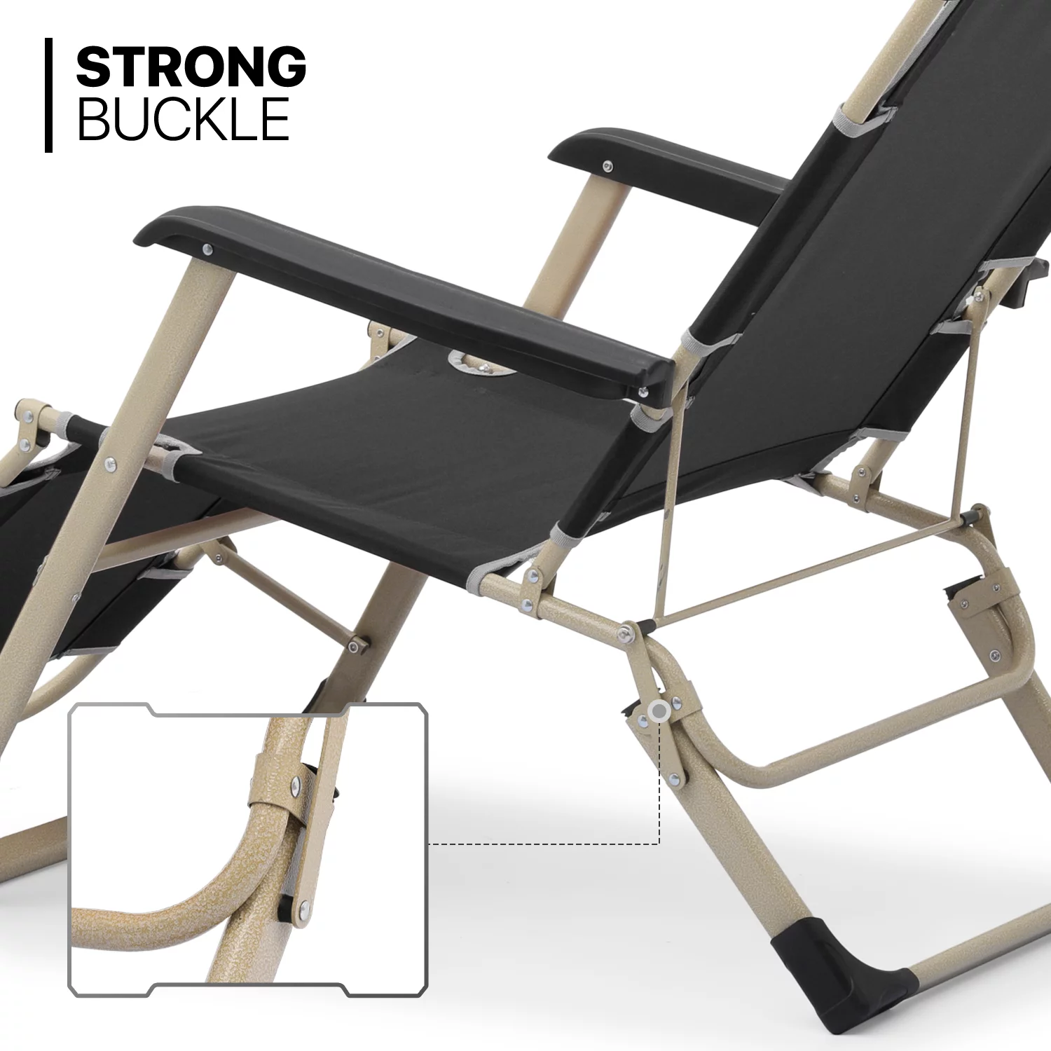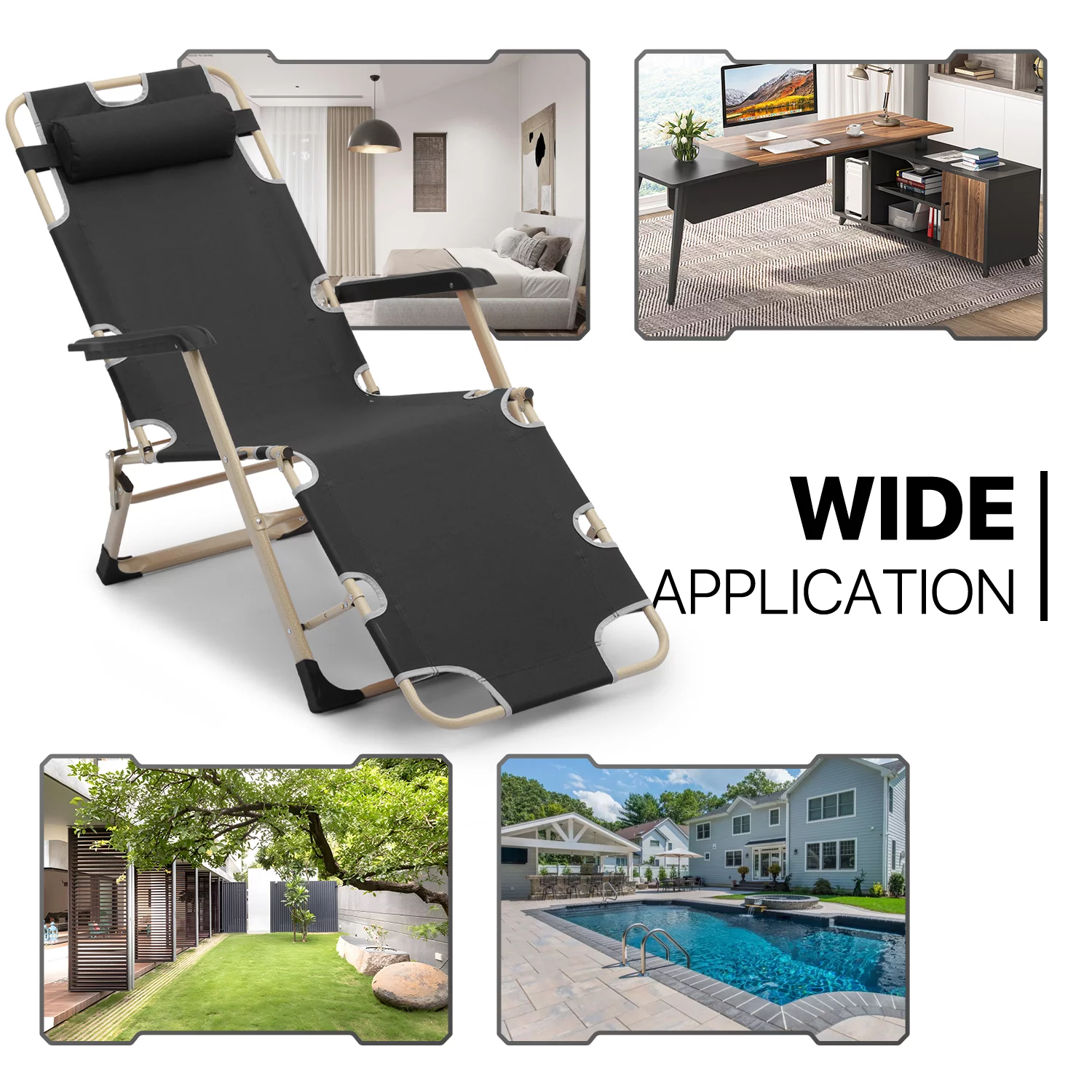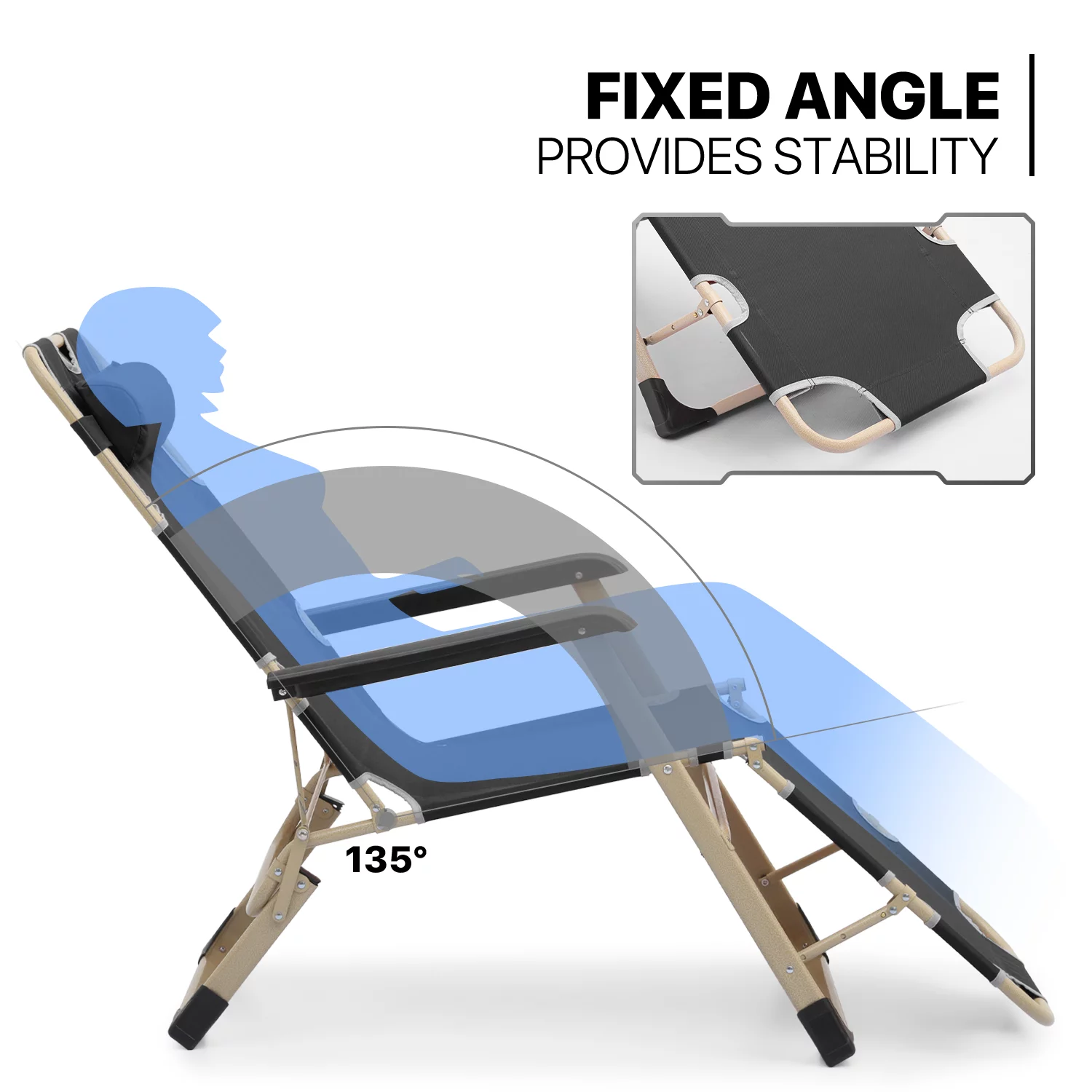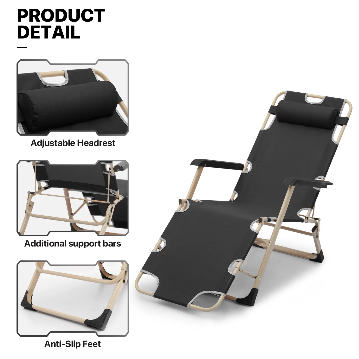MoNiBloom Set of 2 Folding Lounge Chair with Adjustable Headrest, Outdoor Foldable Recliner, Portable Reclining Lounger for Adults, Support 330lbs, Black