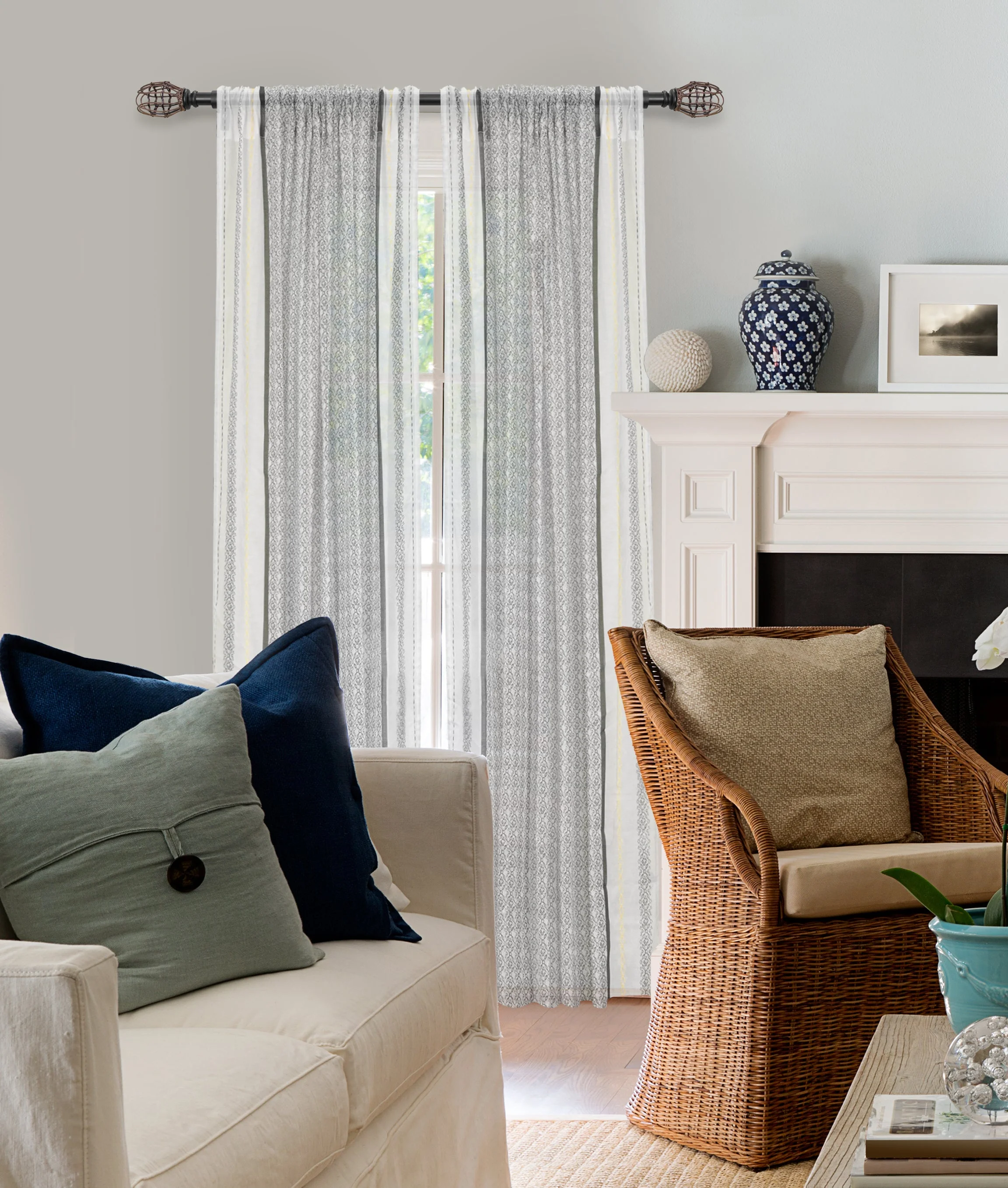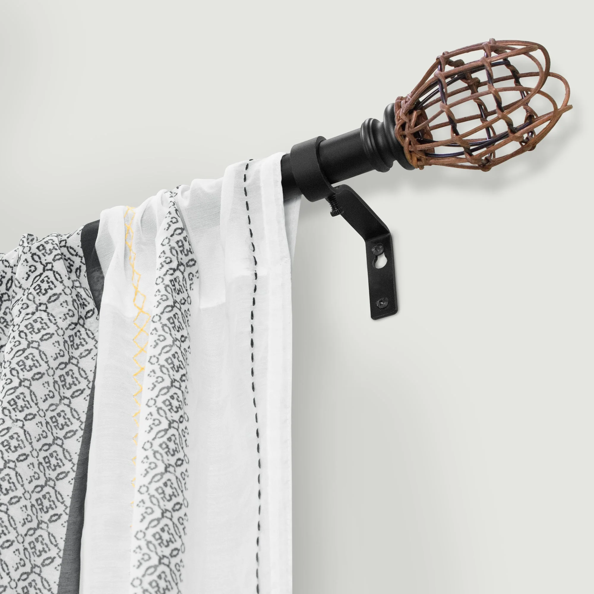 66"-120" 7/8" dia. Drapery Single Curtain Rod Set with Rattan Tulip _Matte Black