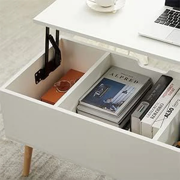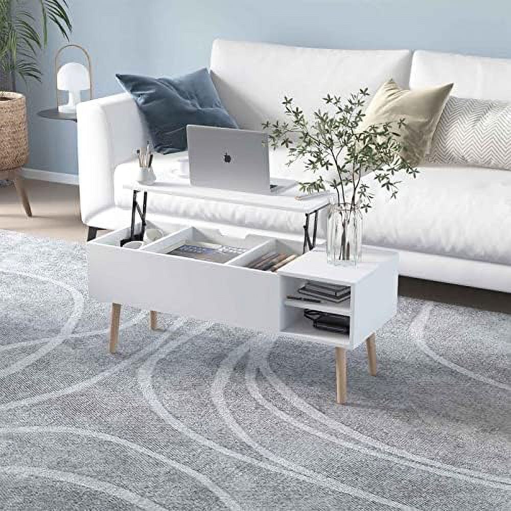 TJUNBOLIFE 43" Lift Top Coffee Table for Living Room Wooden Center Coffee Table with Hidden & Open Shelves Matte White