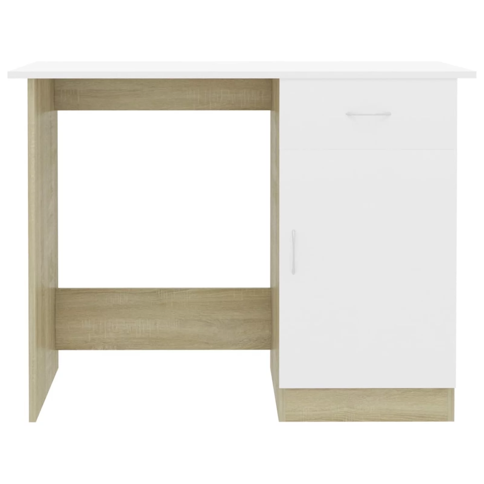 moobody Computer Desk with Storage Drawer and Door Cabinet Chipboard Writing Desk Multifuctional Workstation White and Sonoma Oak Home Office Furniture 39.4 x 19.7 x 29.9 Inches (L x W x H)