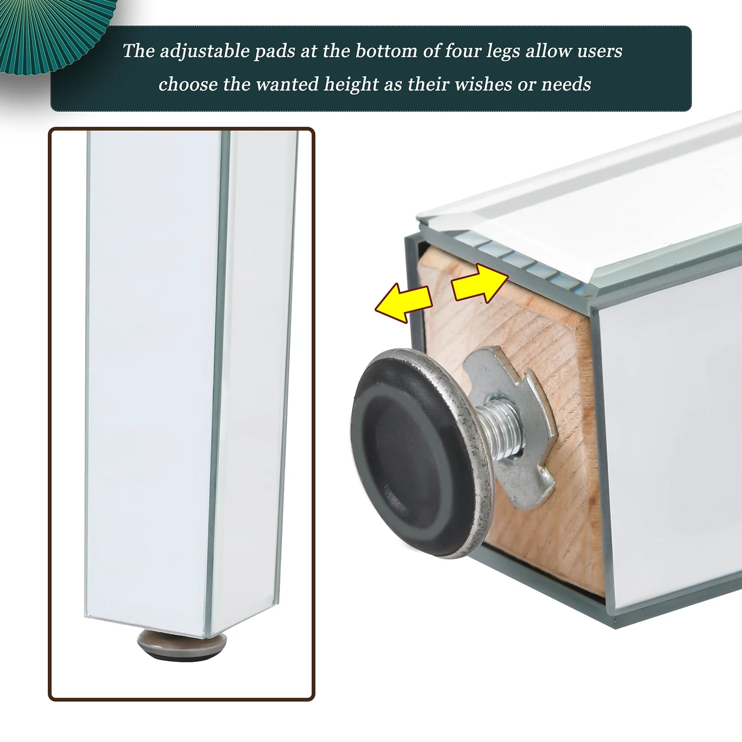 Churanty Glass Mirrored Side Table Modern Crystal Design and Adjustable Height Legs, Silver