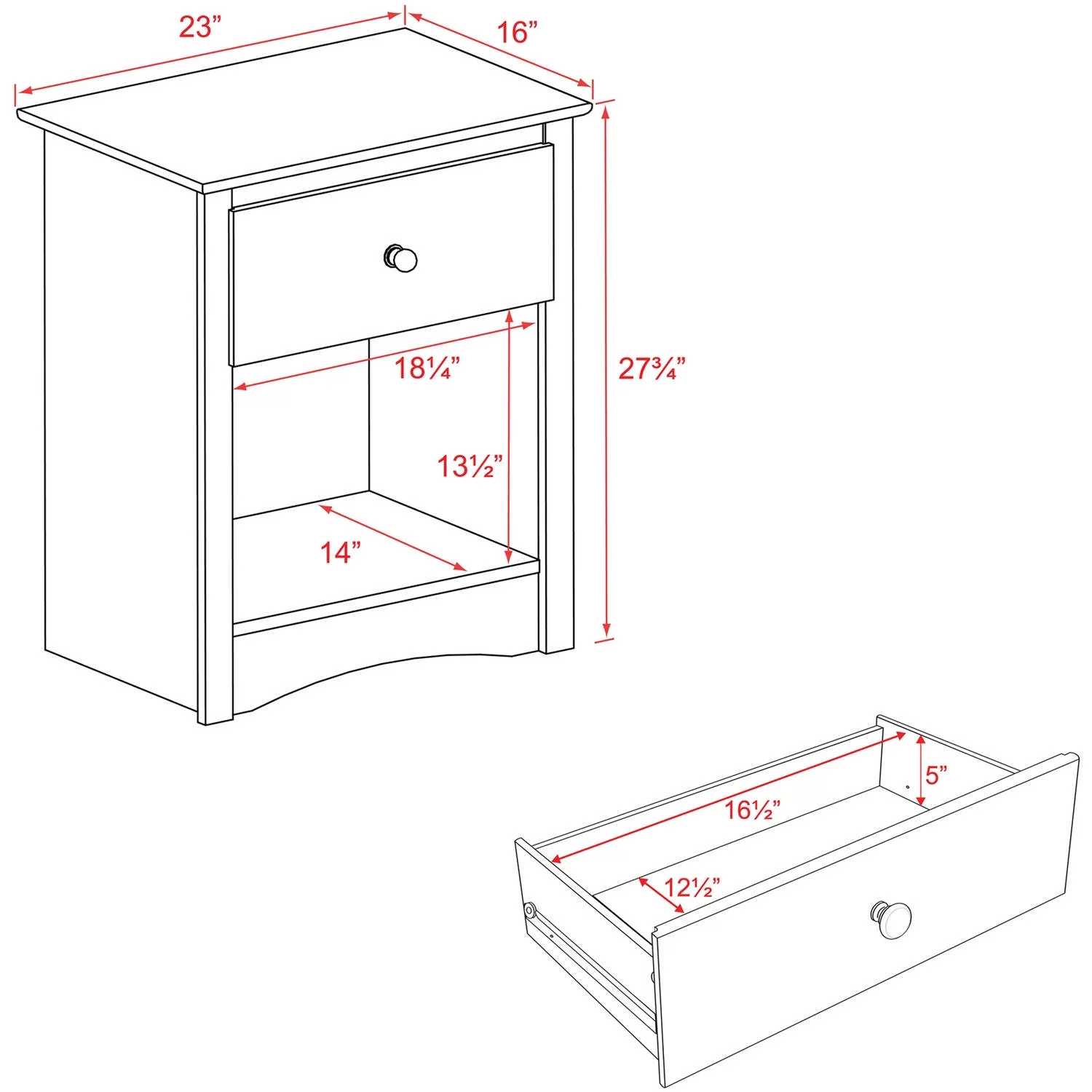 Prepac Sonoma Traditional Tall Bedroom Nightstand with Open Shelf, 1-Drawer, Black