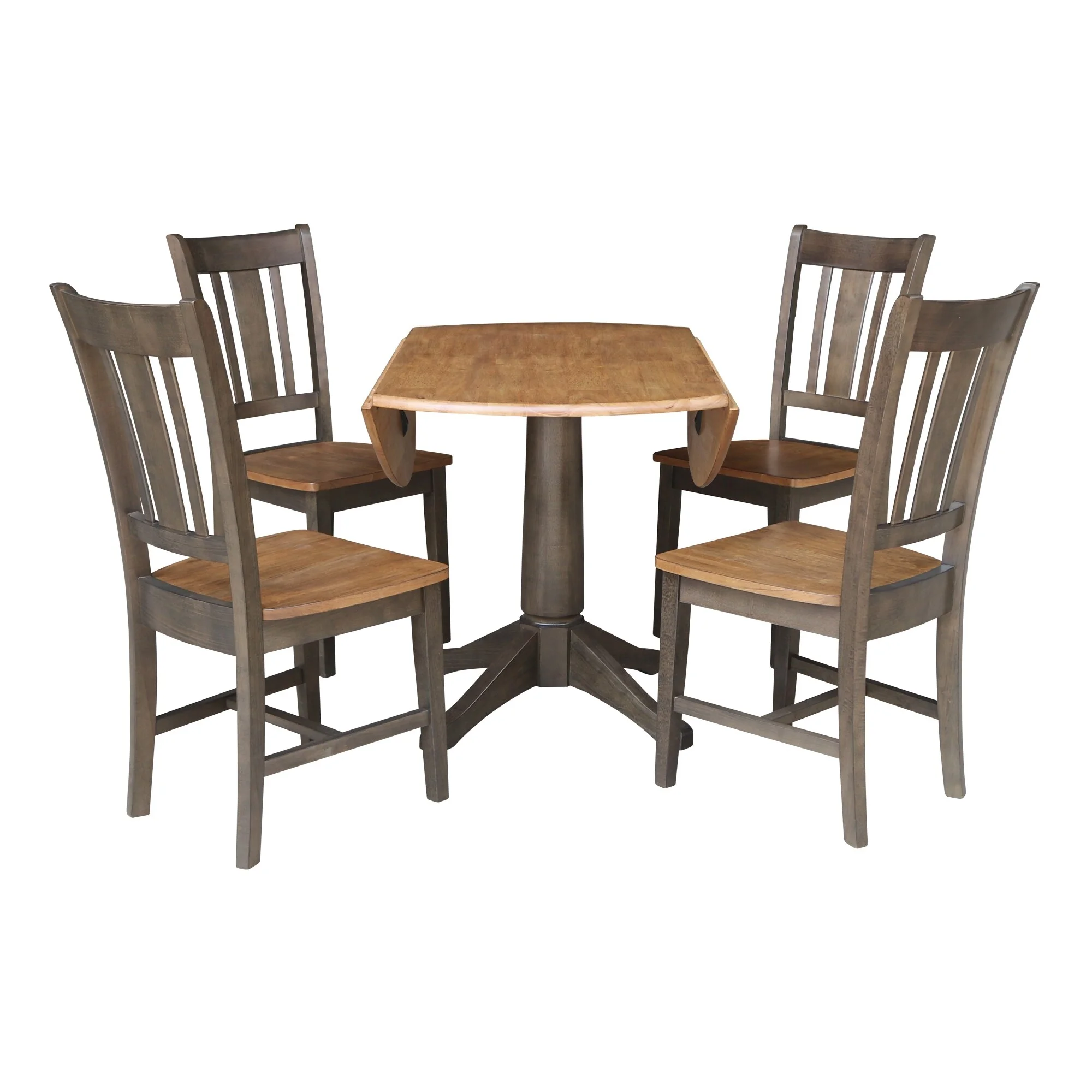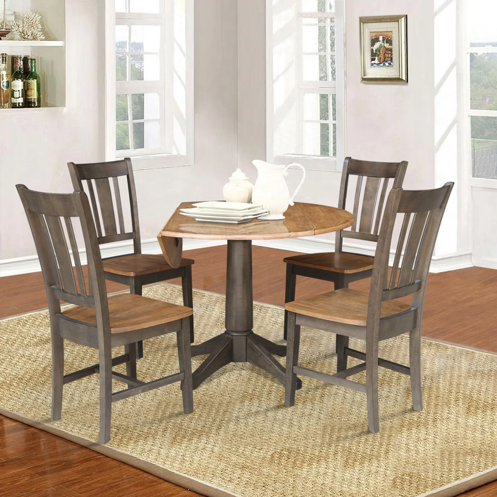 Wood 42 in. Round Drop Leaf Dining Table with 4 Chairs in Hickory/Washed Coal