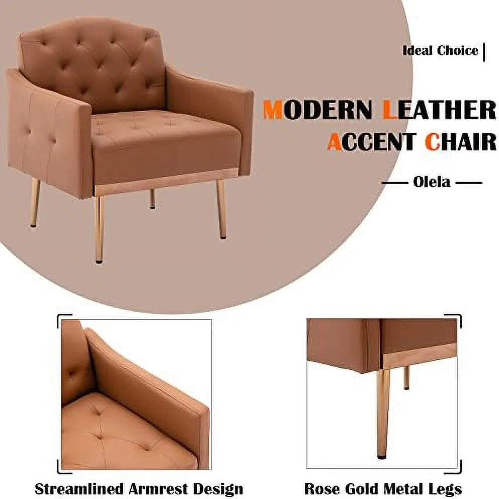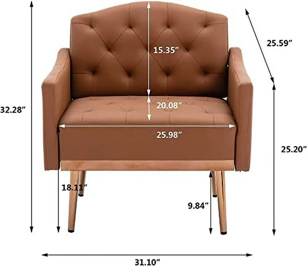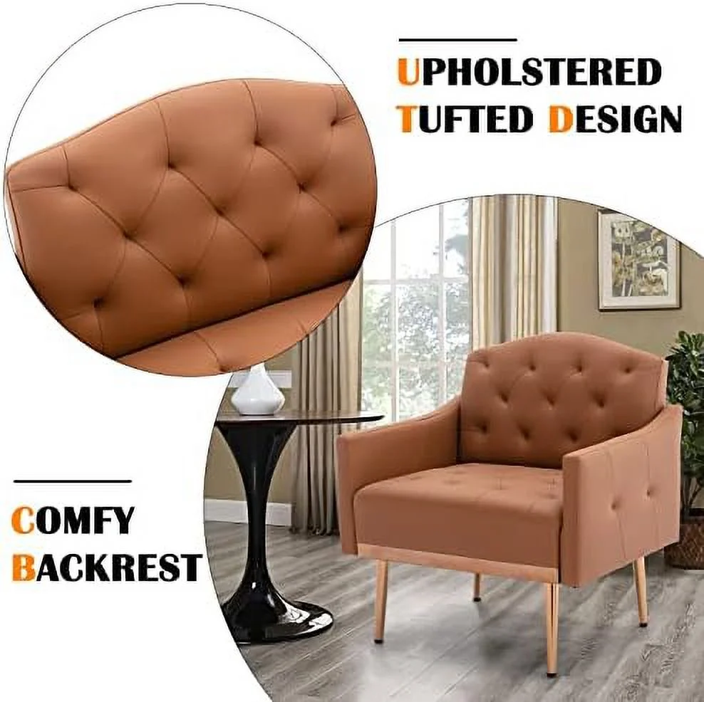 KHBIULIFE Velvet Accent Chair with Arms for Living Room Modern Tufted Single Sofa Armchair with Gold Metal Legs Upholstered Reading Club Chair for Bedroom Office Decorative (Green - Velv
