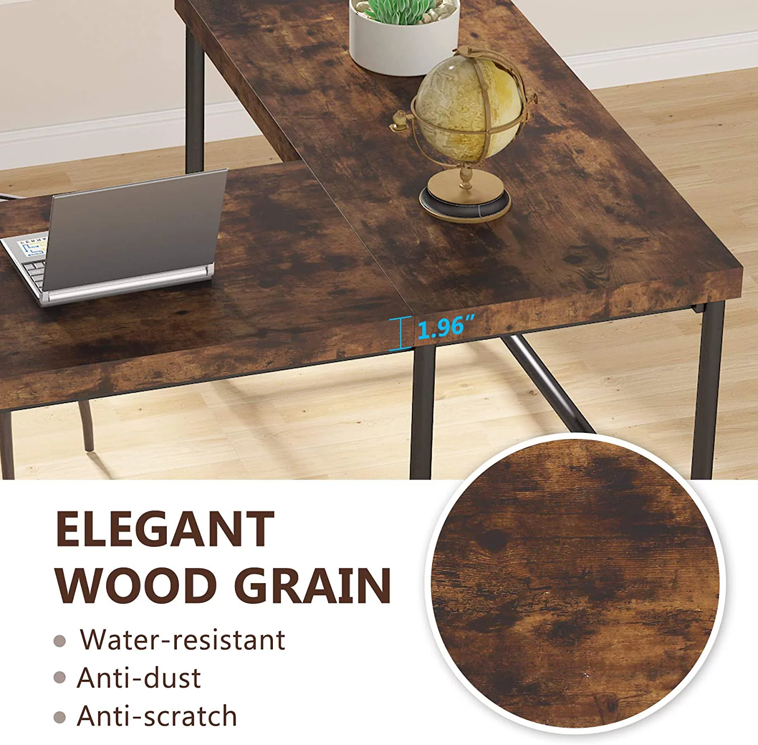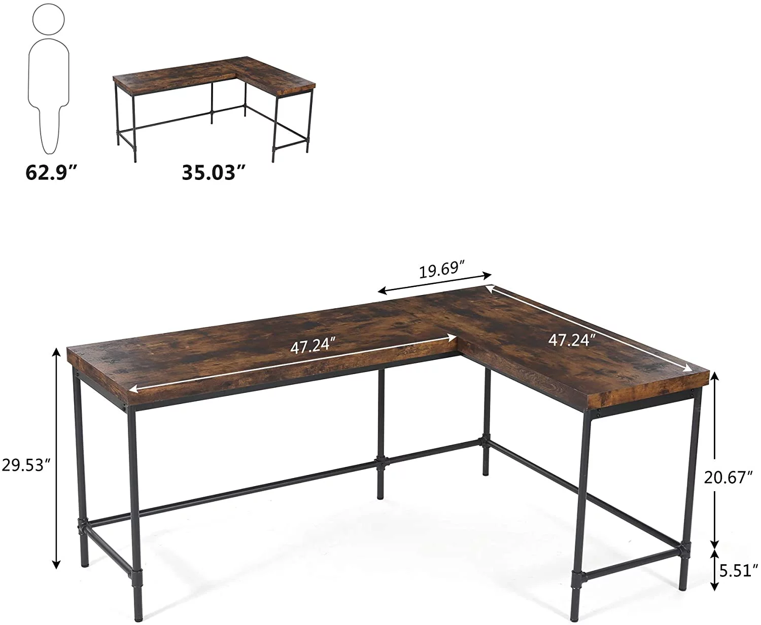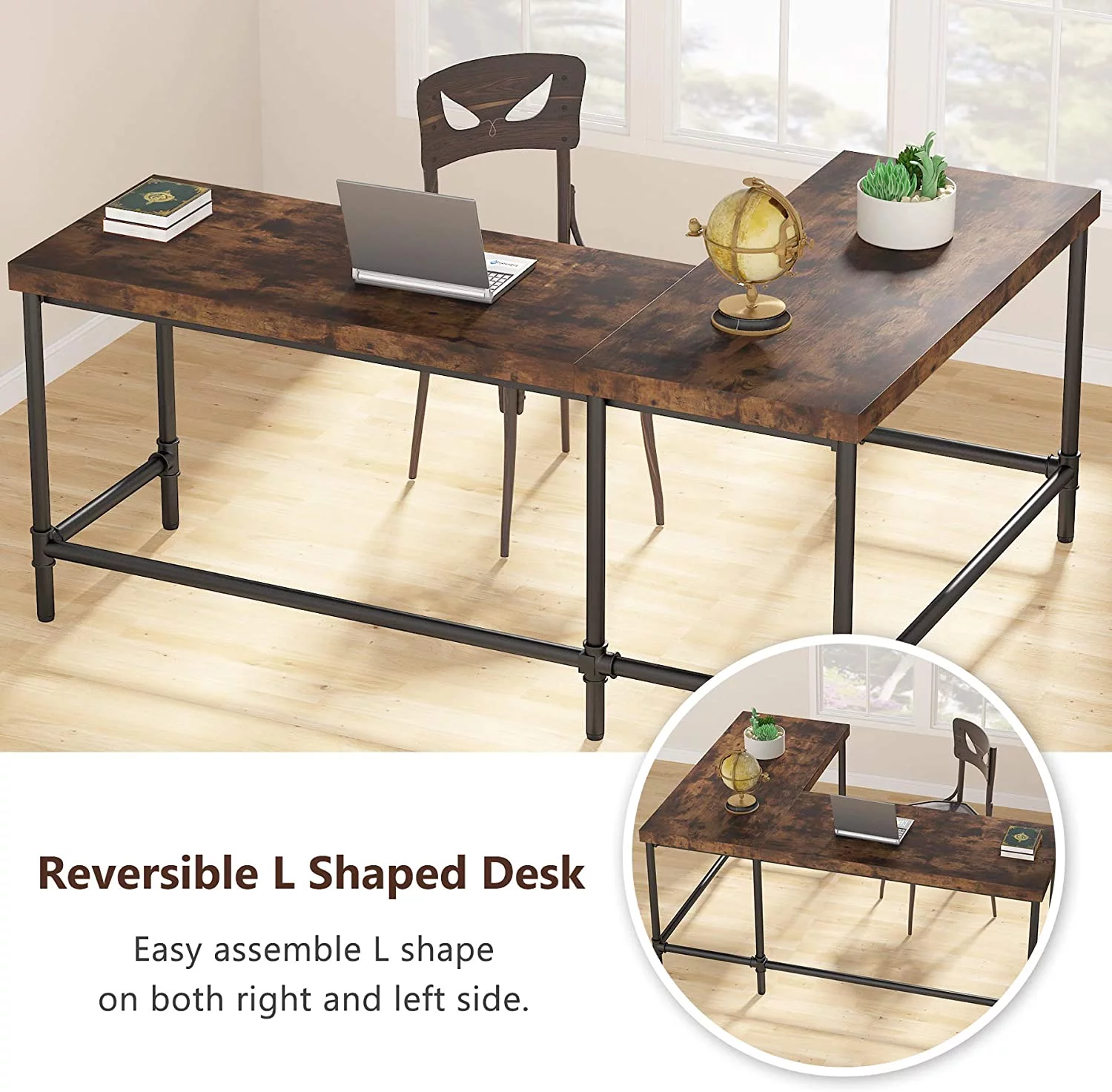 Tribesigns L-Shaped Desk, 67 inch Industrial Reversible Corner Computer Office Desk PC Laptop Study Table Workstation with Metal Pipe Legs for Home Office(Rustic Brown)