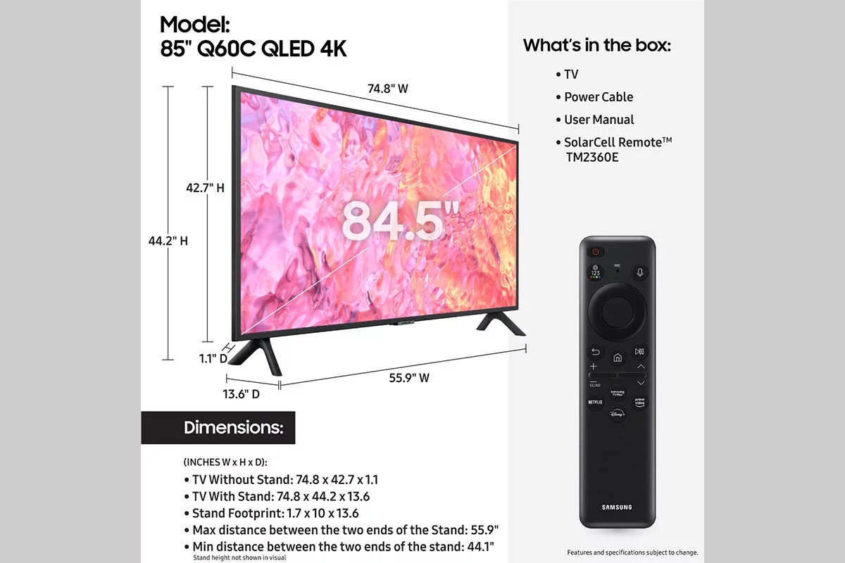 SAMSUNG 85" Class Q60C QLED 4K Smart TV QN85Q60CAFXZA 2023