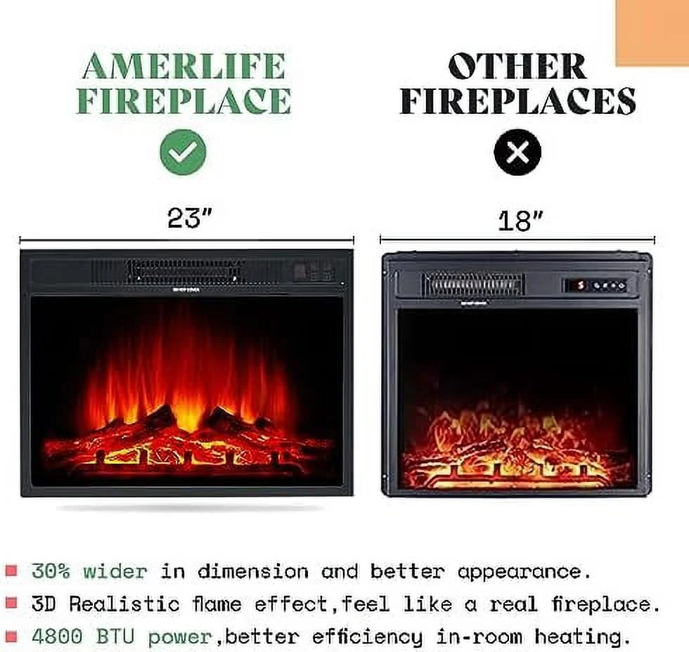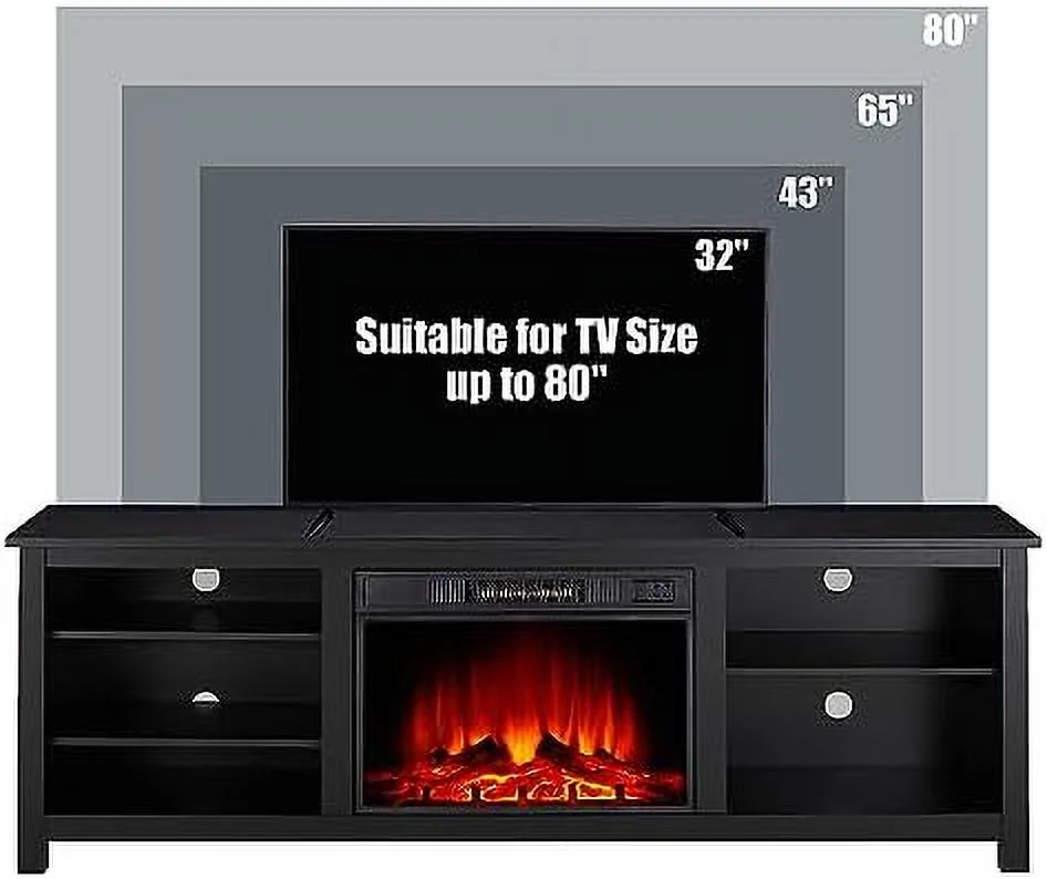 KHBIULIFE Fireplace TV Stand Wood Texture Entertainment Center with 23'' Electric Fireplace Farmhouse Entertainment Stand Media TV Console for TVs Up to 80'' 70 inches