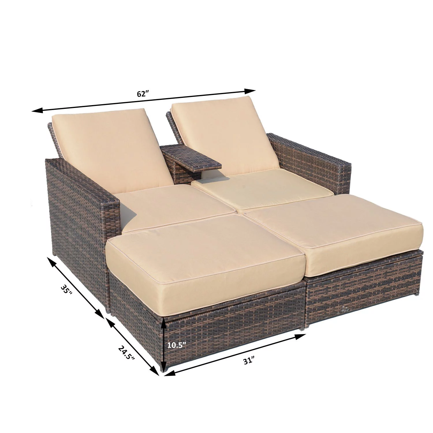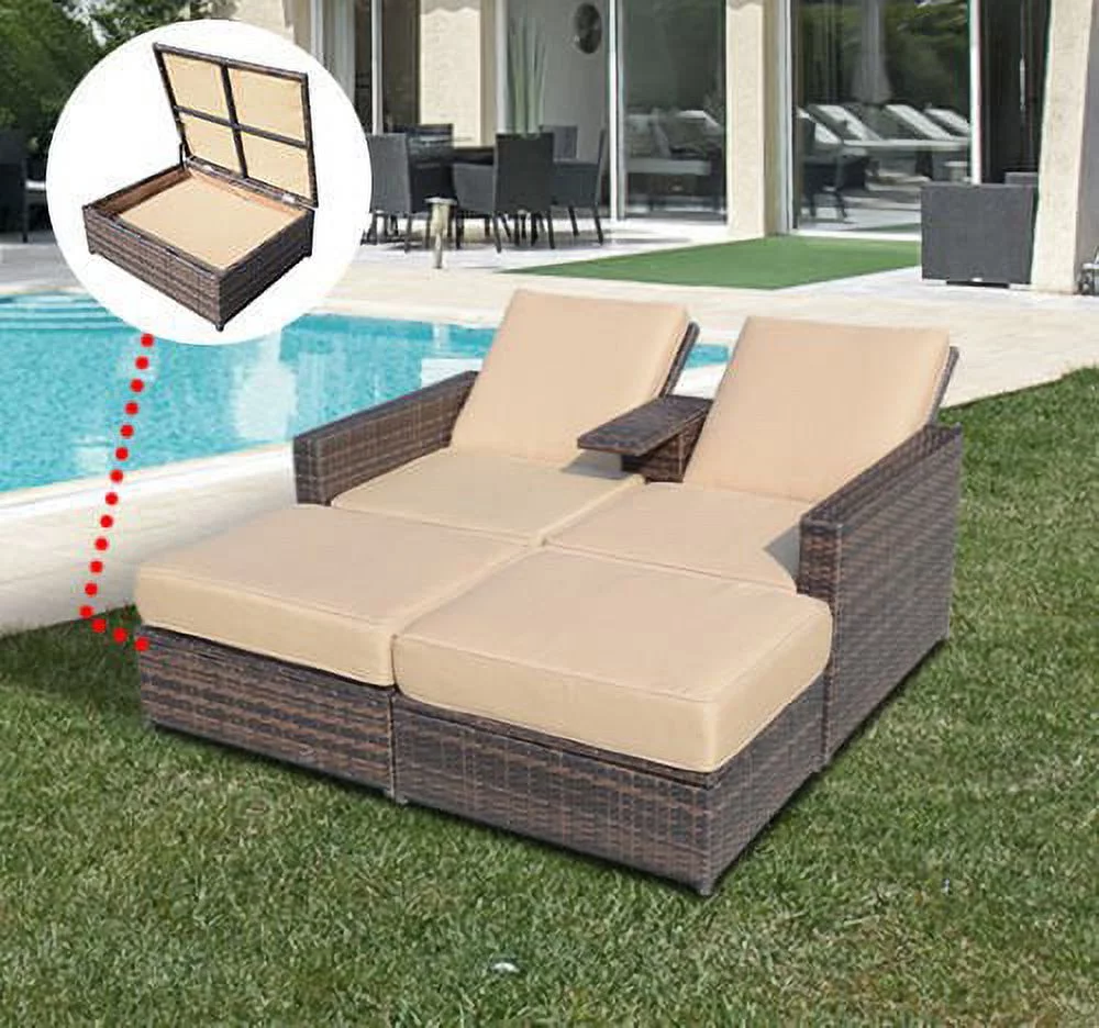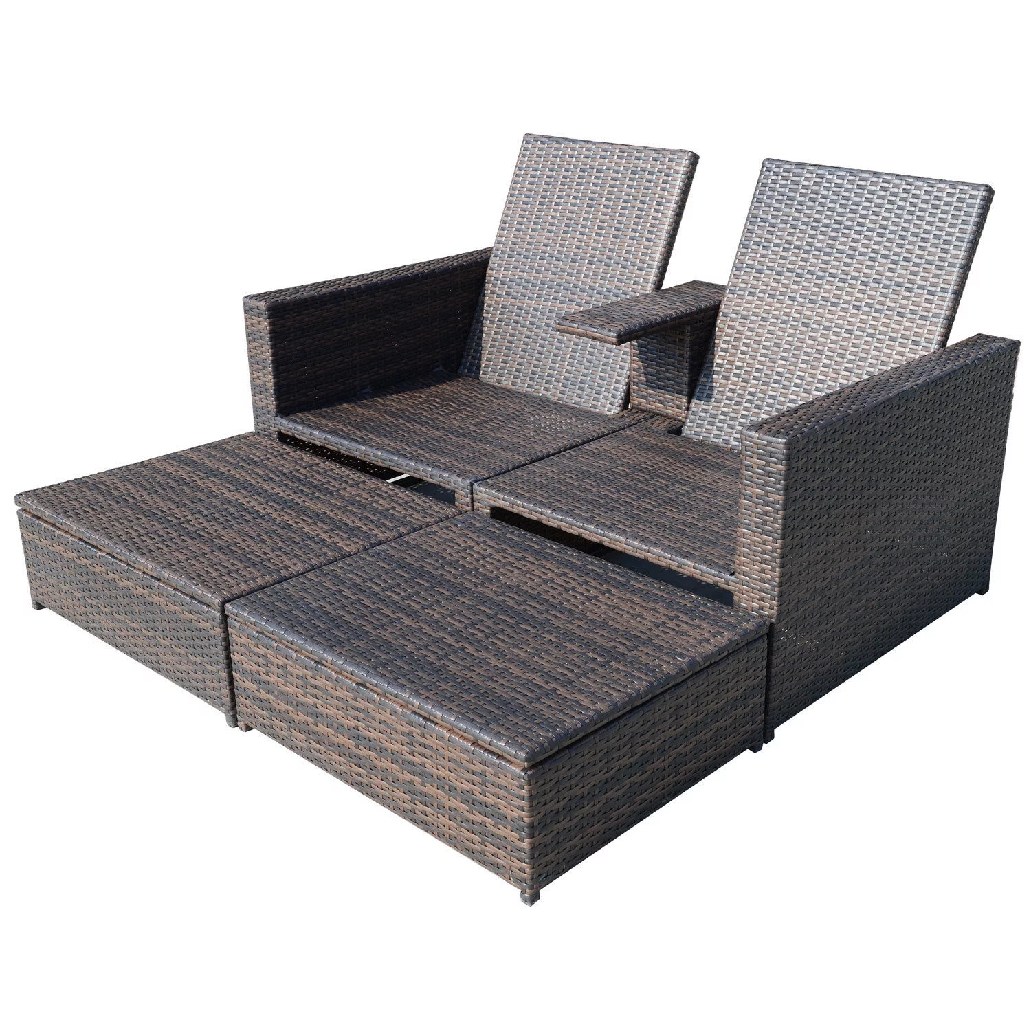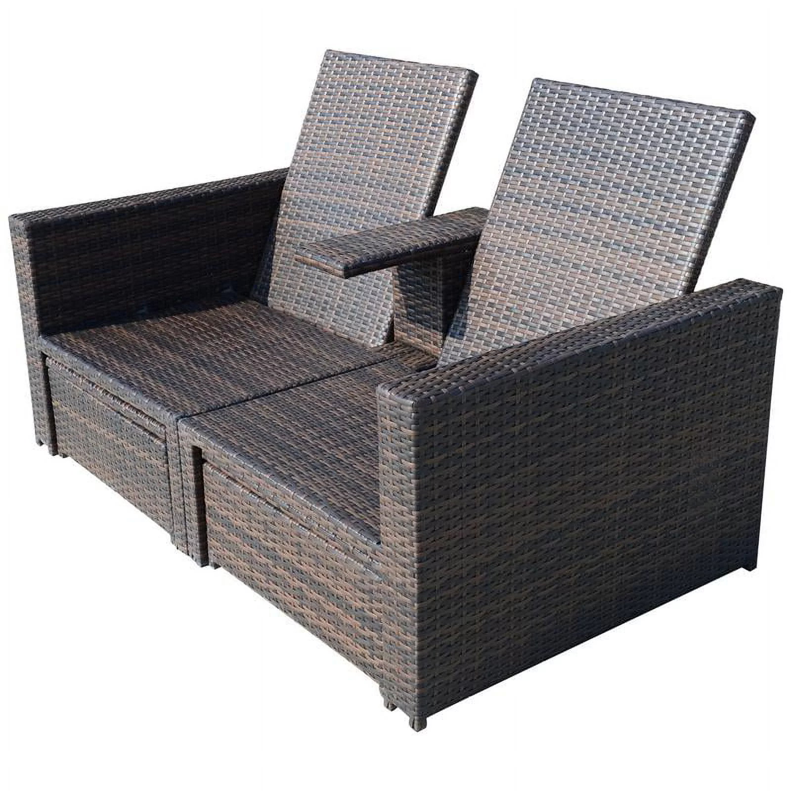 Outsunny 3 Piece Patio Sofa Set Recliner Lounge Ottoman Loveseat Rattan Outdoor, seating capacity-2