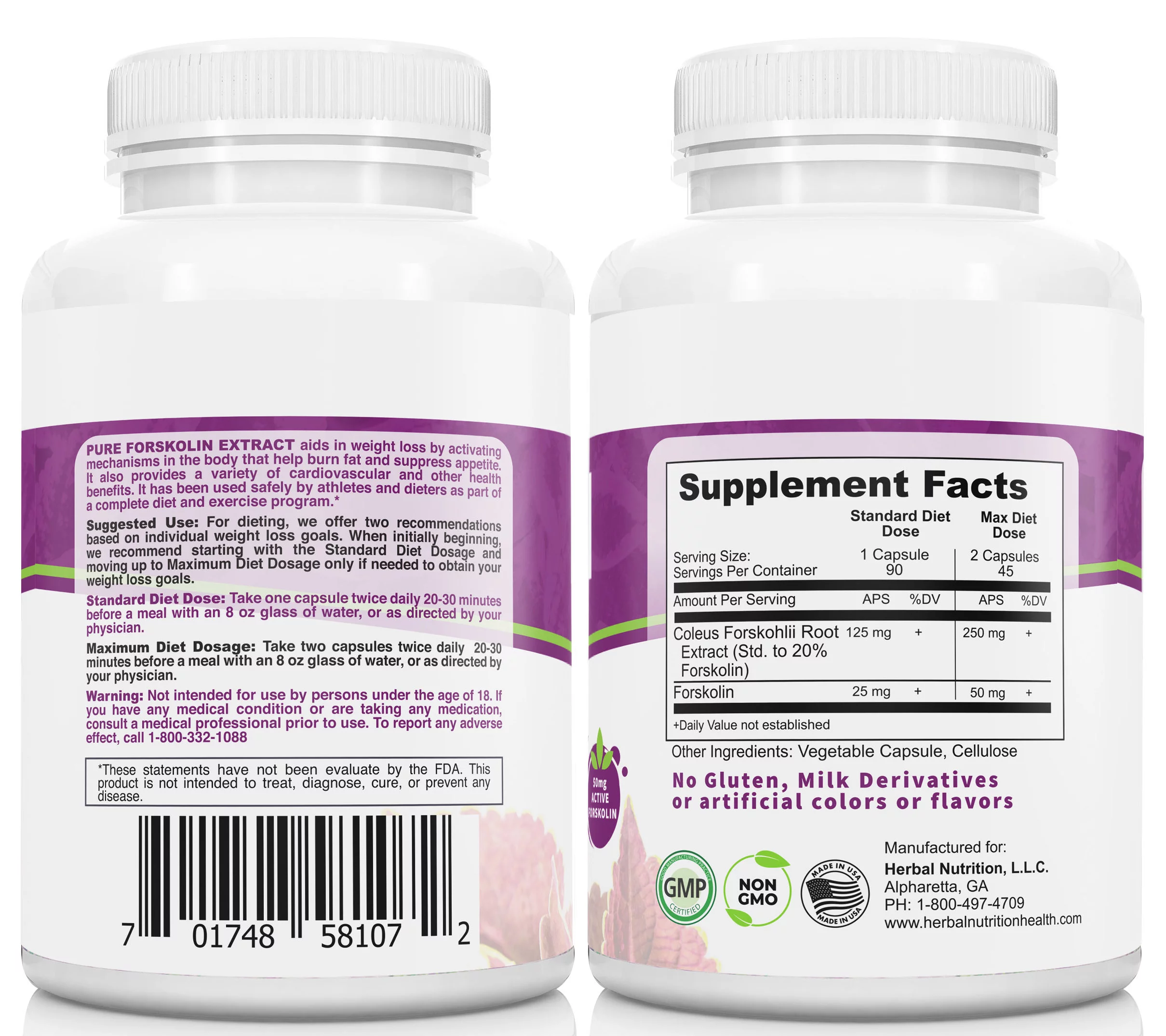 THREE PACK Herbal Nutrition Pure Forskolin Extract 3 90 Ct Bottles 250mg 20% Extract Pure Coleus Forskohlii