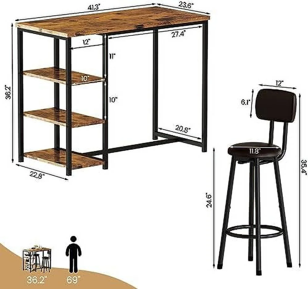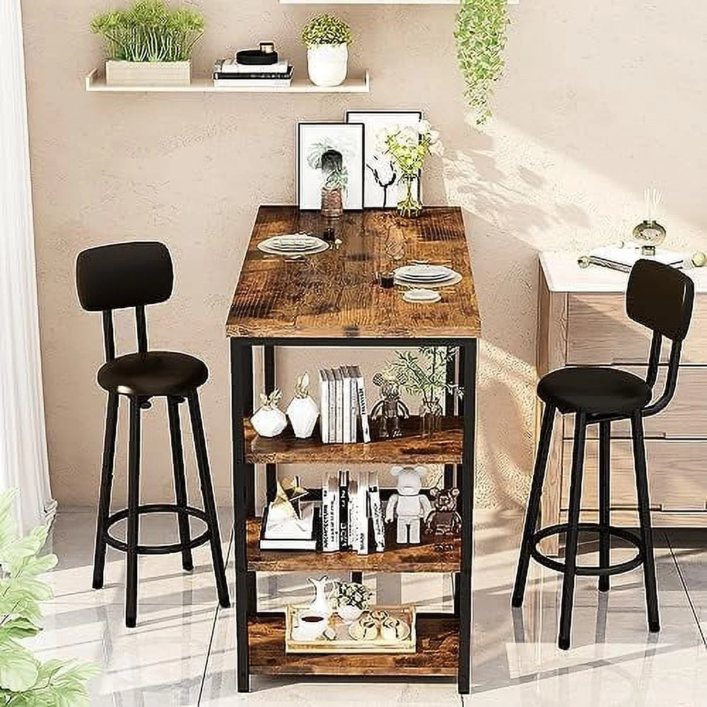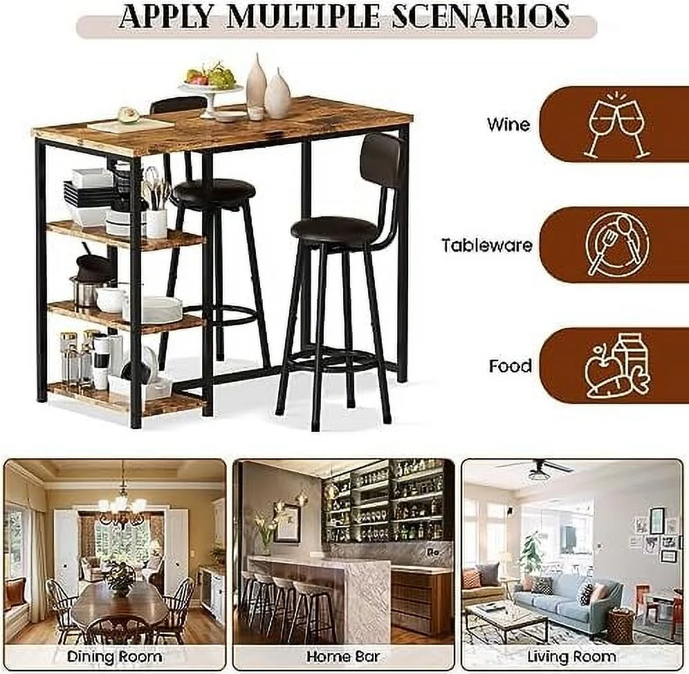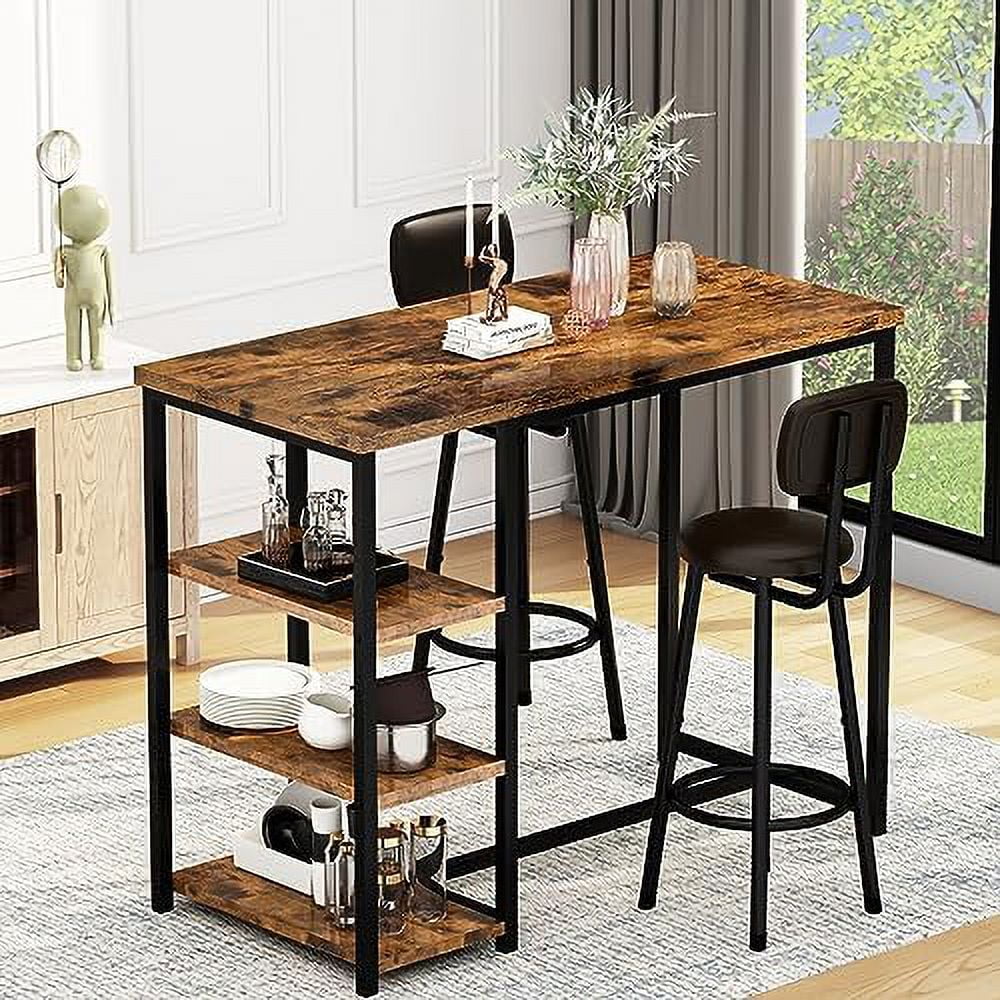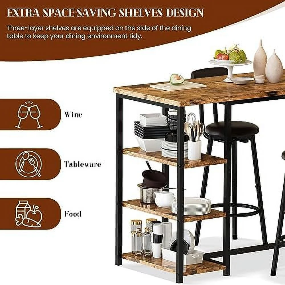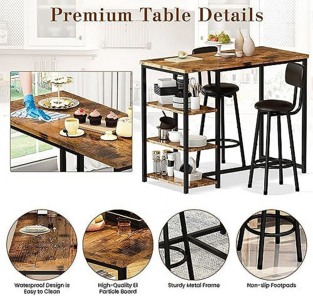 KHBIULIFE Dining Table Set for 2 with 3 Shelves Modern Table and Chairs Set with 2 Chairs & Thickened Top Kitchen Pub Dining Table for Small Space Vintage Brown