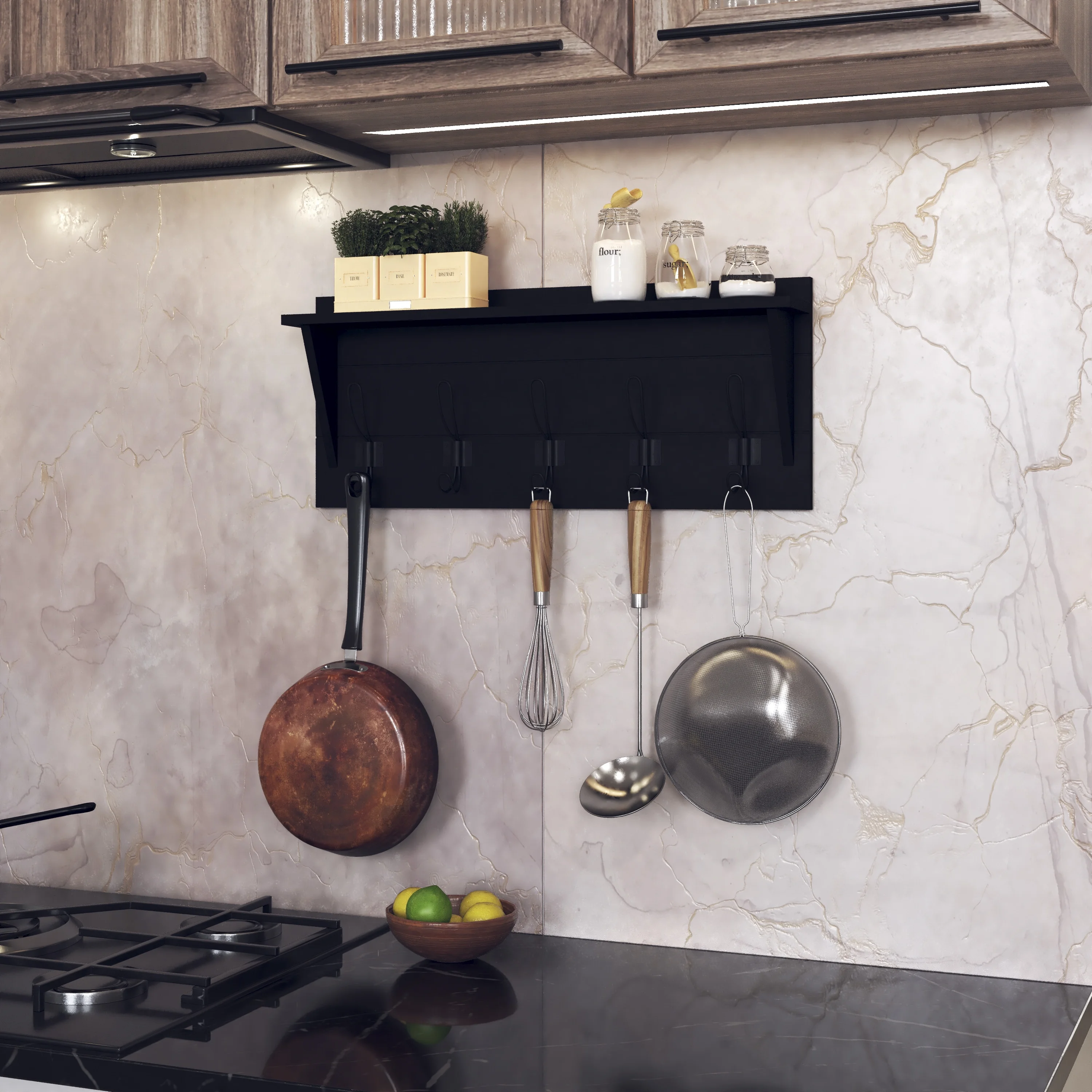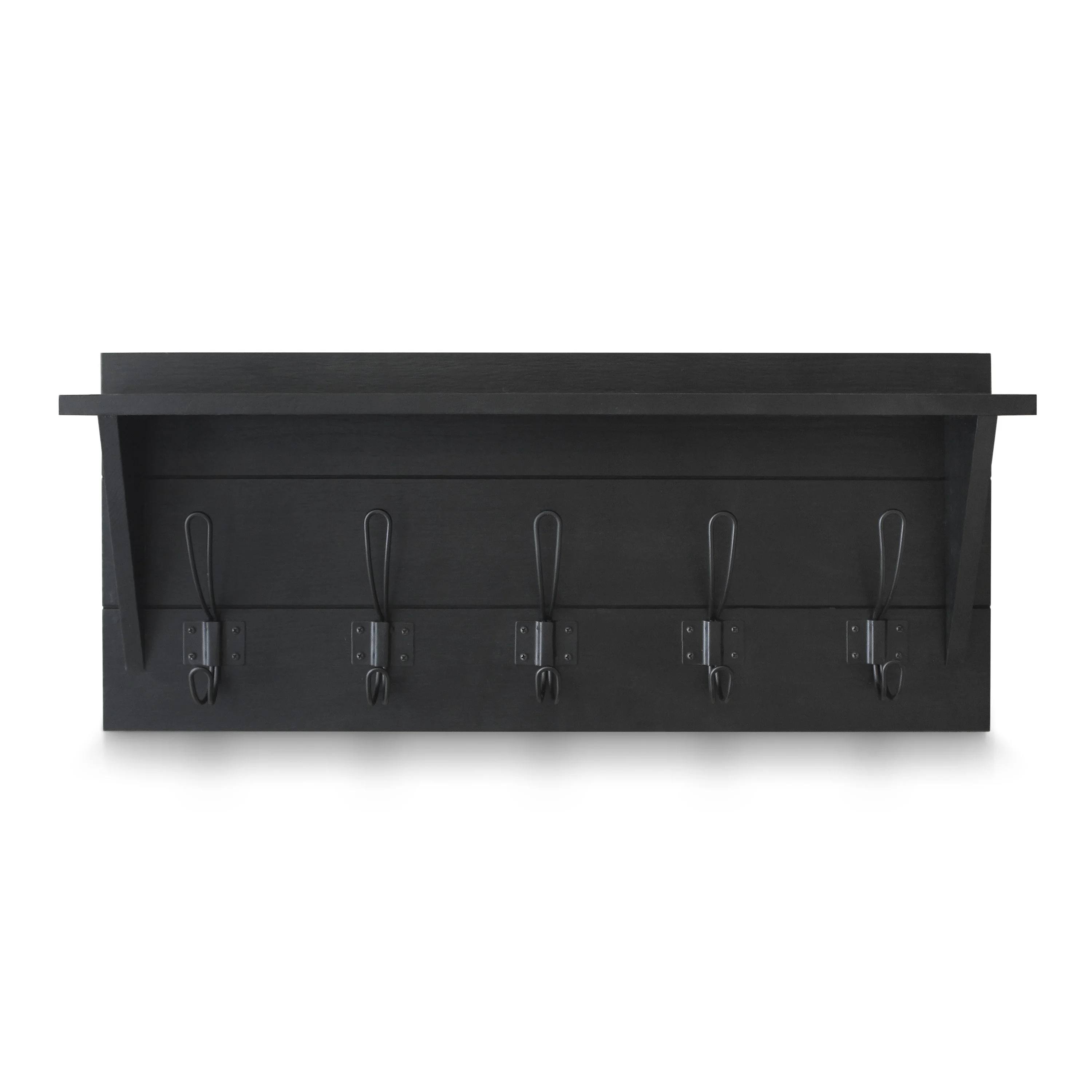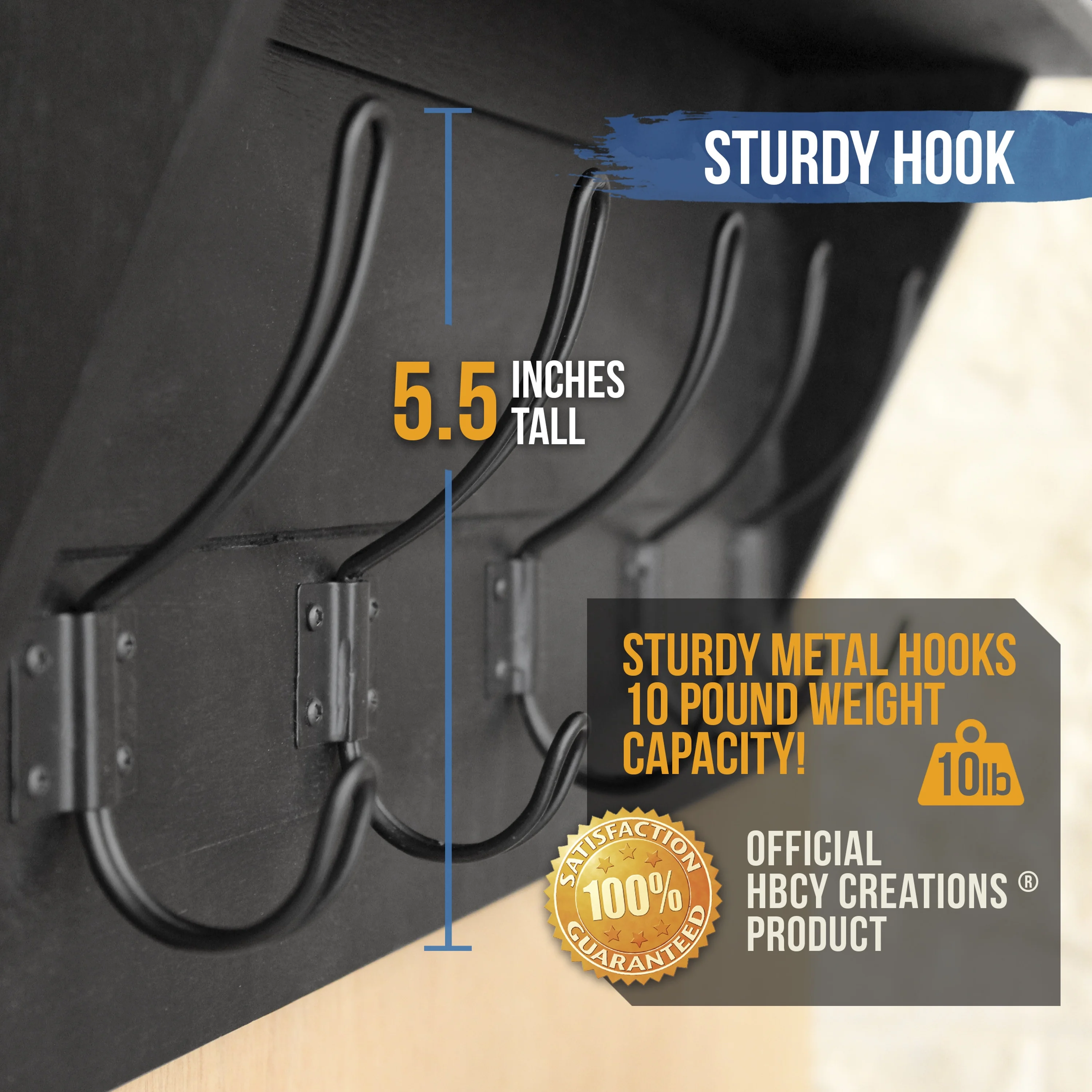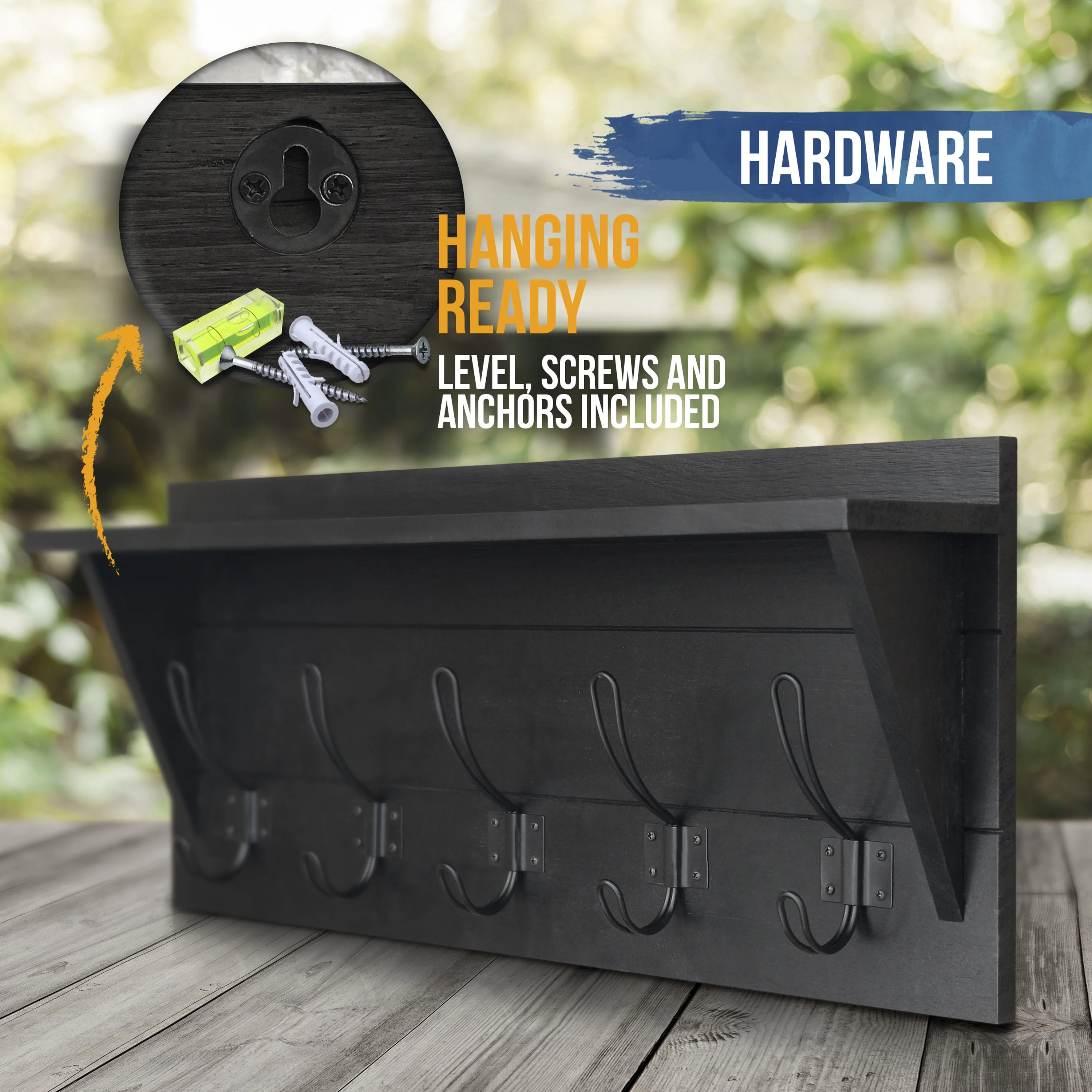 HBCY Creations Rustic Wall Mounted Coat Rack Shelf - Wooden Country Style 24" Entryway Shelf with Hooks - Solid Pine Wood - For Entryway, Kitchen, Bathroom (Black)